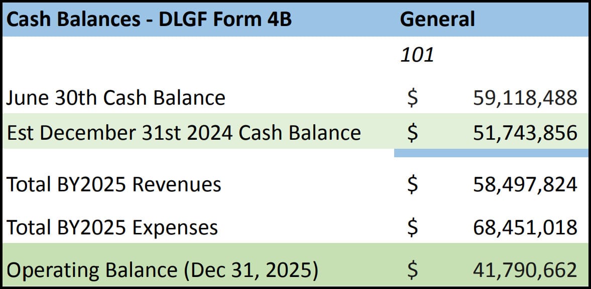 The B Square has asked for confirmation that it’s really the case that the revenue generated by a GO bond tax rate would count towards the city’s share for distribution of LIT certified shares. Under state law, it looks like the first step in the calculation is to subtract the levy that is generated to cover debt. [Updated Aug. 27, 2024 at 2:40 p.m. McClellan confirmed in an email to The B Square that debt is first subtracted, which means that the property tax rate related to a GO bond would not help add to Bloomington’s share of certified LIT shares.]