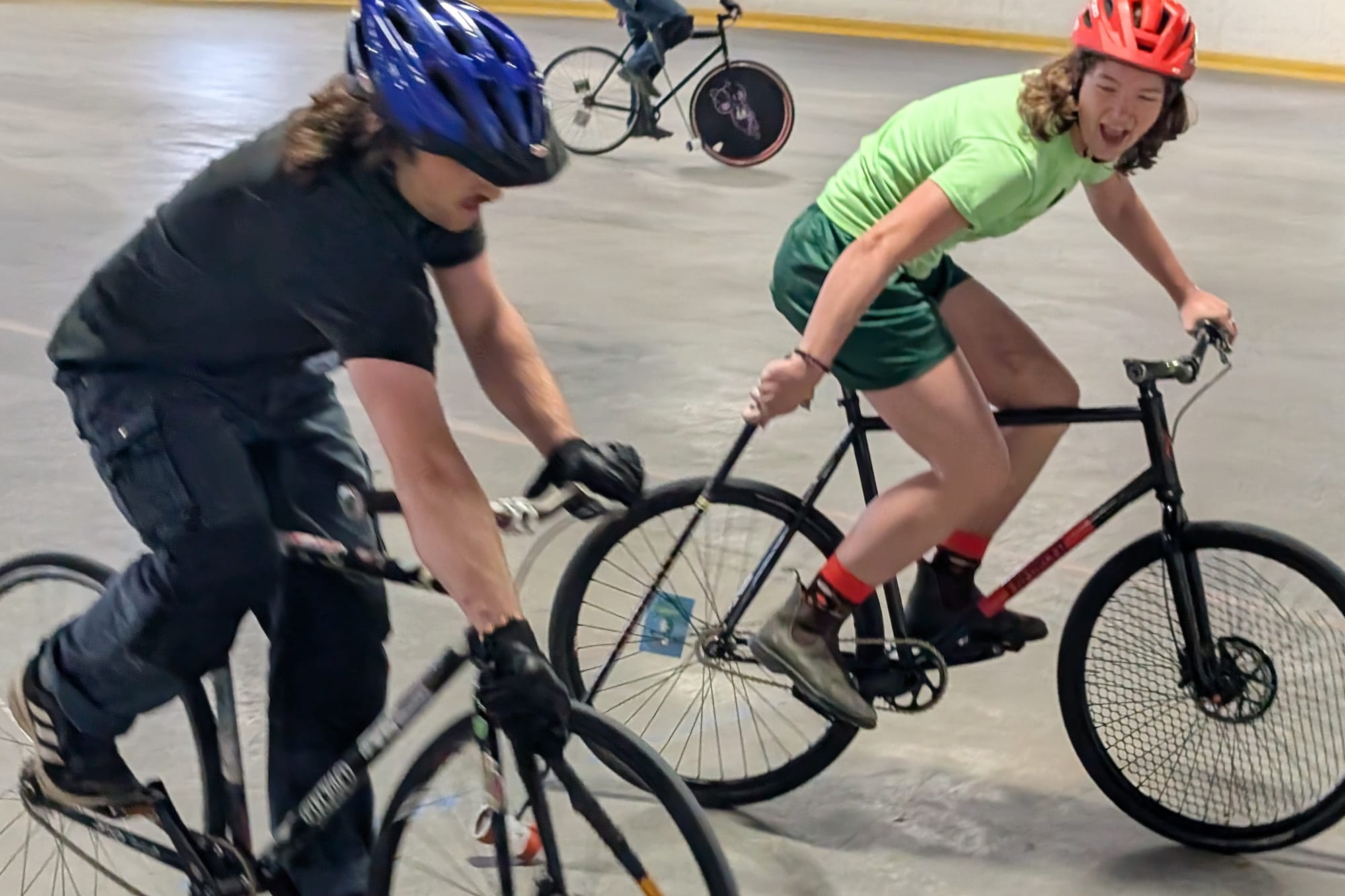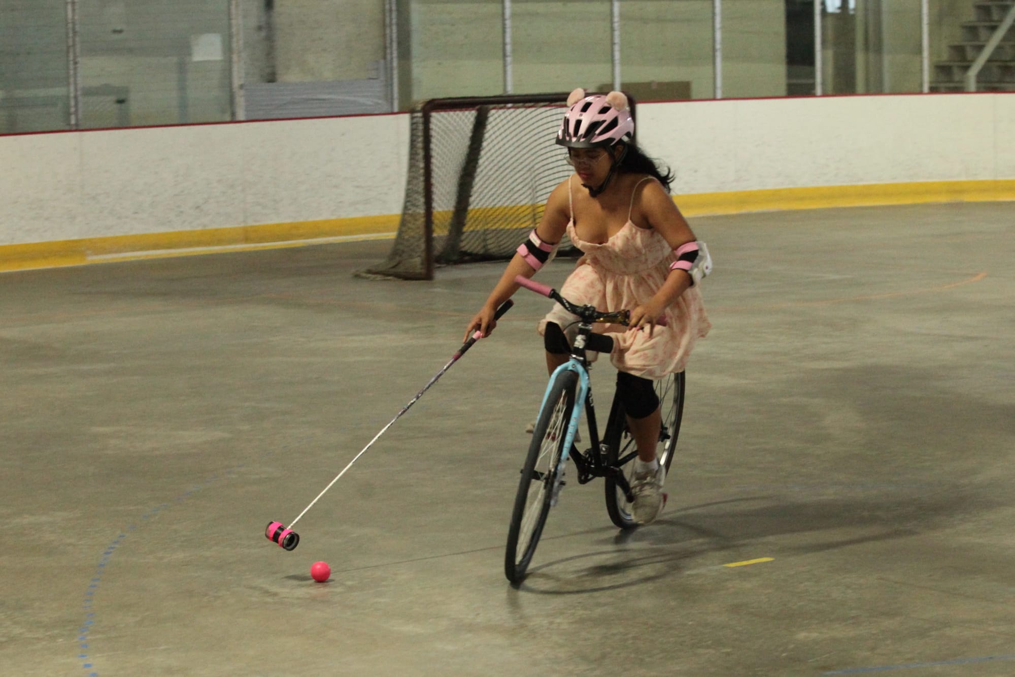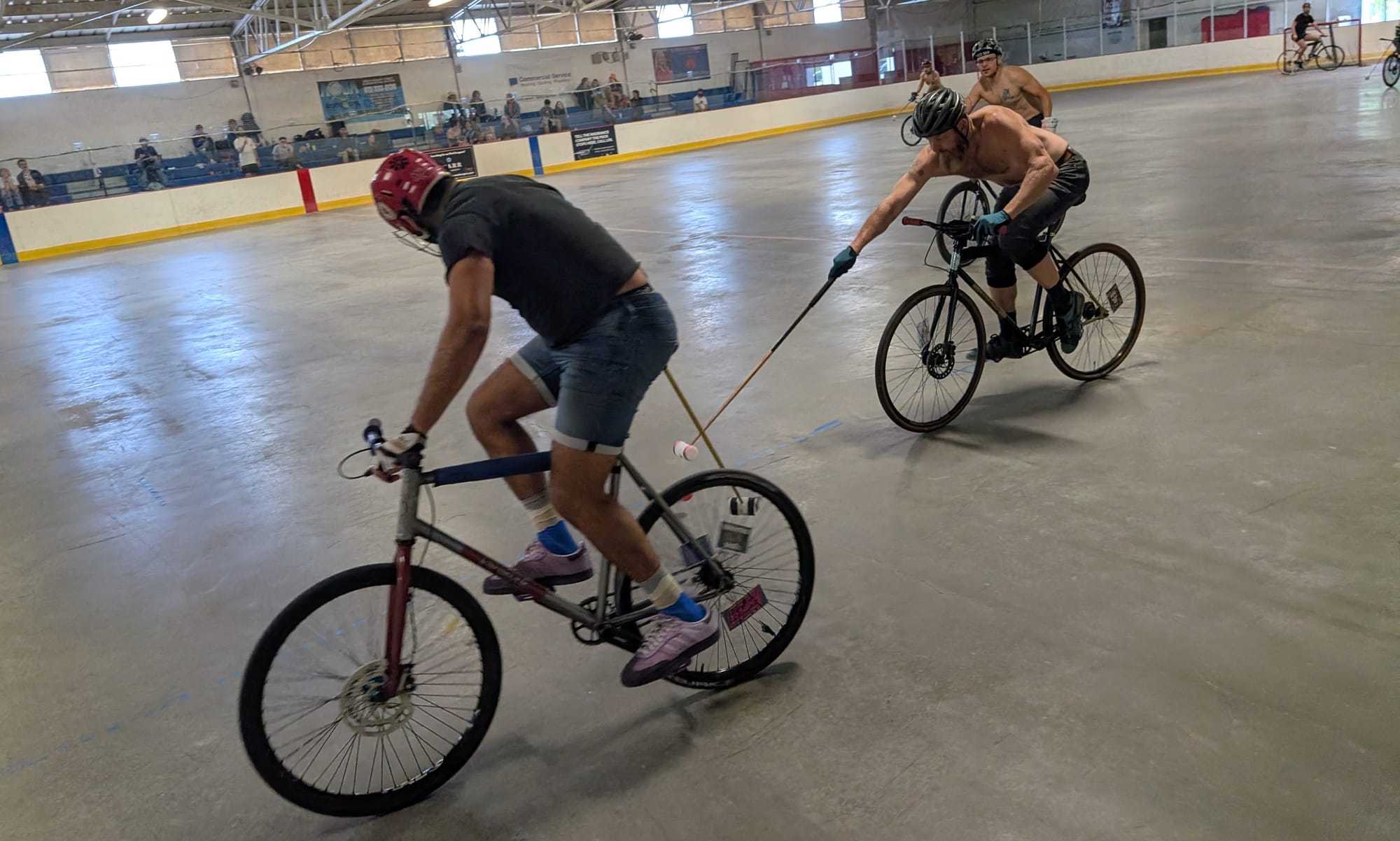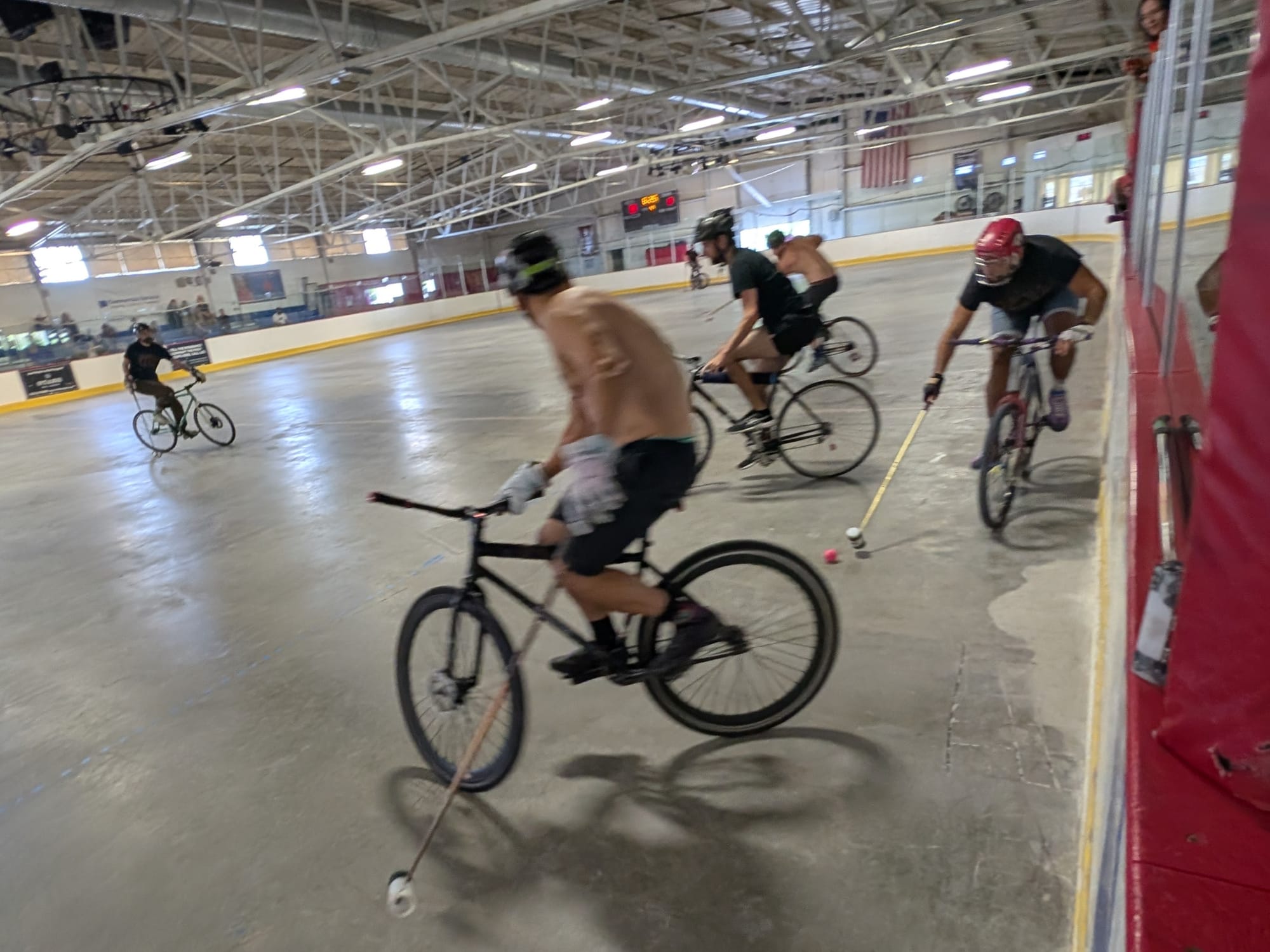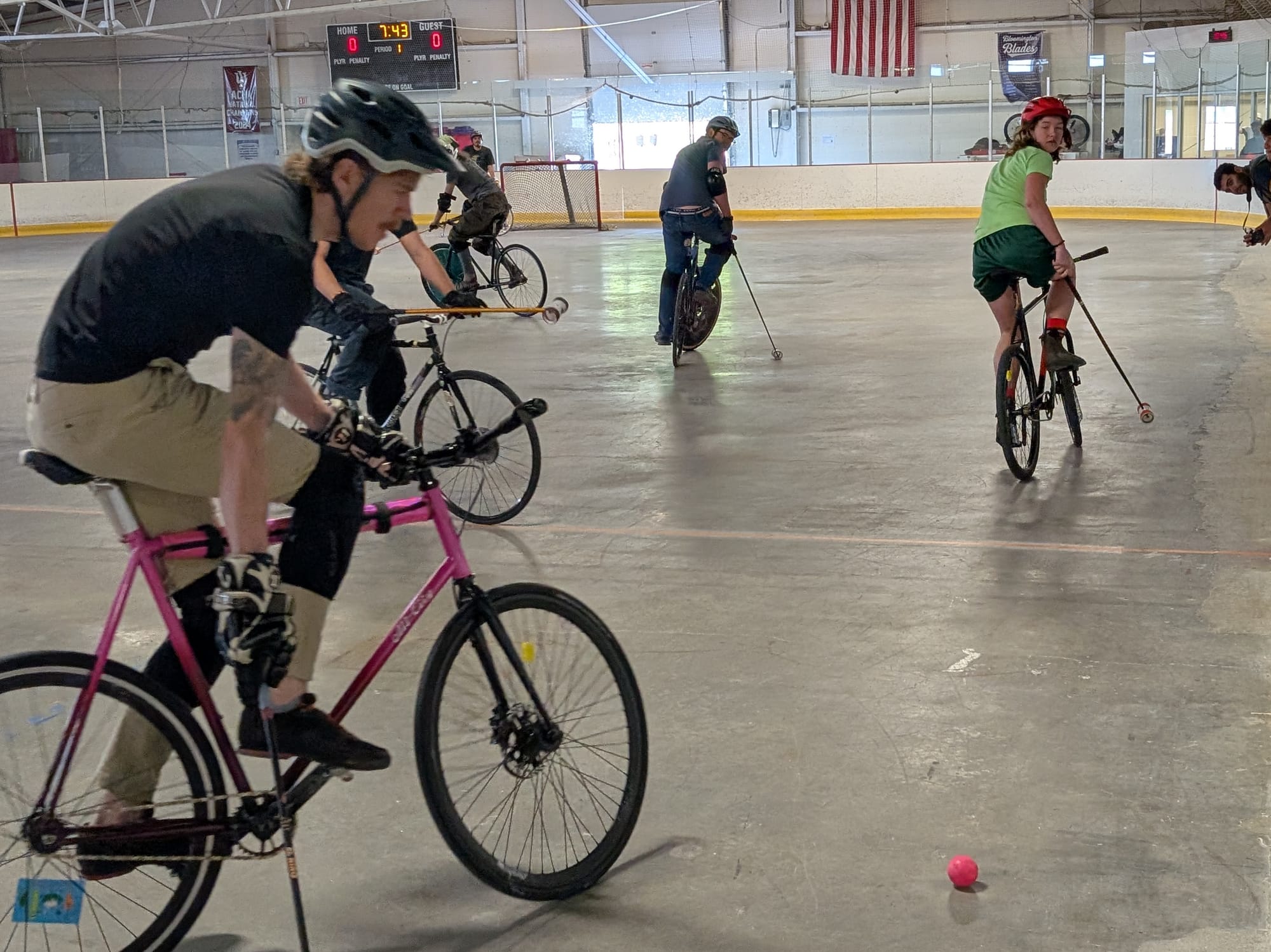 In its standard form, bike polo is a three‑on‑three game. On a rink the size of Frank Southern, however, the club has shifted the format to four‑on‑four, which inspired the “Tenderloin” name—a nod to an oversized sandwich to match the oversized court.