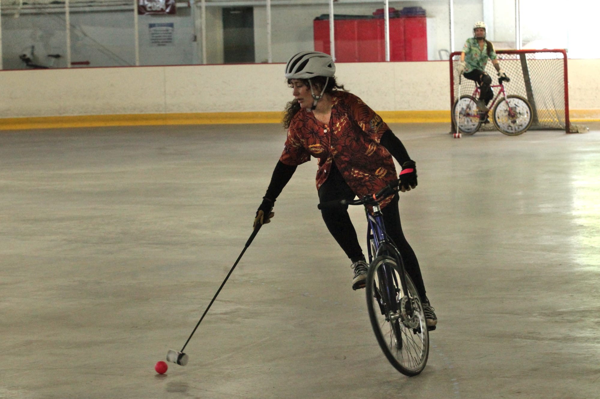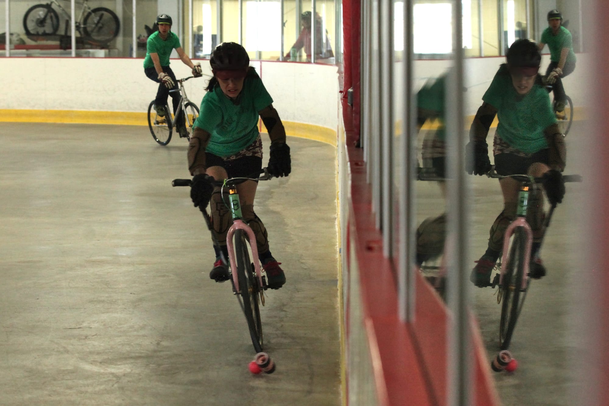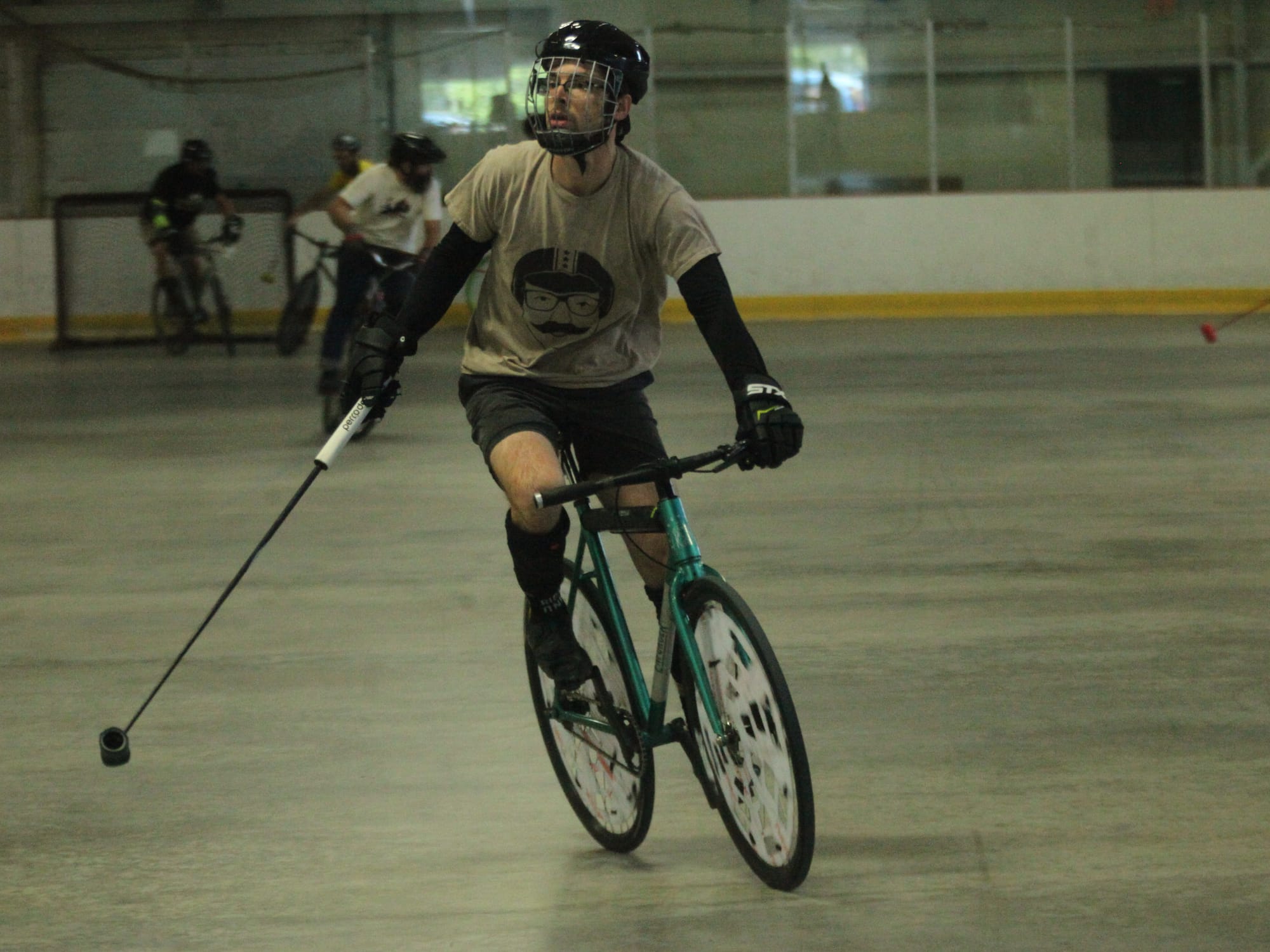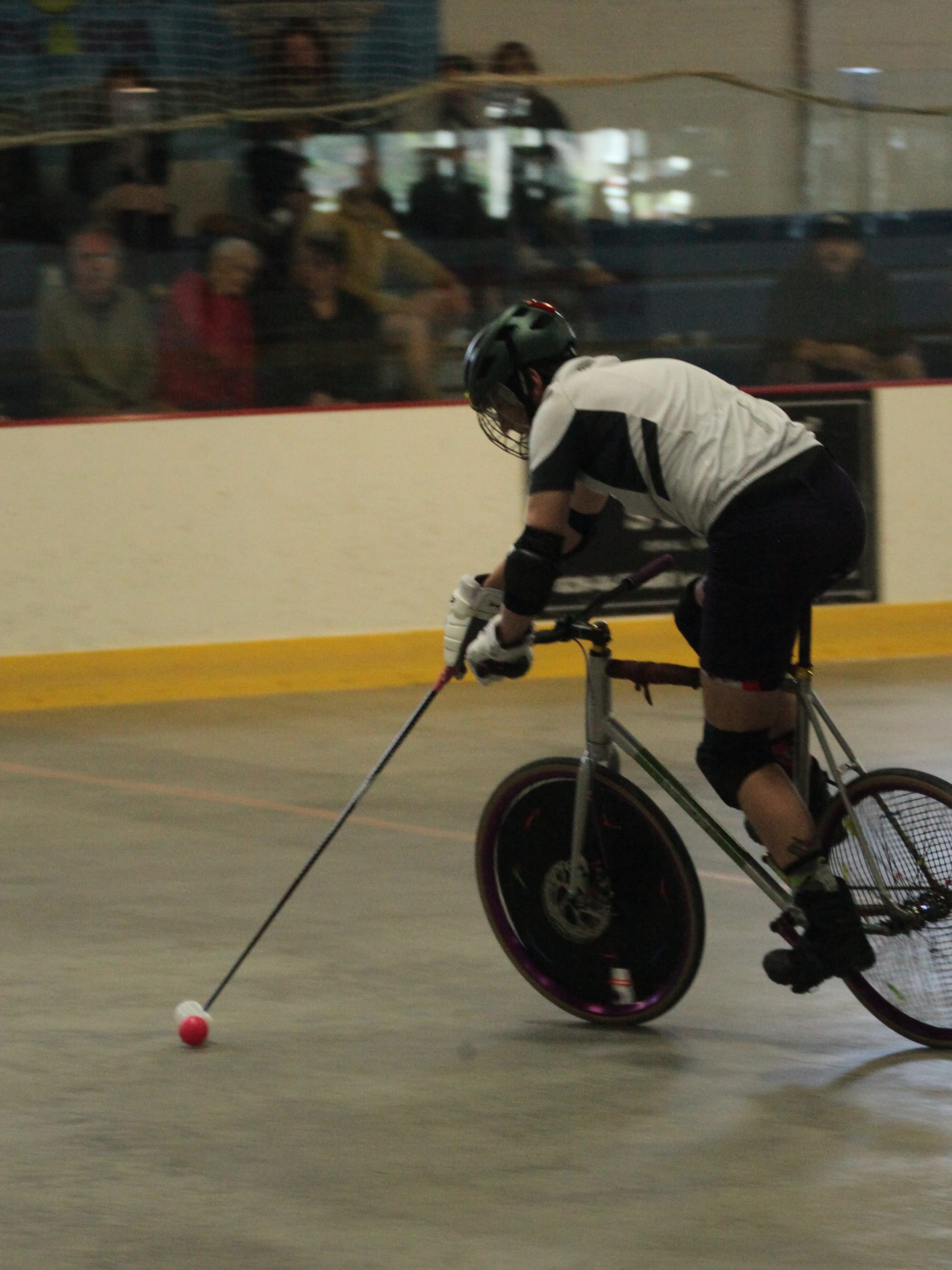 This past weekend (April 18–19) at Bloomington’s Frank Southern Ice Arena, the ice was gone but the boards were still busy, given over to bicycle polo. Think polo, but with bicycles instead of horses. Or hockey on bikes.