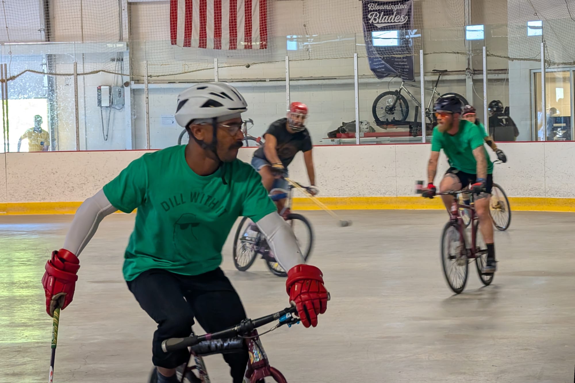 Bloomington’s Frank Southern Ice Arena traded ice for bicycles as the Hoosier Tenderloin Classic bike polo tournament returned for its second year. Hosted by Bloomington's Bike Polo Club, the event drew 16 teams and riders from across the Midwest and South for two days of fast-paced competition.