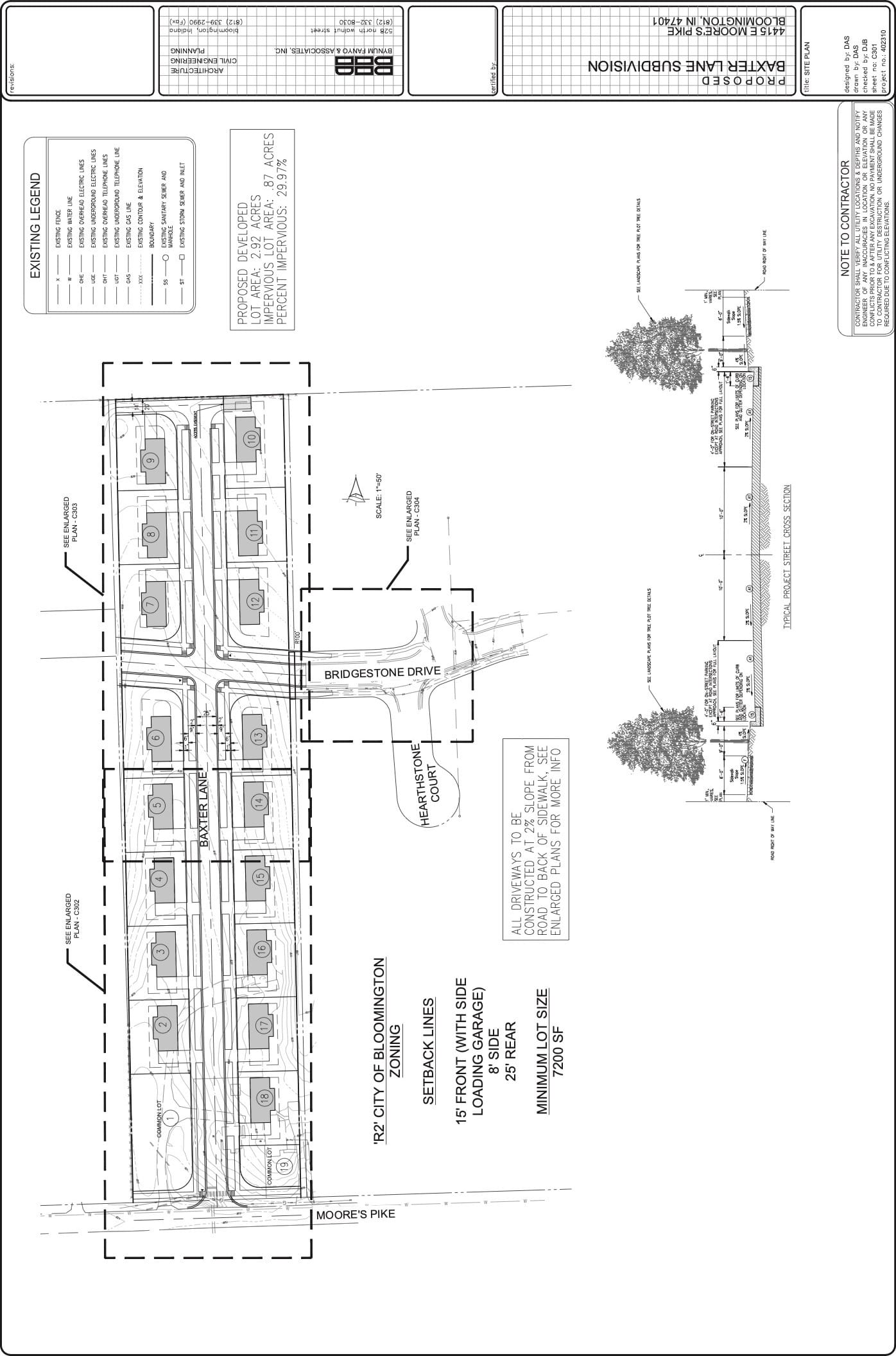 That’s because Bloomington’s plan commission has waived the requirement that at least 67 percent of the lots be served by alleys. The proposed site plan does not include any lots that are served by alleys.