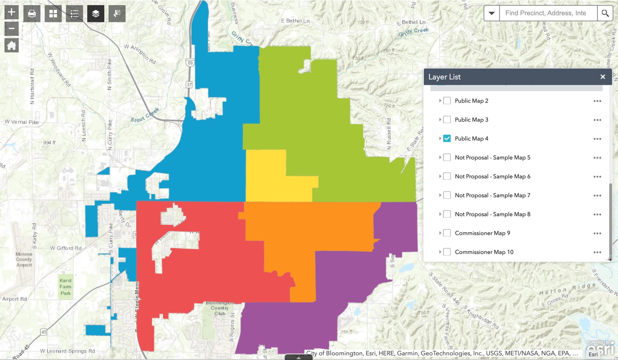 At Monday night’s meeting of Bloomington’s redistricting commission, just one of the proposed maps drew the initial attention of the five members. By the end of the night, based on a public comment, they’d added a second one to the mix for further consideration.