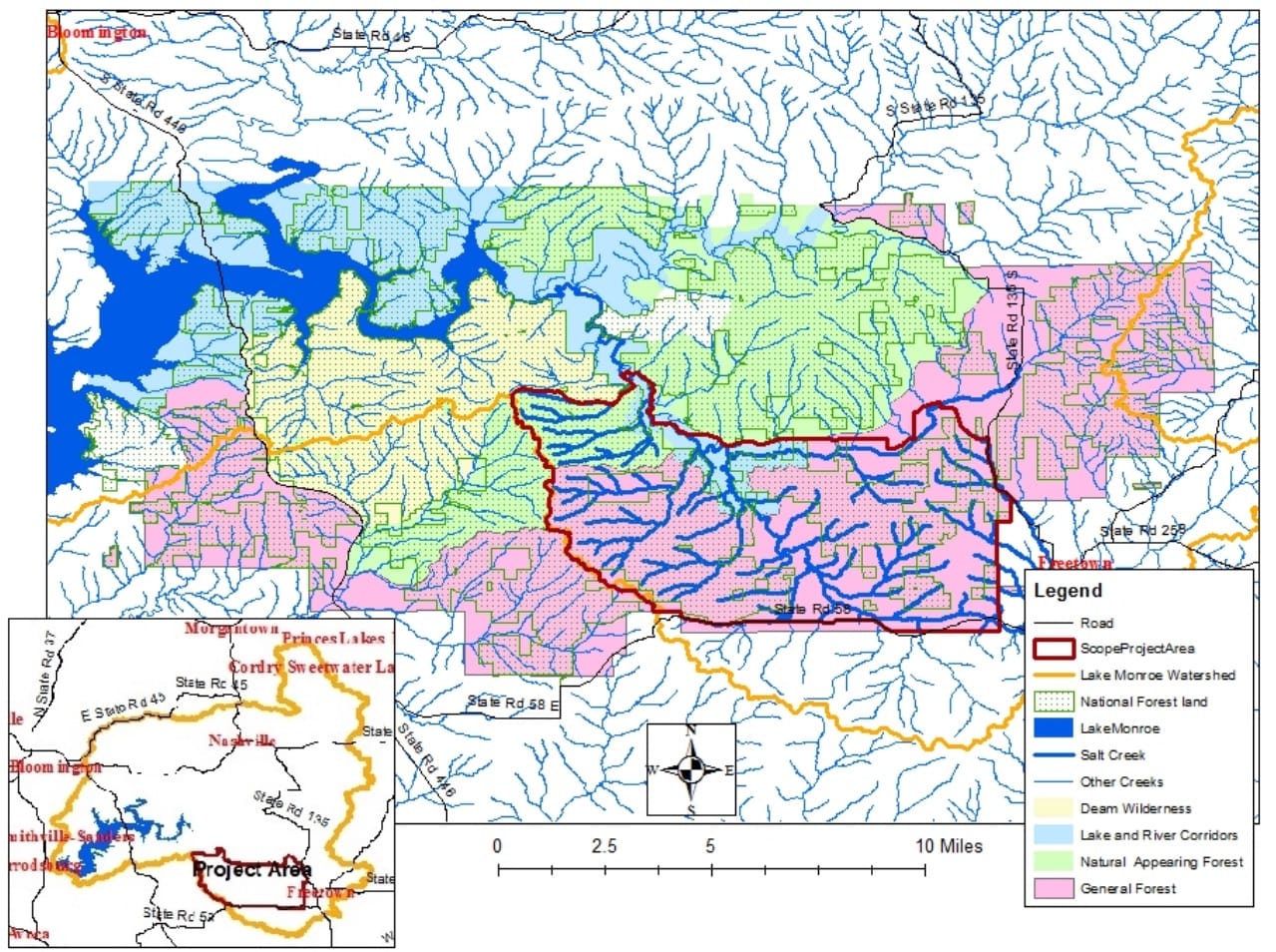 The project area overlaps with part of the Lake Monroe watershed. That’s a substantial part of the objections to the project, because the lake provides drinking water to the city of Bloomington and much of the rest of Monroe County.