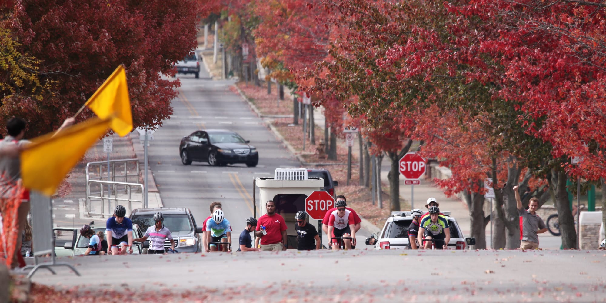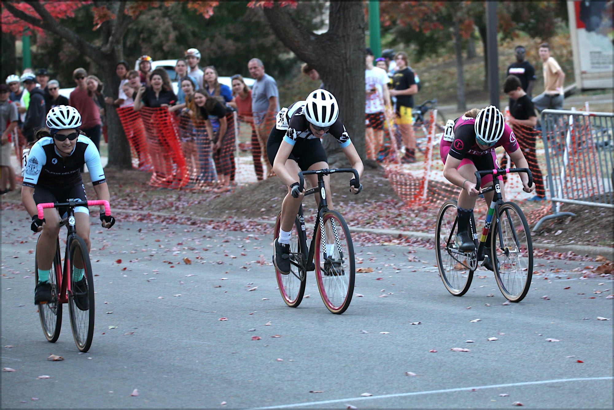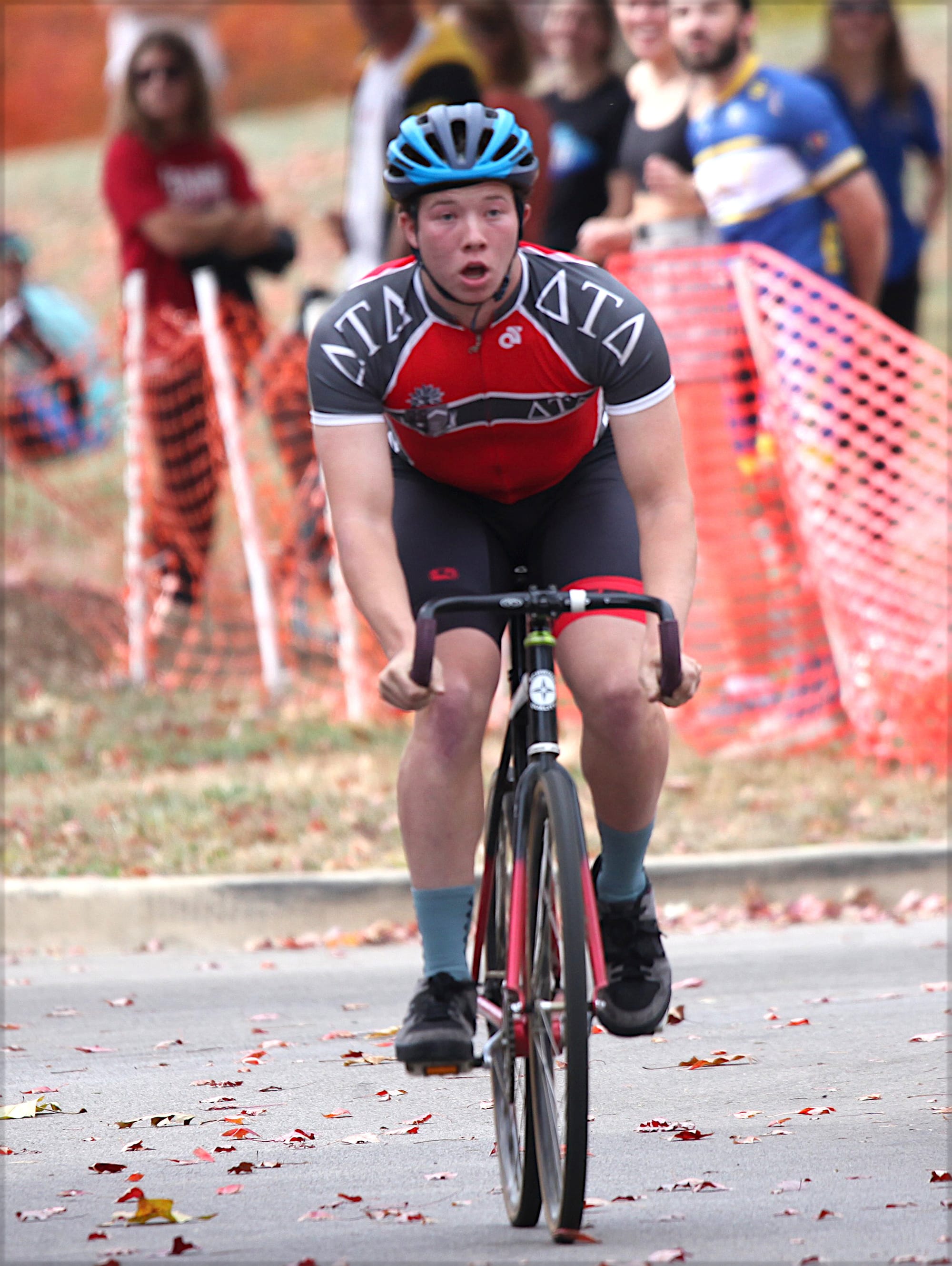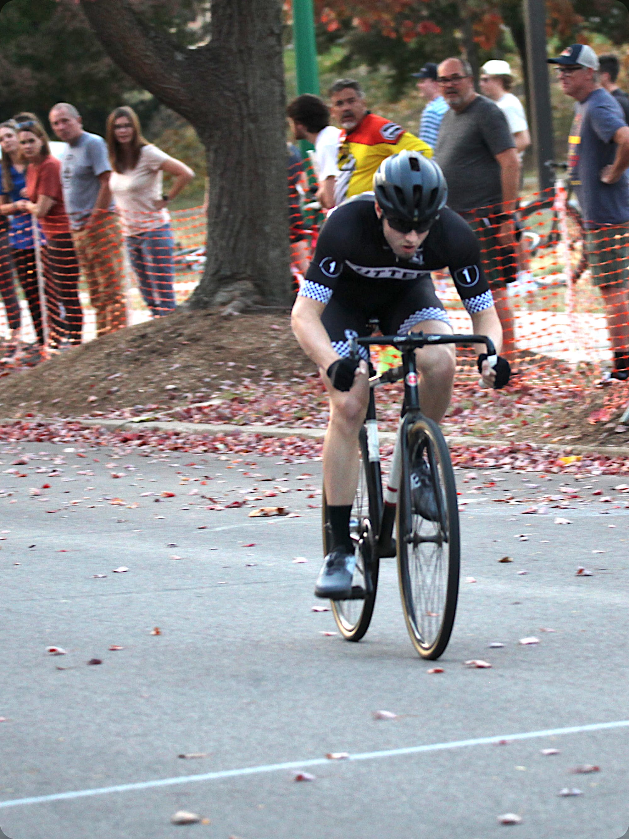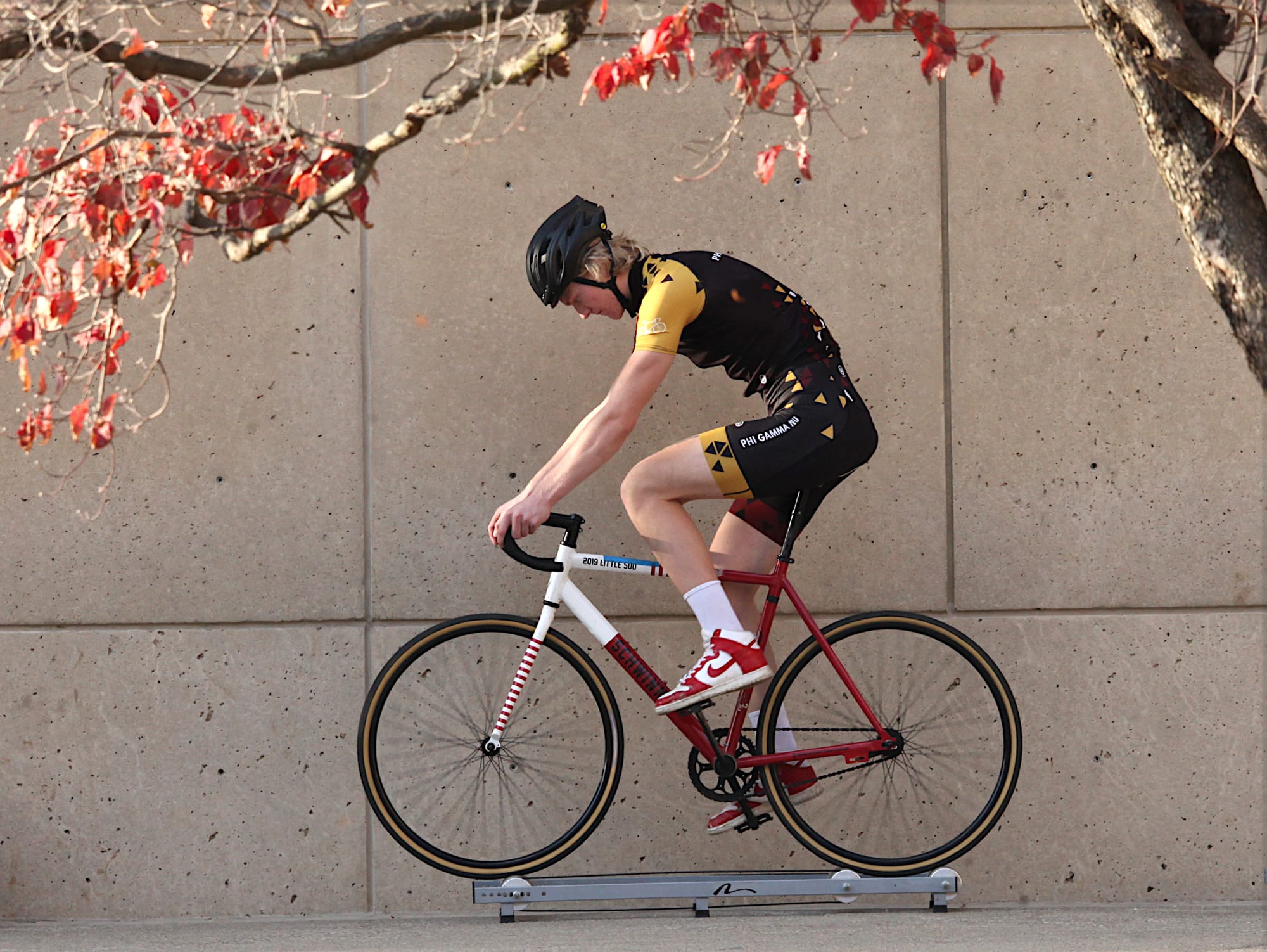 Saturday’s sprints marked the second year for the Indiana University campus venue, which runs along 7th Street from the Indiana Memorial Union east towards Showalter Fountain. On Saturday, the bright sun lit up the trees lining the route into a red and orange canopy of fall colors. The temperature hovered in the mid-70s. A red-tailed hawk kept watch from the top of the Indiana Memorial Union.