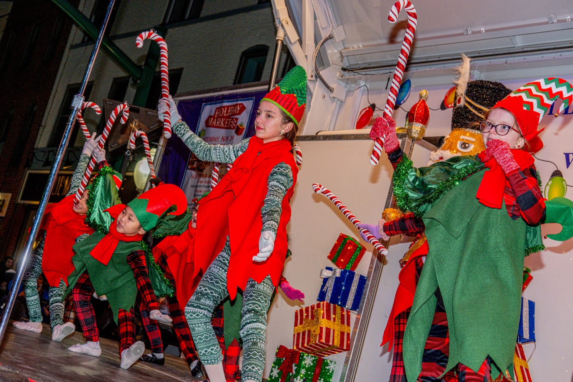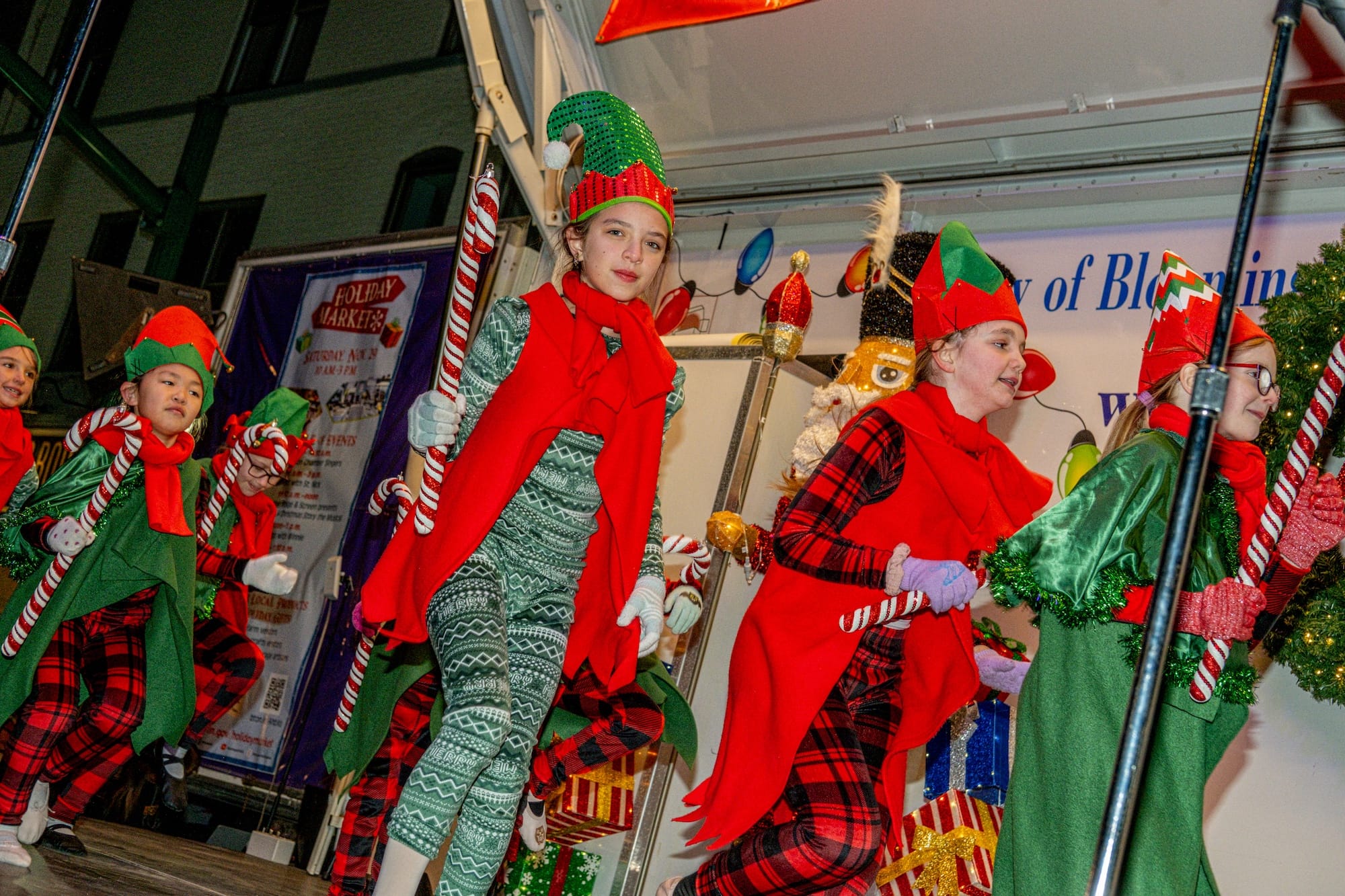 Santa flipped the switch to transform the area into a sparkling winter wonderland. Thousands of lights displayed on and around the Monroe County Courthouse, turning the area into a scene from a Hallmark Christmas movie. The lineup included costumed characters from Bloomington High School South, Windfall Dancing Elves, a Constellation Stage + Screen musical performance from “A Christmas Story” Bloomington Brass Band, Kid Kazooey Sing Along, Bloomington mayor Kerry Thomson and more!