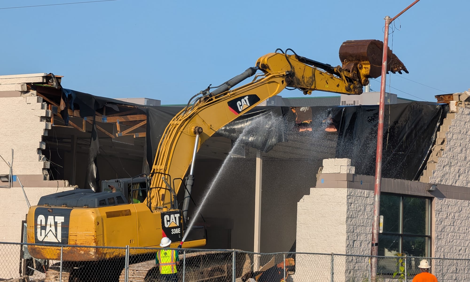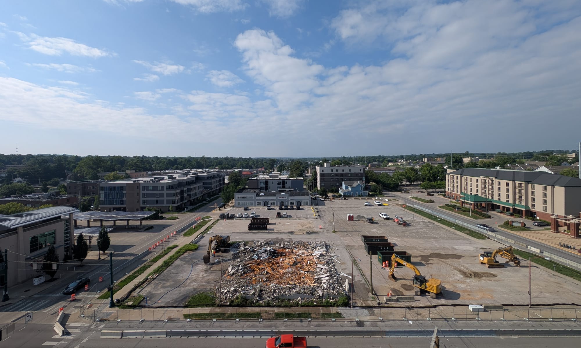 The former NAPA Auto Parts store, more recently the election operations building for Monroe County, gets demolished to make way for the expansion of the Bloomington Convention Center (formerly the Monroe Convention Center). The demolition started a bit after 8 a.m. and the building was flat in under two hours. (Dave Askins, July 232025)