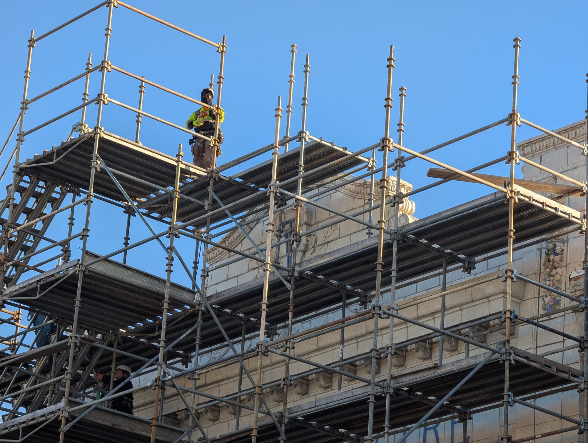 The scaffolding is coming down as of 9:30 a.m. The renovation to the Princess Theater facade seems like it is complete.