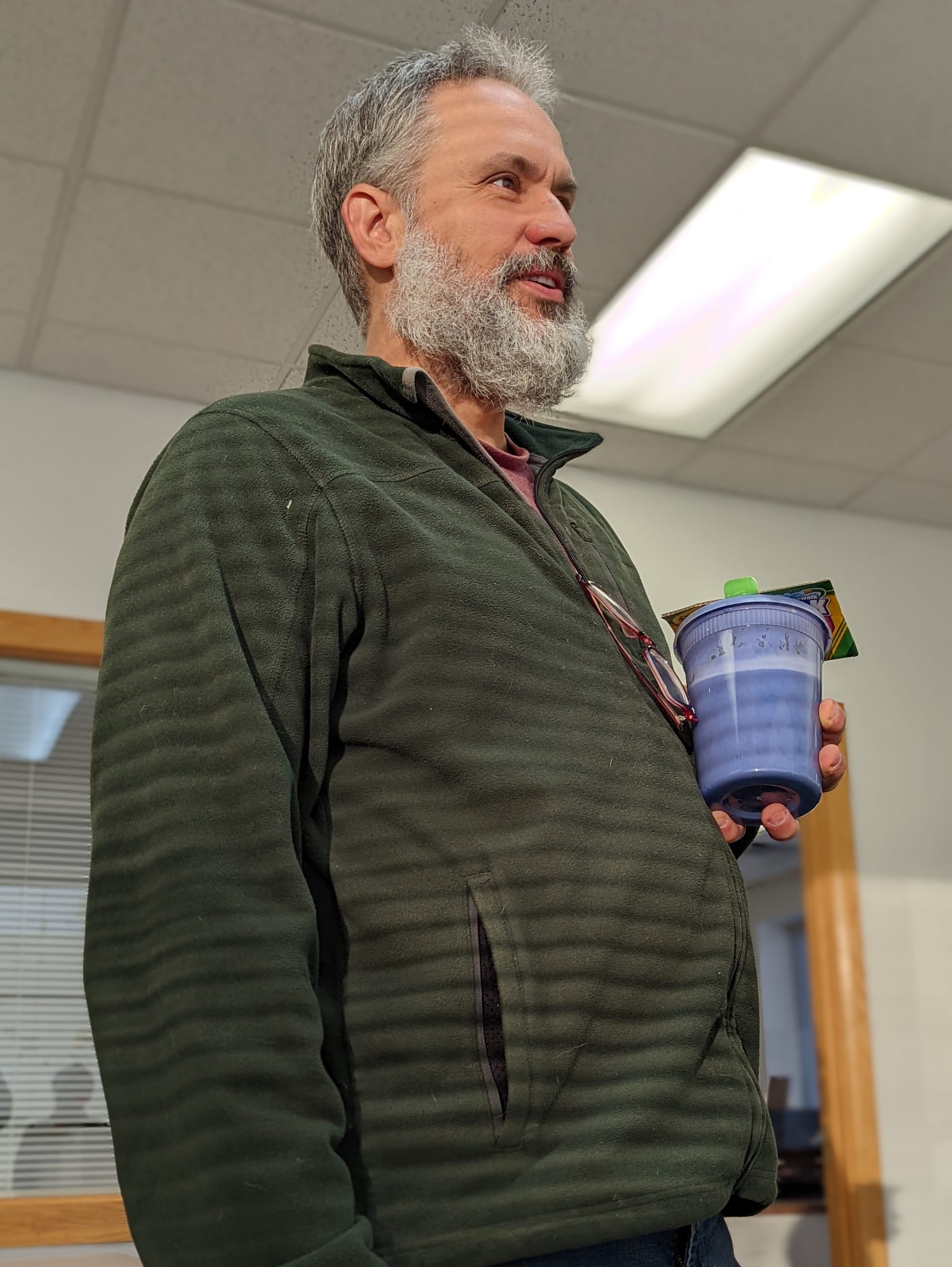 On Wednesday morning, Westgård chatted with Monroe County clerk Nicole Browne inside Election Central—assuring her that his protest was not against the clerk’s office.