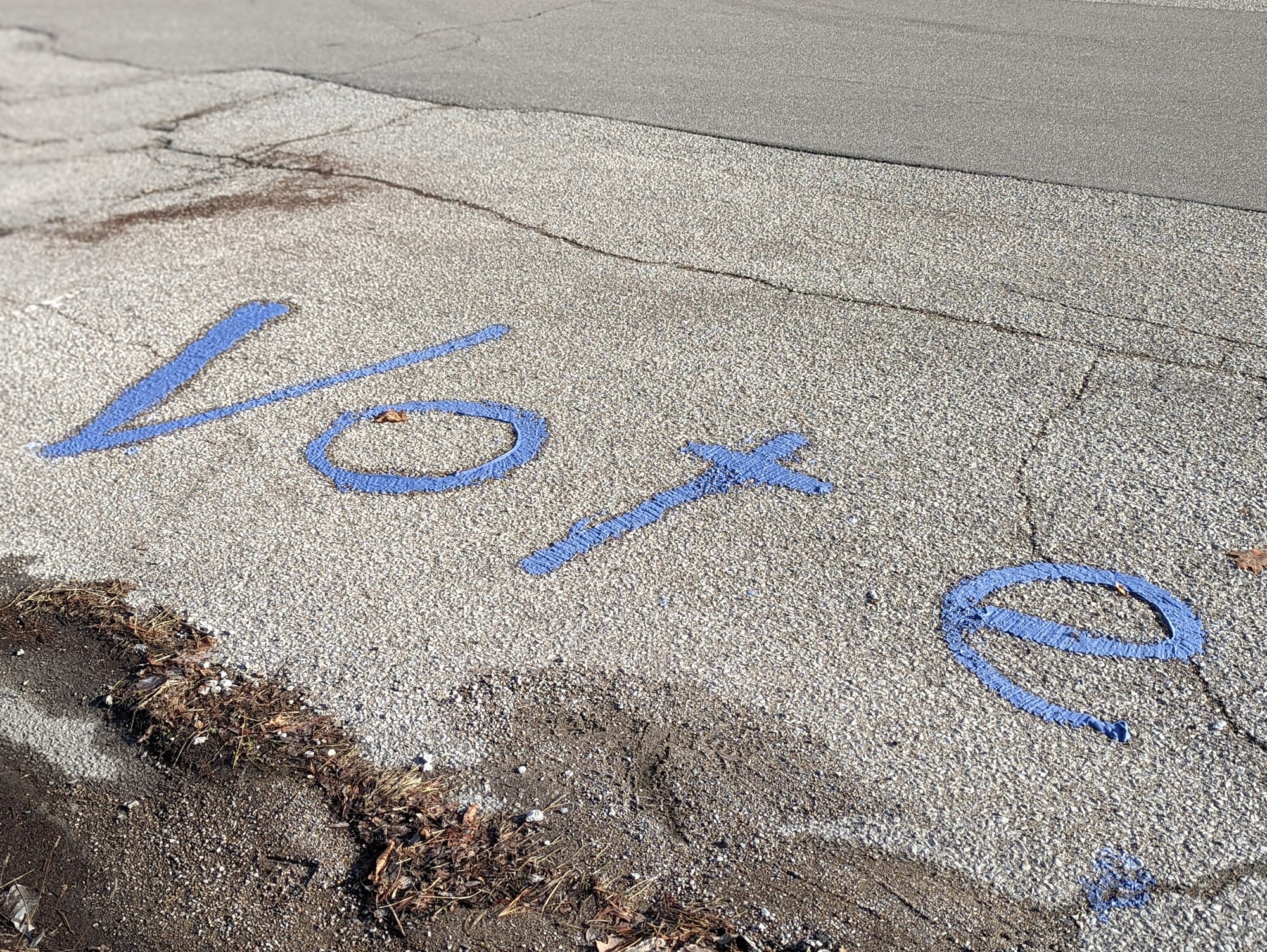 After a few minutes, the word “vote” was spelled out in purple on the pavement.