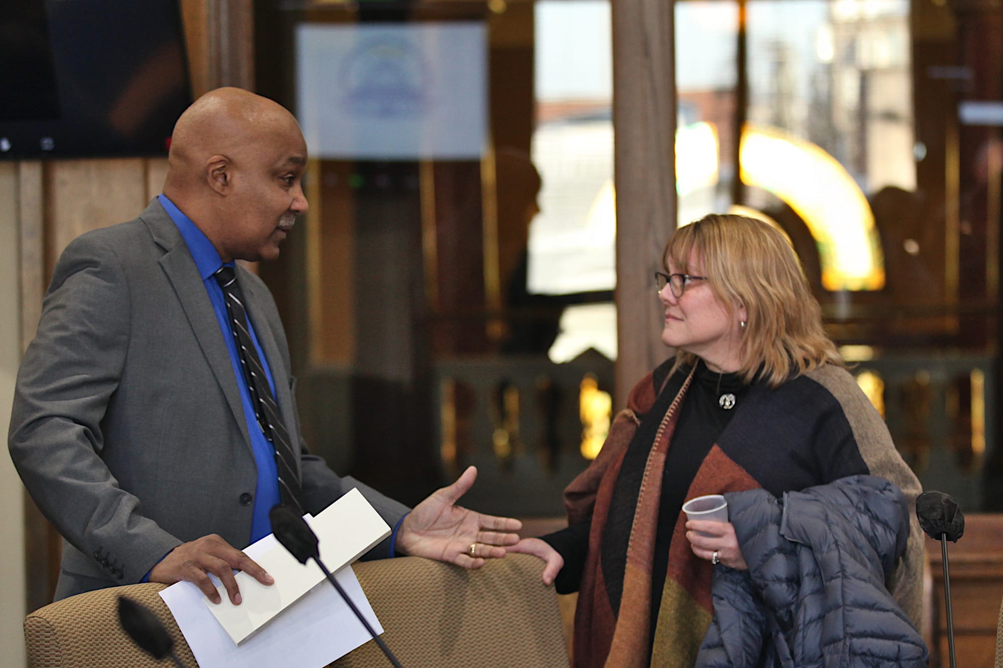 Attending Monday’s meeting were Bloomington councilmember Isabel Piedmont-Smith, and the city’s public engagement director, Kaisa Goodman, as well as former deputy mayor Don Griffin, who is running for mayor.