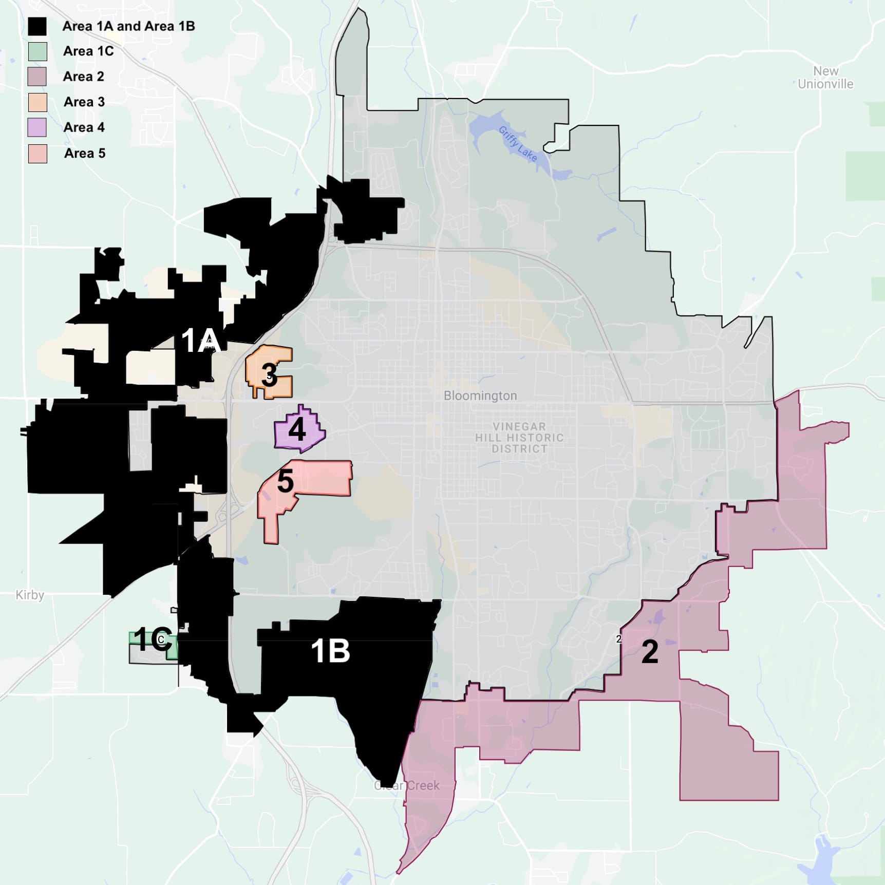 Nikirk’s ruling, on five consolidated lawsuits, affects Bloomington’s annexation in five different areas. There’s one lawsuit for each territory.
