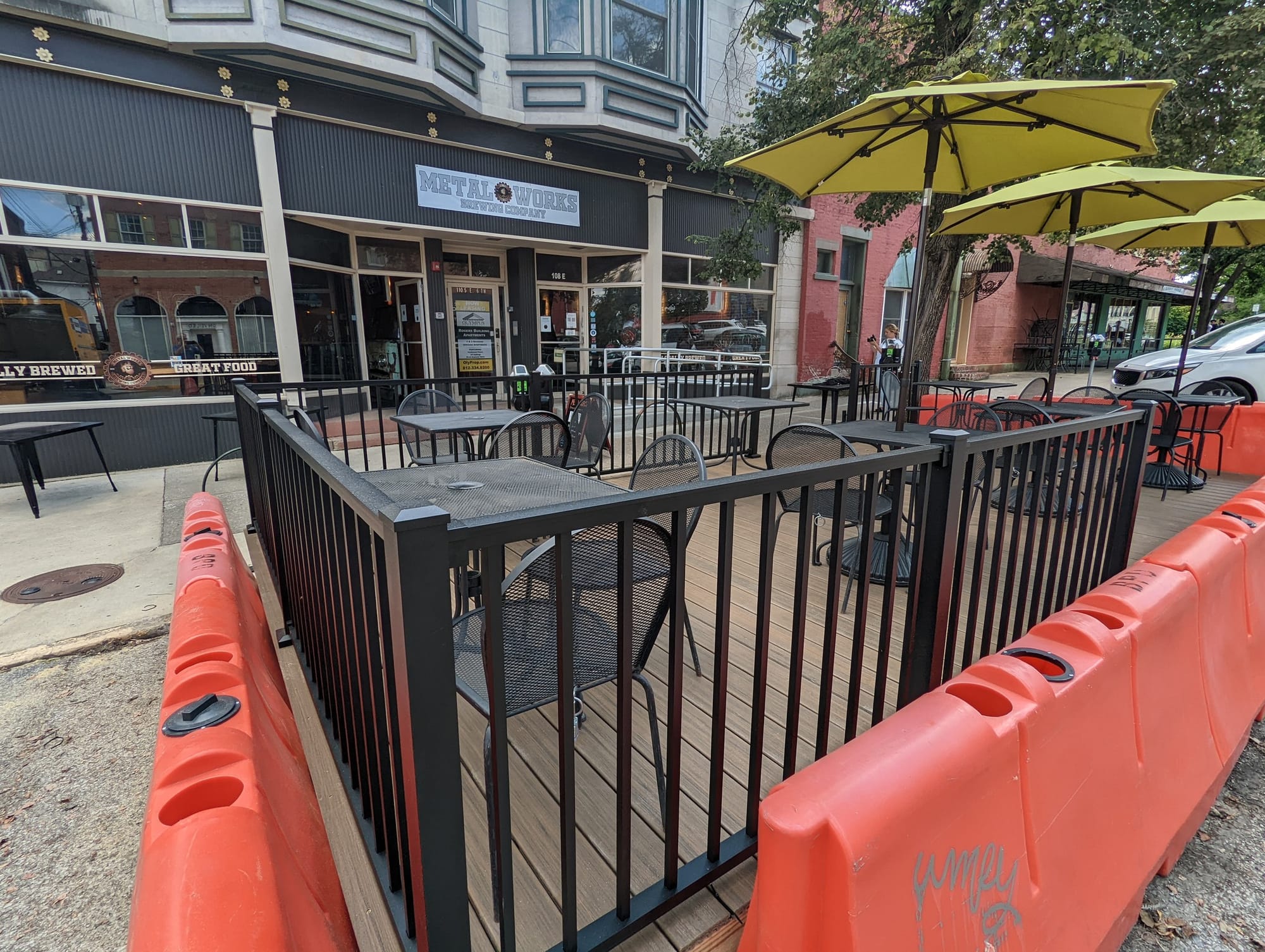 The program, which includes the two separate concepts of closing Kirkwood to car traffic, and using parking spaces for outdoor dining in other parts of the downtown, runs under the official name, “Expanded Outdoor Dining Program In The Downtown Corridor.”
