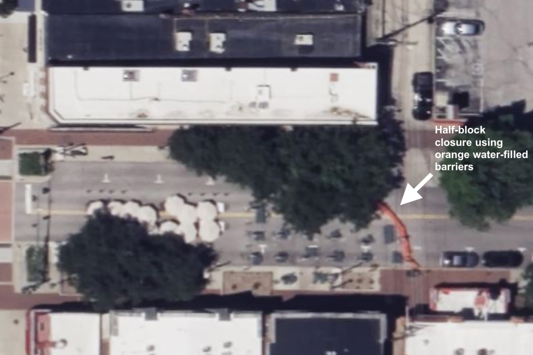 Again this year, residents and visitors to downtown Bloomington will also notice orange water-filled traffic barriers marking off some on-street parking spaces, so that restaurants can serve customers there.