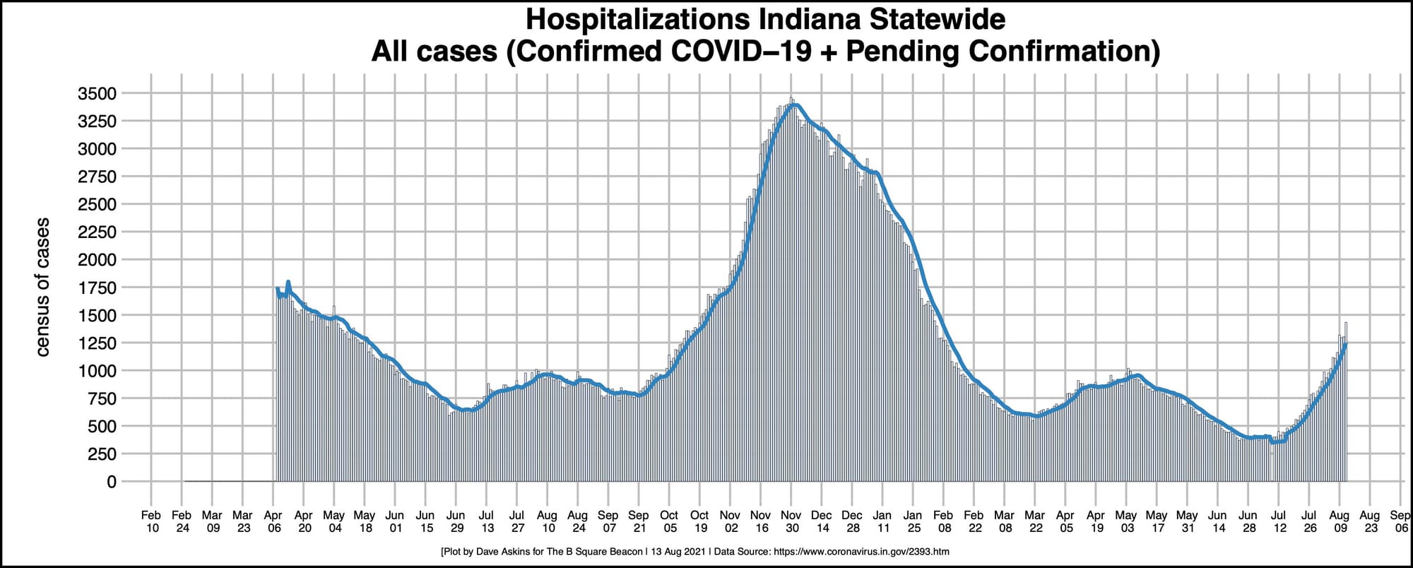 Hospitalizations are up statewide to an average daily census of around 1,200—numbers not seen since late January and early February.