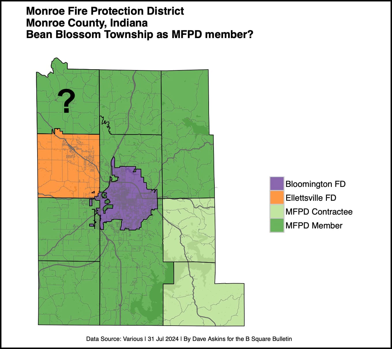 Bean Blossom Township, in the northwest corner of Monroe County, has been following a process that could have made the township a member of the Monroe Fire Protection District (MFPD) starting in 2026.