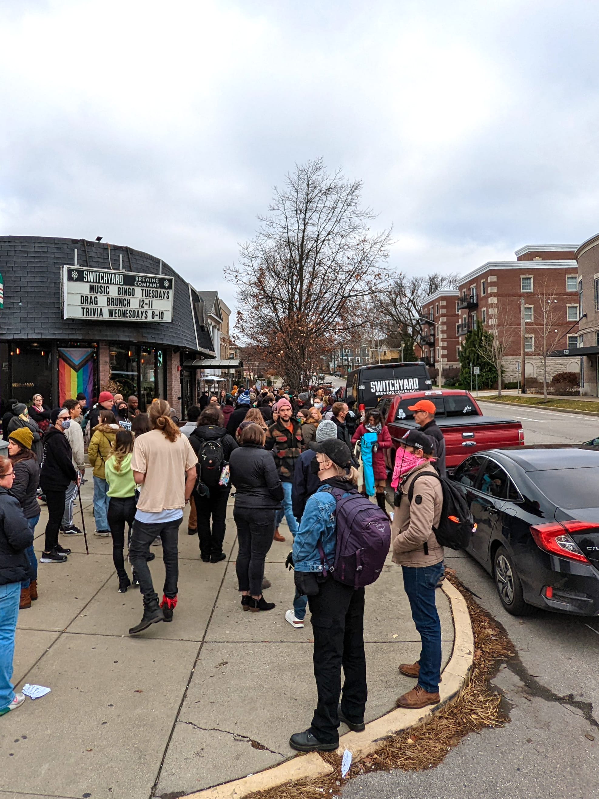 On Sunday morning starting around 8:30 a.m. a cadre of Bloomington community members started gathering on the sidewalk in front of Switchyard Brewing on North Walnut Street in downtown.