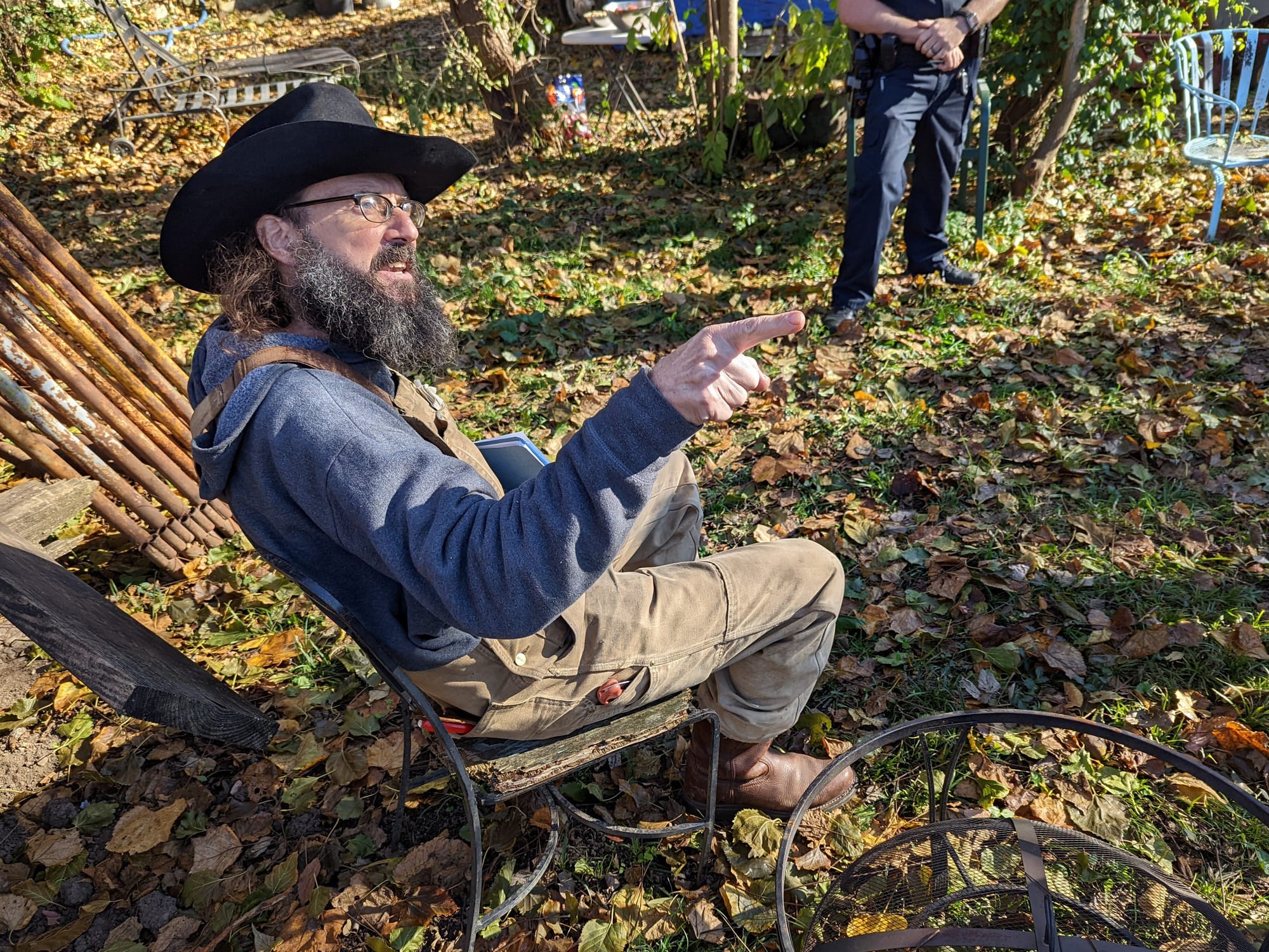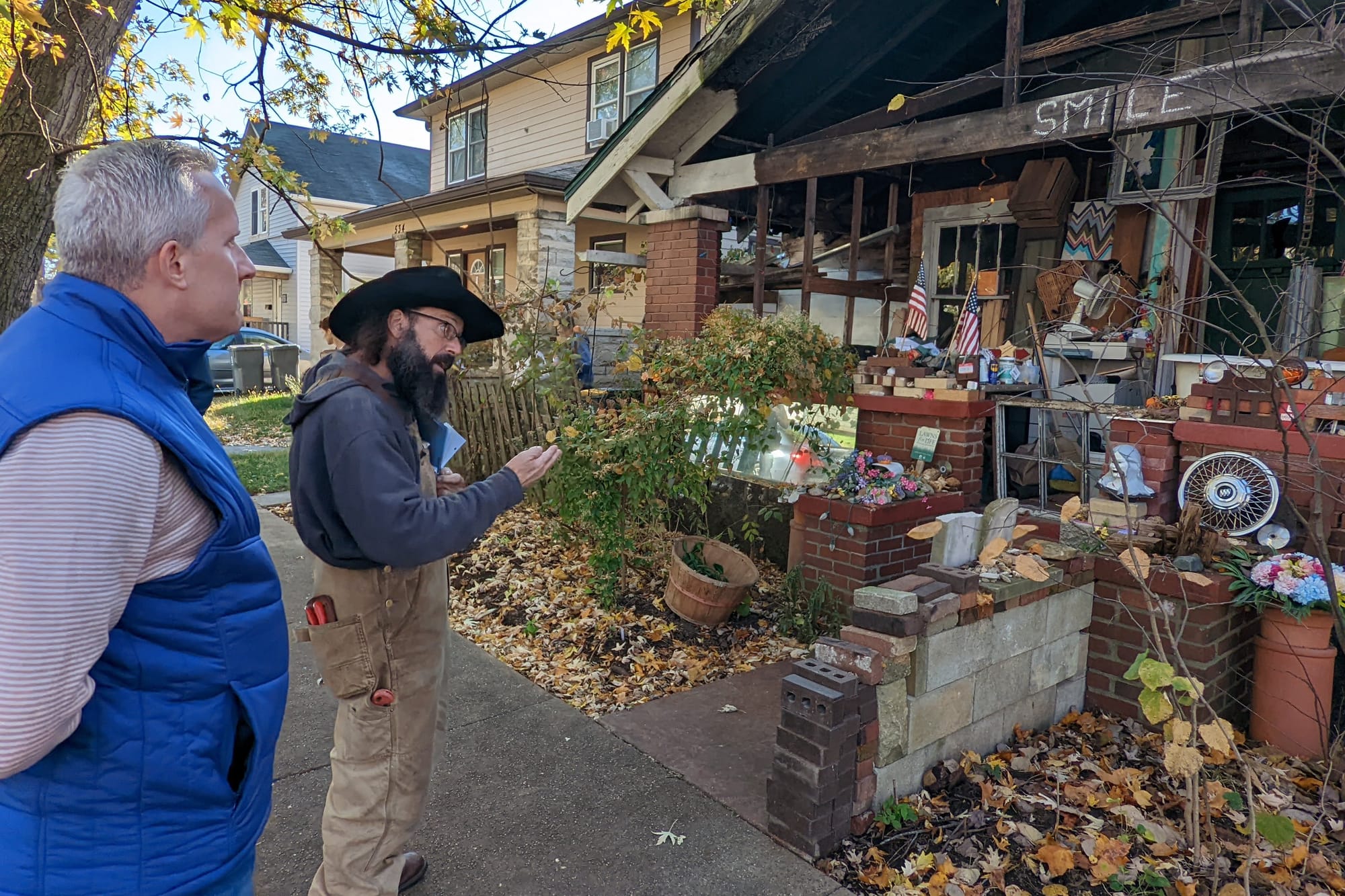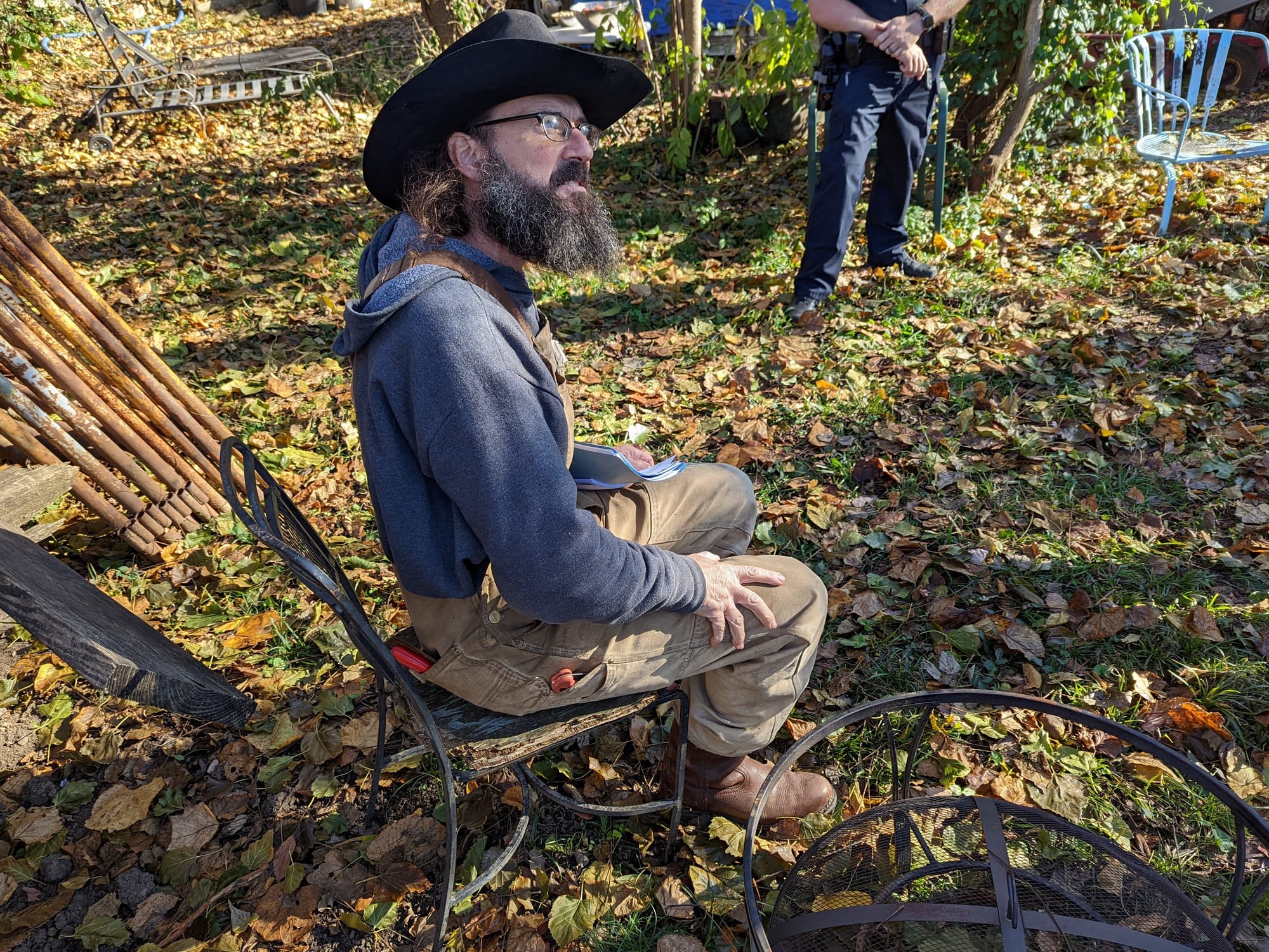 One step in the city’s strategy to bring the property into a state that it considers compliant with the zoning code was worked out in a visit to Davis’s property on Nov. 2. That step was for Davis to inventory the items on his property that he considers to be related to the construction of an accessory structure in his backyard for which he has a building permit.