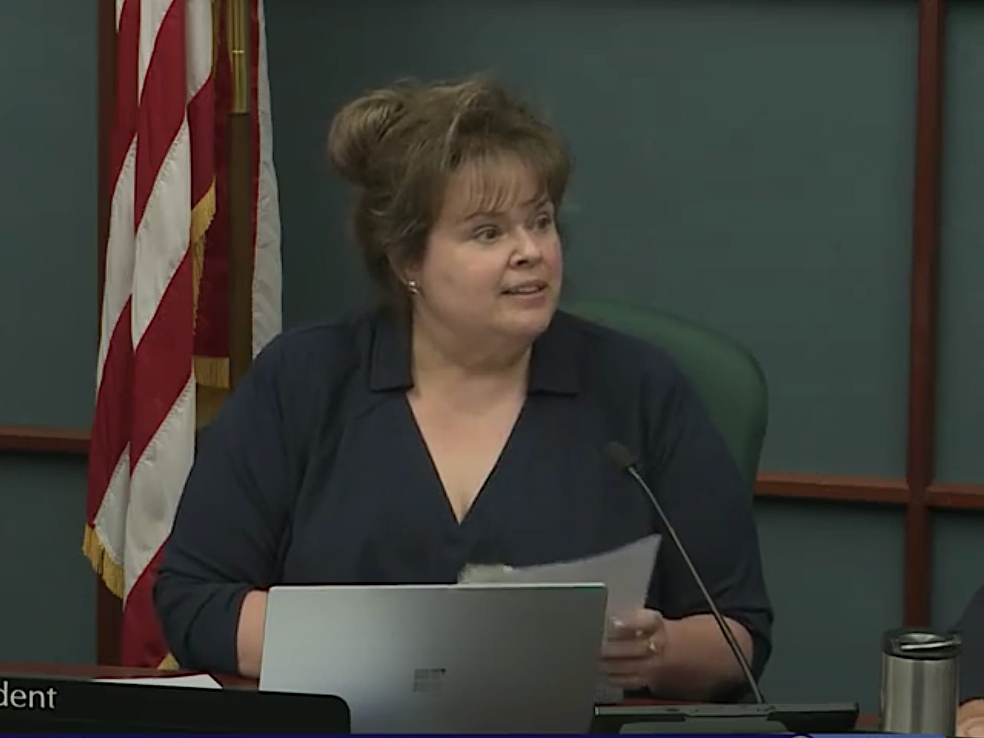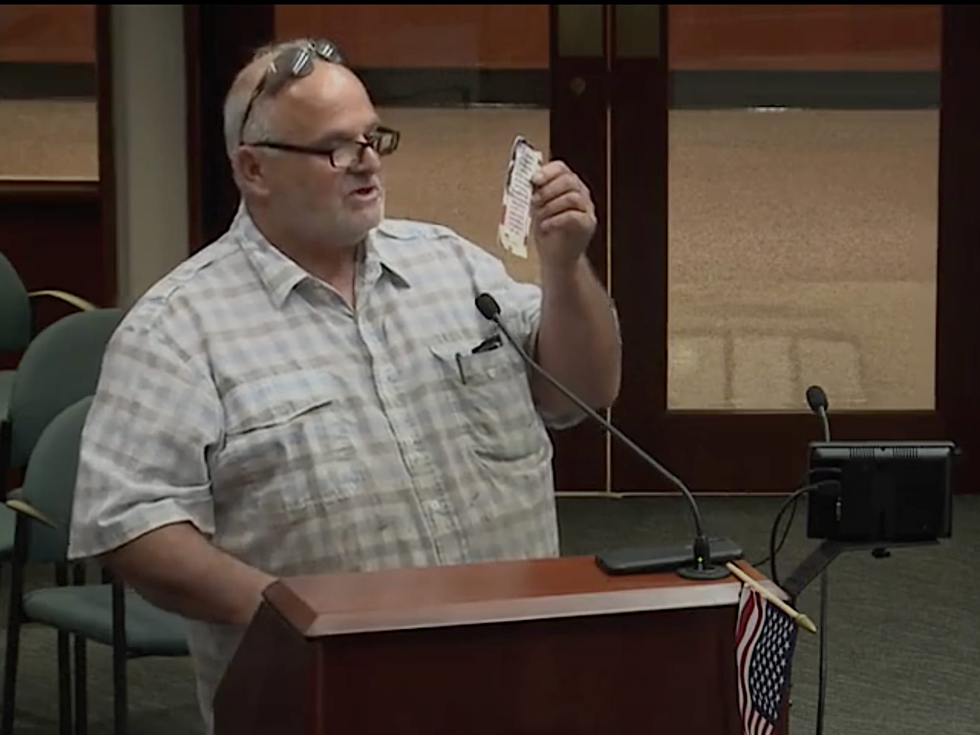 During his first attempt at public comment, Ruble did not heed Sgambelluri’s request to state his name, which she repeated a half dozen times, over about three minutes—while he recited “I am Your Flag.” That’s a tribute to the American flag by Thomas E. Wicks, Sr.