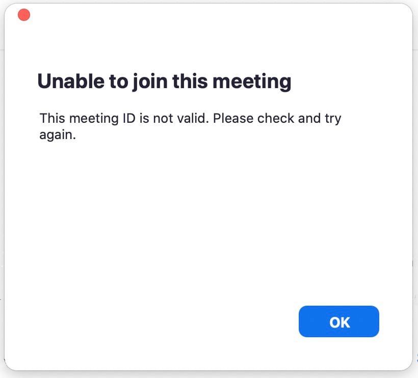 But the Zoom link that had been provided in the official public notice of the meeting did not work. When an attempt was made to launch the Zoom interface for the meeting, an error message was delivered, which read: “This meeting ID is not valid.”