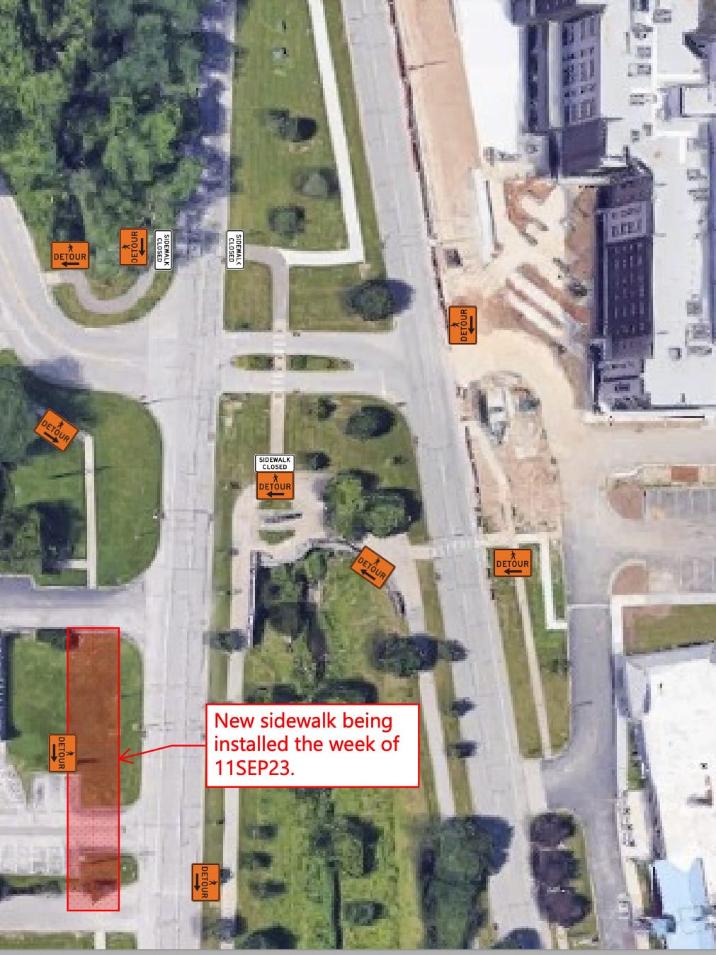 And those public infrastructure improvements require closure of sidewalks and street lanes—for nearly three months, from Sept. 27 to Dec. 22.
