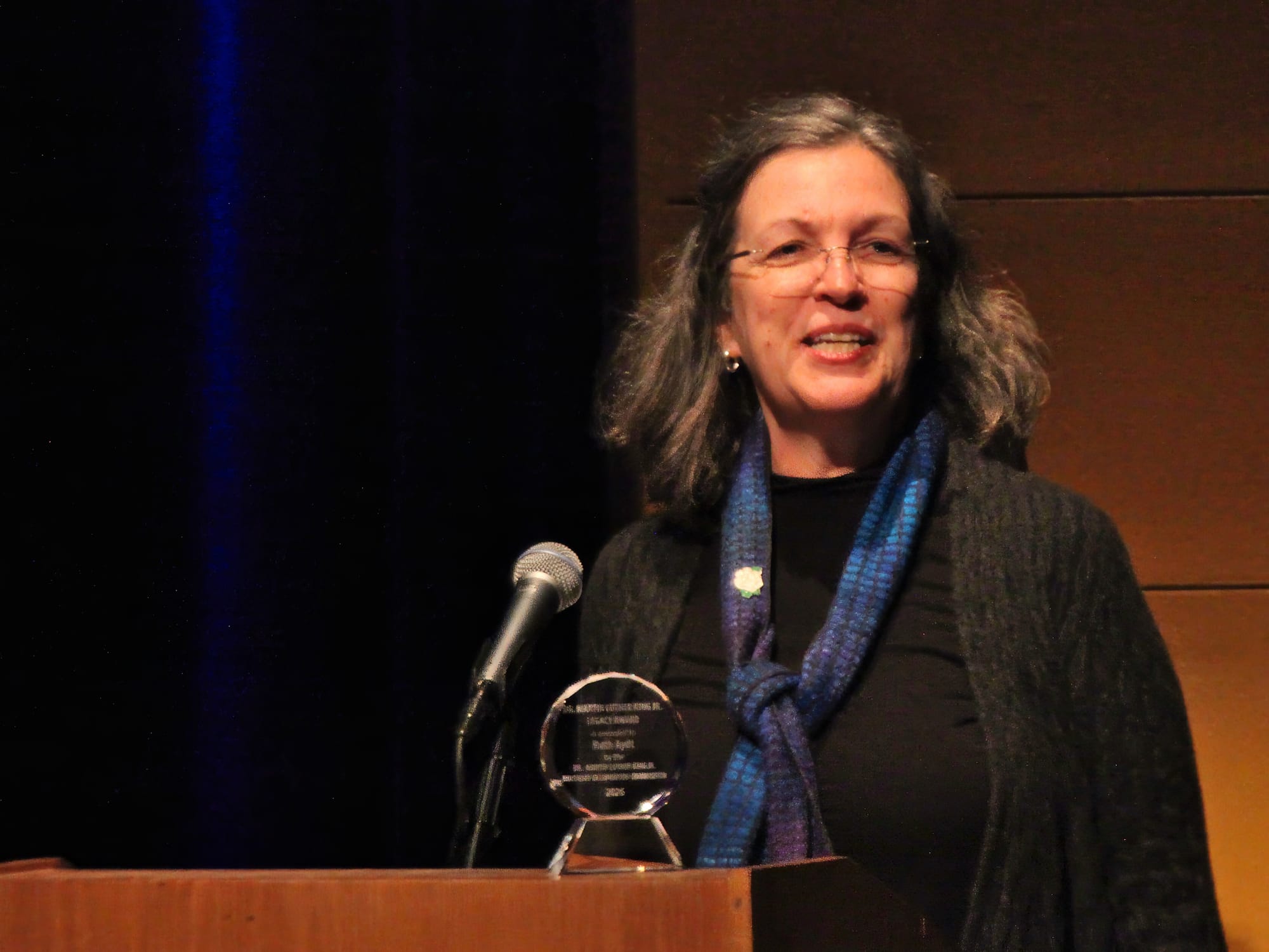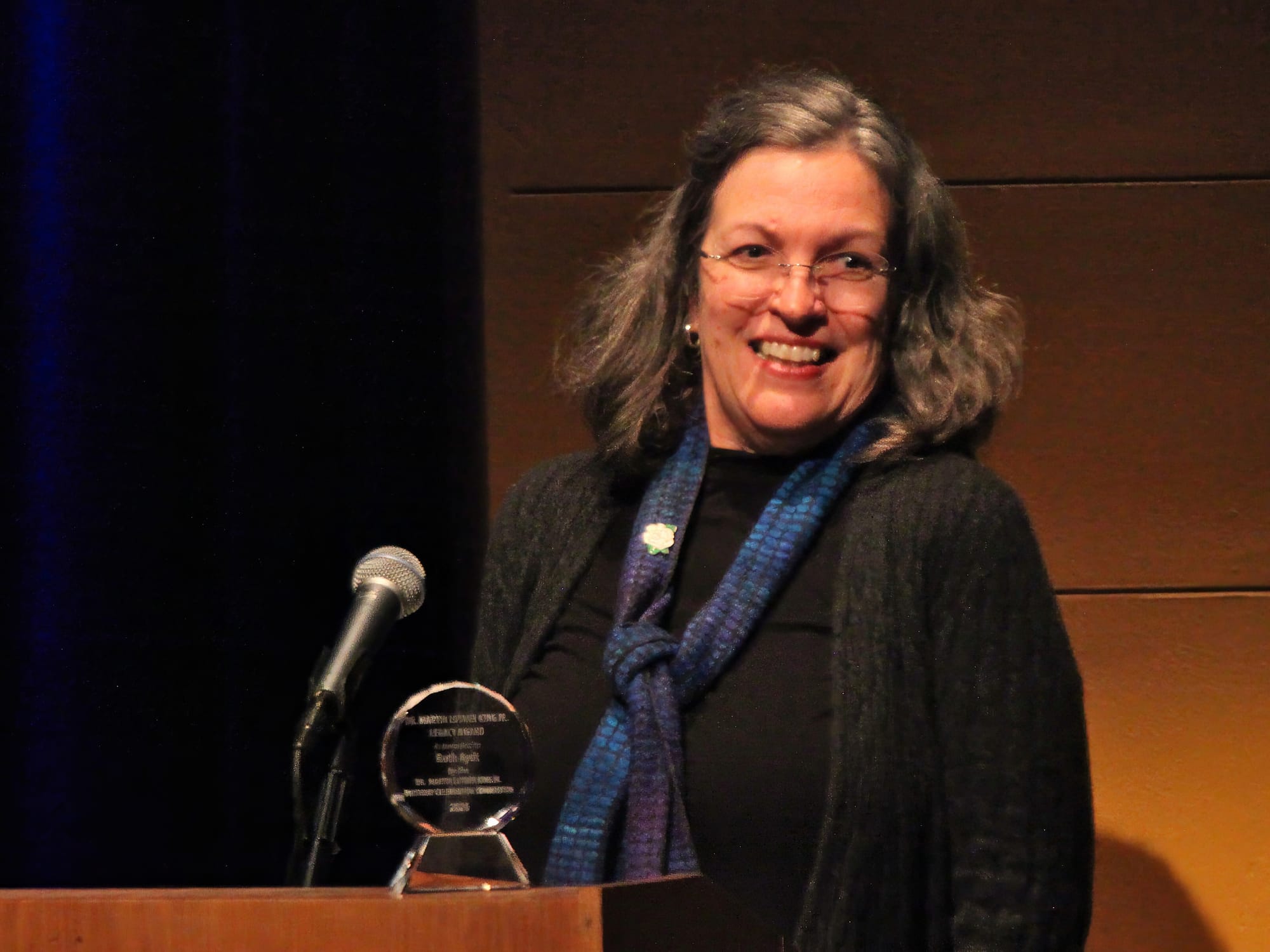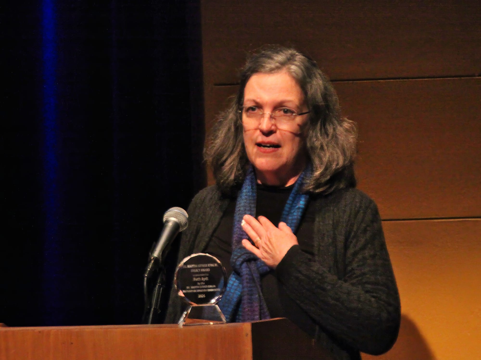 2026 Dr. Martin Luther King Jr. Legacy Award winner Ruth Aydt: “So many in our community give tirelessly to advance racial equity and justice and to foster belonging. Aydt described her own work as a continuing journey of learning and unlearning: “The more I learn, the more I realize the scope of what I don’t know and have been conditioned not to see in the past and in the present. Aydt asked residents to do more than offer thanks to Black leaders and organizations: “Please do more than thank them. Listen to what they are saying. Consider what gifts and talents you might contribute.” (Dave Askins, Jan. 19, 2026)