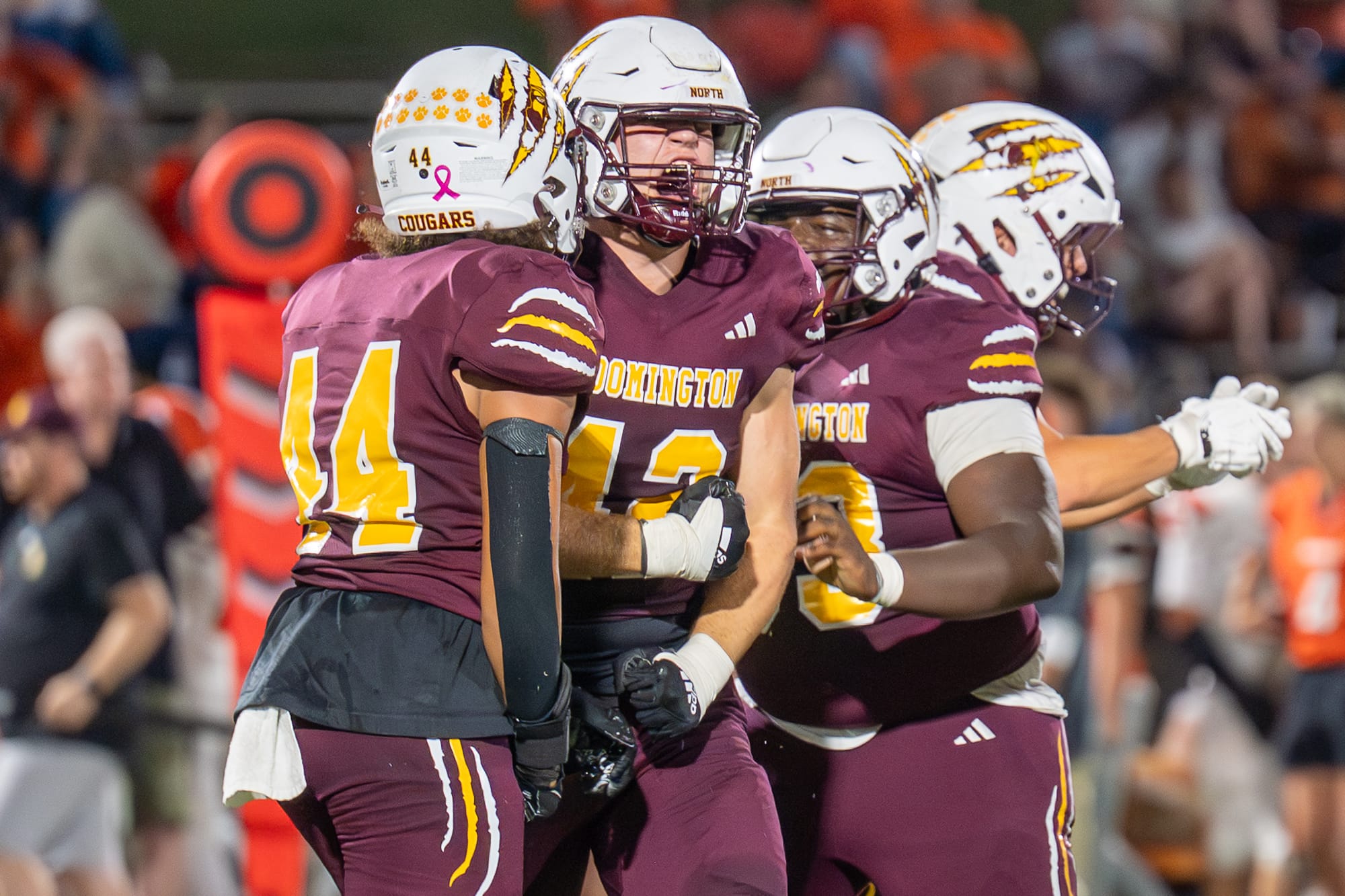 At home on Friday night, Bloomington North’s Cougars beat the visiting Columbus East Olympians, 42–0. That brings their record to 4–3 on the season. Photographer Amy Mason captured these pivotal moments from Friday’s win over Columbus East.
