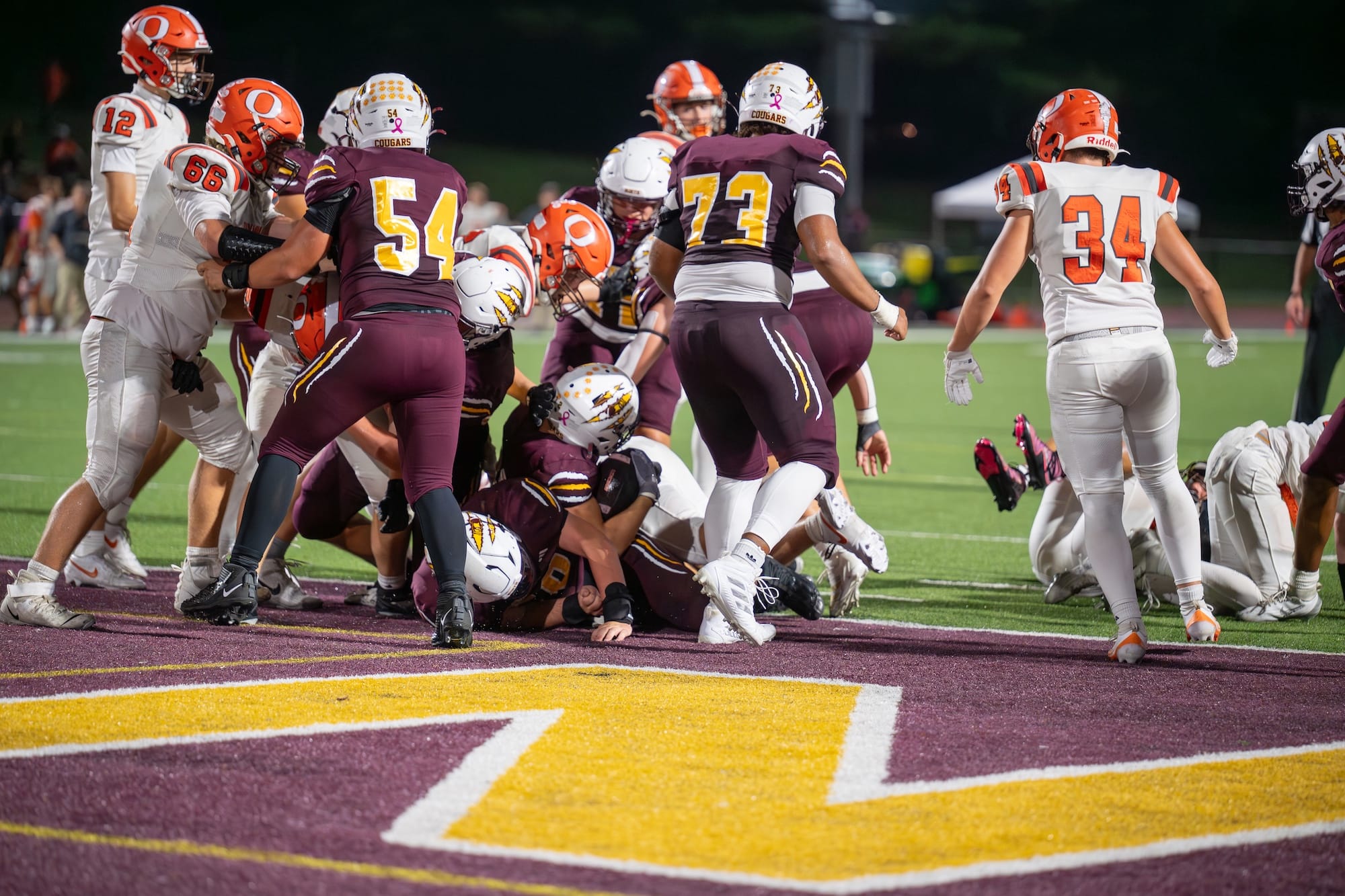 At home on Friday night, Bloomington North’s Cougars beat the visiting Columbus East Olympians, 42–0. That brings their record to 4–3 on the season. Next week, the Cougars will stay at home for their next-to-last game of the season against the Columbus North Bull Dogs. Photographer Amy Mason captured these pivotal moments from Friday’s win over Columbus East.