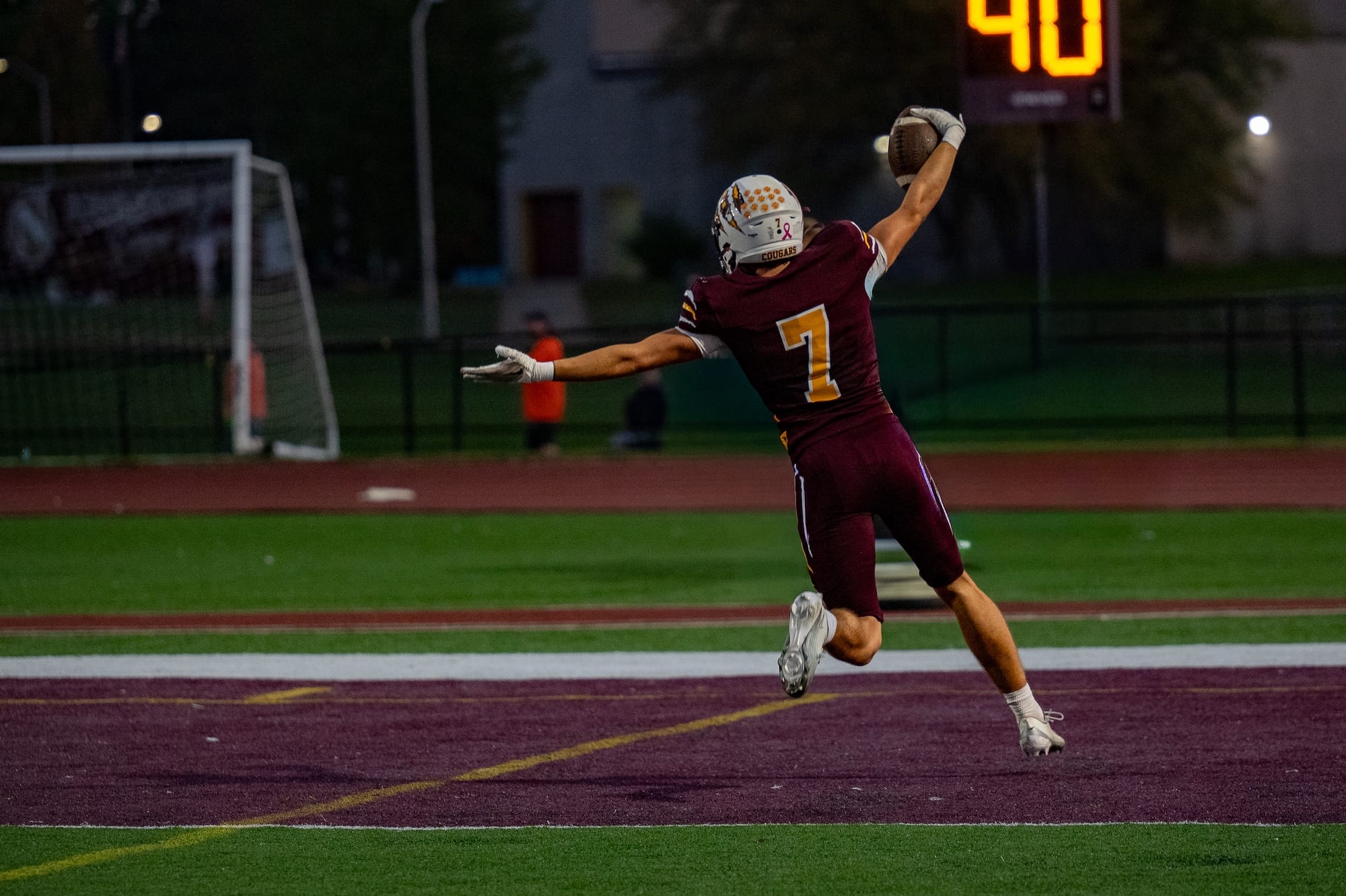 Brayden Johnson (4) scores the first touchdown of the game. (Amy Mason, Oct. 4, 2025)