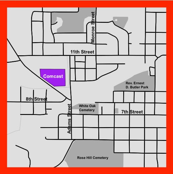 The Comcast property that sits in the wedge formed by Adams Street and West Fountain Drive will eventually not be recognizable by its communications tower.