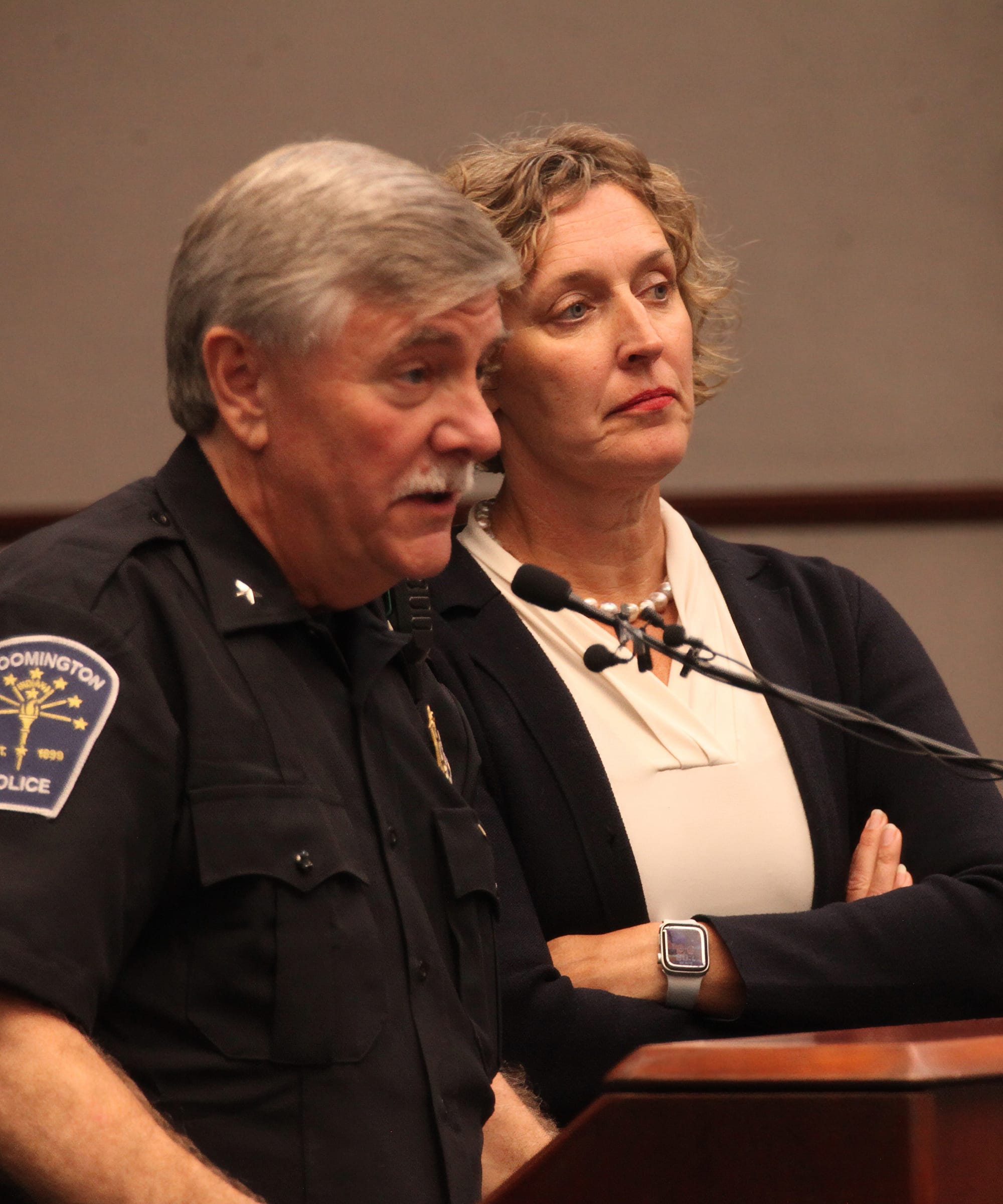 Bloomington mayor Kerry Thomson opened the news conference by calling it “an incredibly sad day” and unequivocally condemning gun violence in the community. She said her thoughts were with those injured and praised what she described as strong cooperation between Bloomington Police, Indiana University Police, and the Indiana State Police.