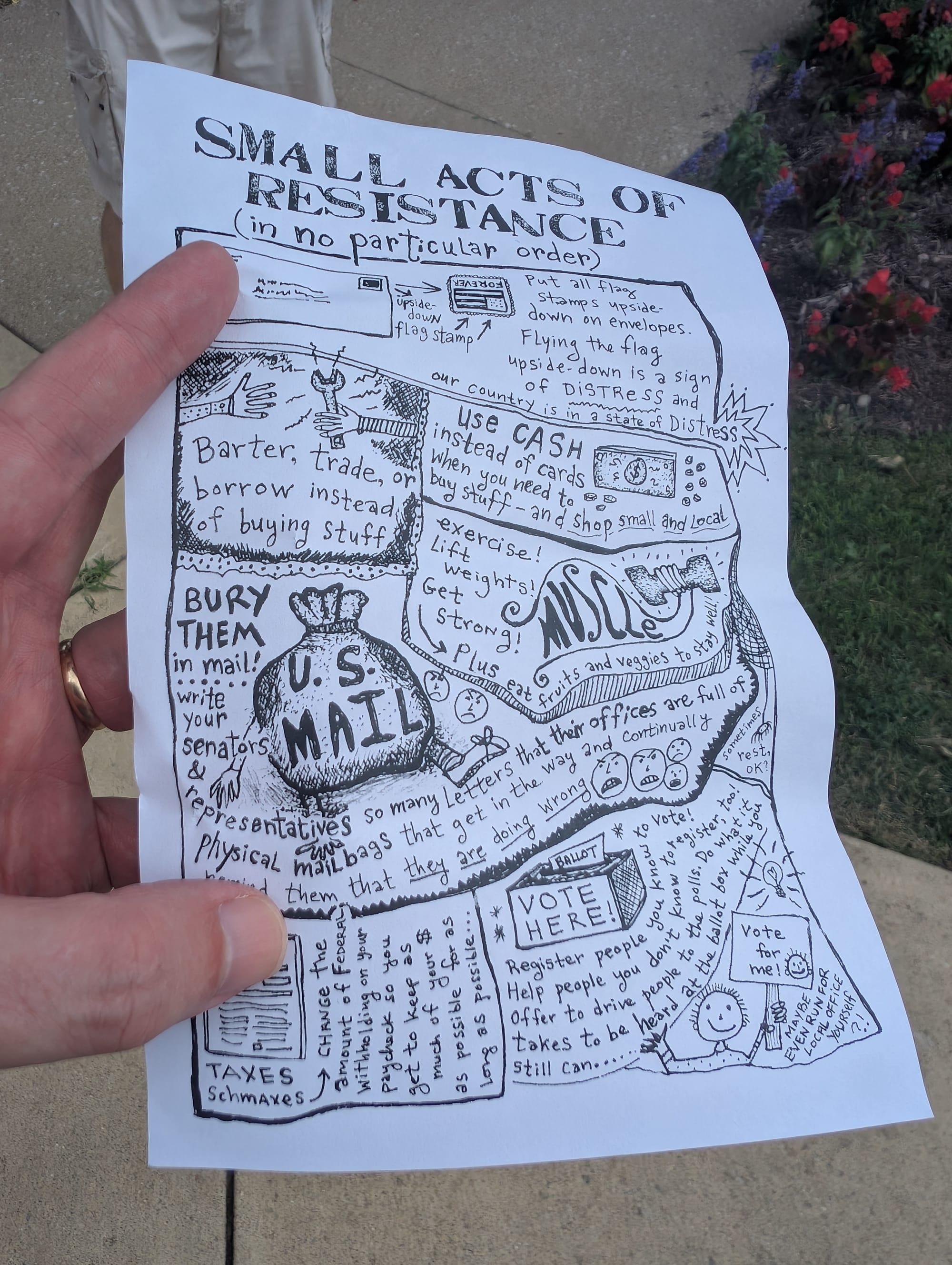Signs and a flyer from Thursday’s rally. (Dave Askins, July 17, 2025)