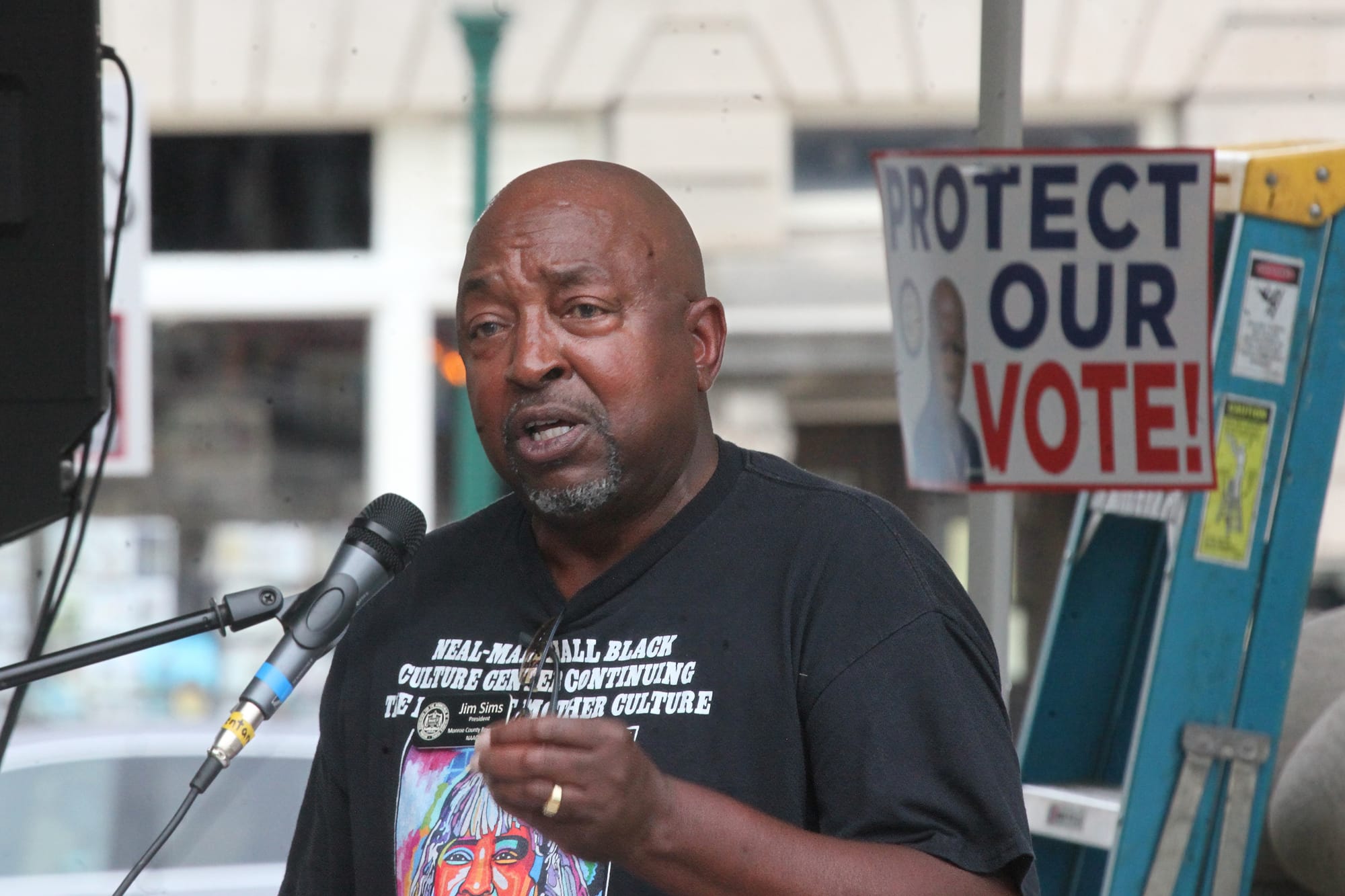 Sims then told the crowd that the plan that the Trump administration is following was laid out in Project 2025, and that “we tried to educate people what was coming.” Sims said, “We denounce the attacks on our civil rights, we denounce attacks on our voting rights, we denounce attacks on the free speech rights, and we denounce the attacks on our LGBTQ+ rights.” Sims continued, “We further denounce the attacks on our educational systems, on our health care for our working people, people with lower income.” Sims equated "attacks by the Trump administration on Black people and other marginalized communities" to “attacks on humanity.”