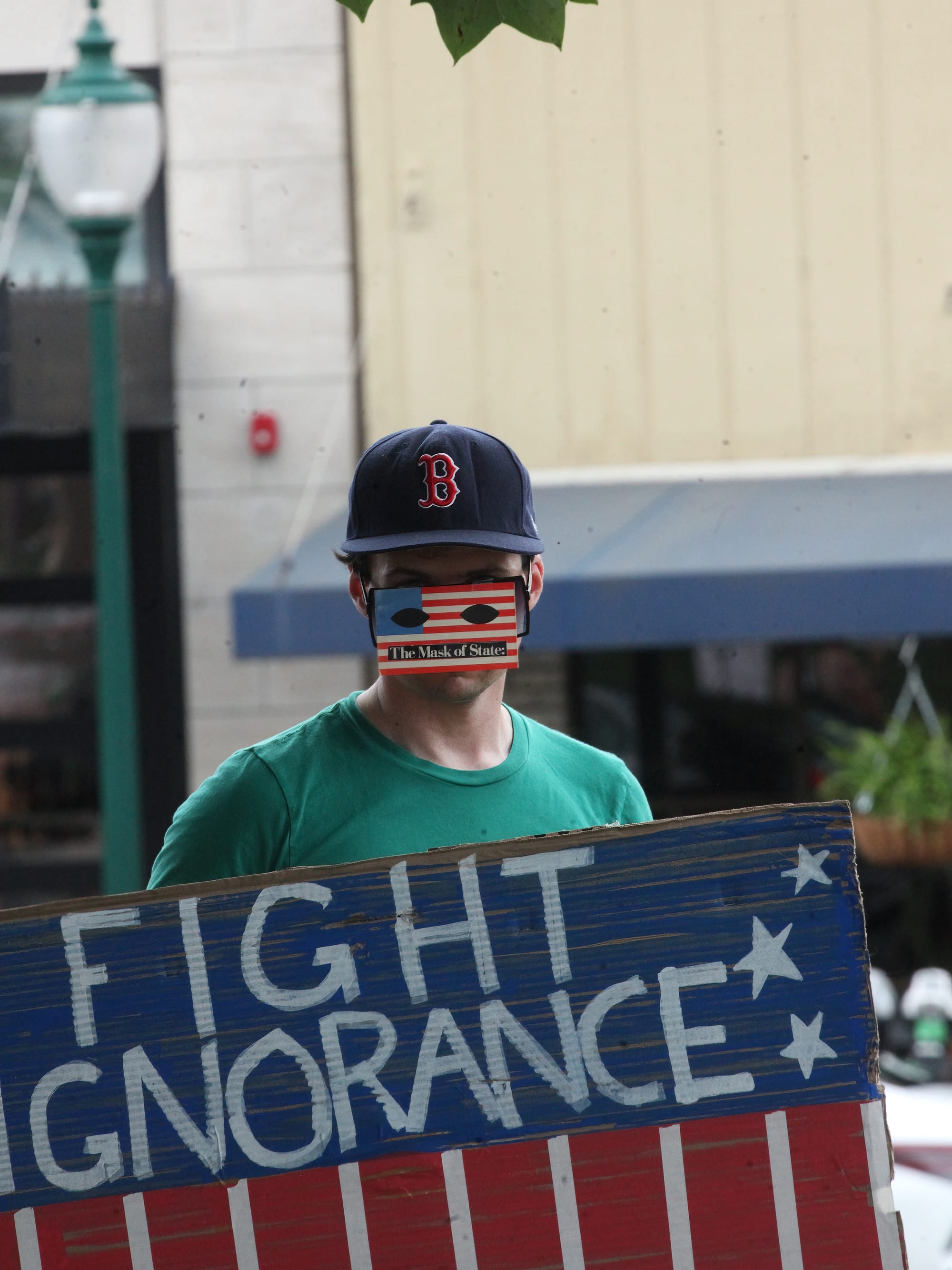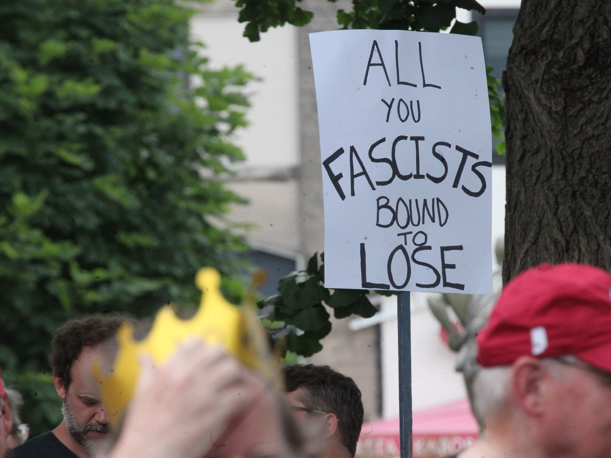 On Thursday (July 17), at least 300 people crowded onto the southeast corner of the Monroe County courthouse grounds to protest actions taken by U.S. President Donald Trump’s administration during the first six months of his term.