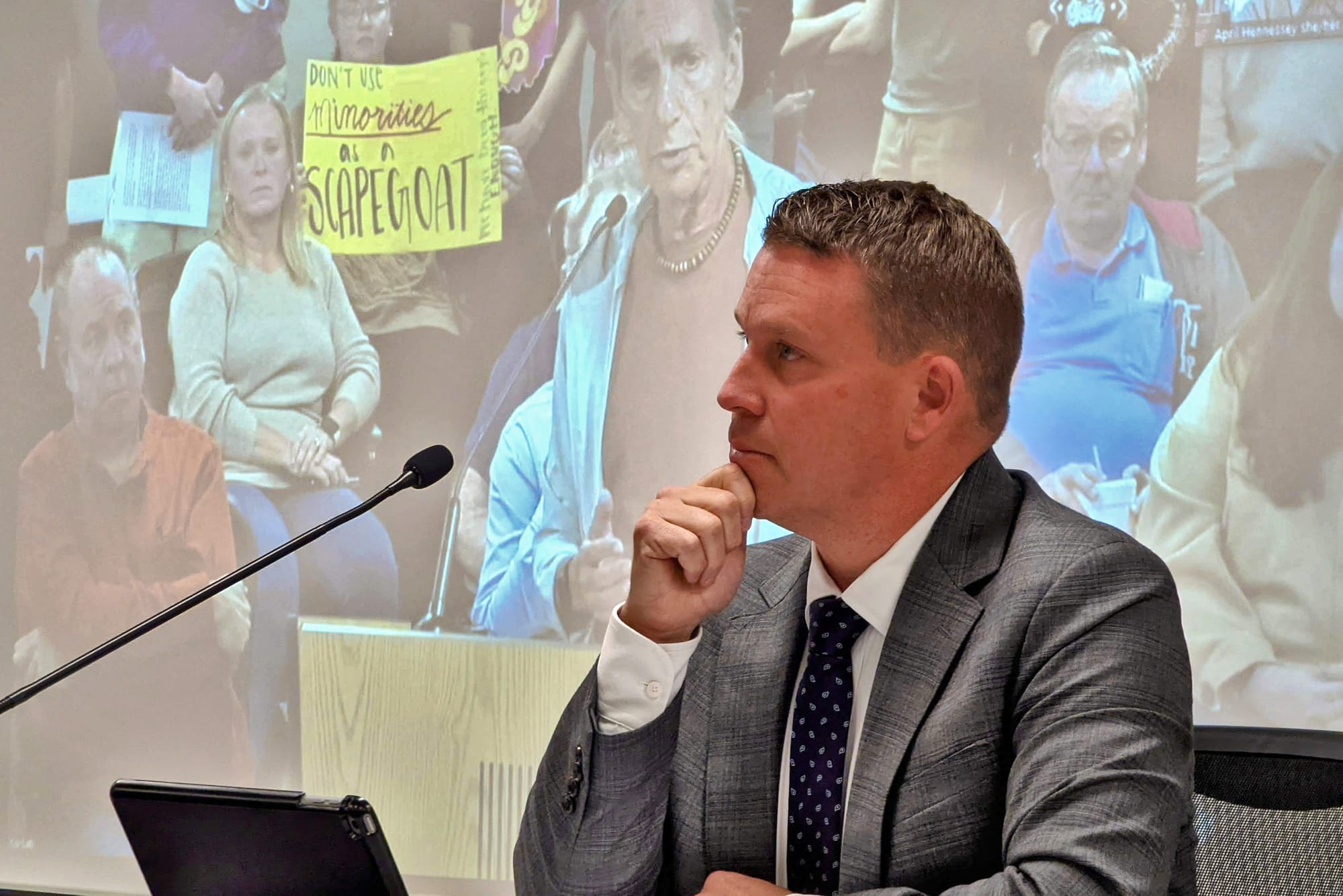 During Tuesday’s meeting, one attendee called out to Hauswald from a seat in the audience, “You lied to us!”