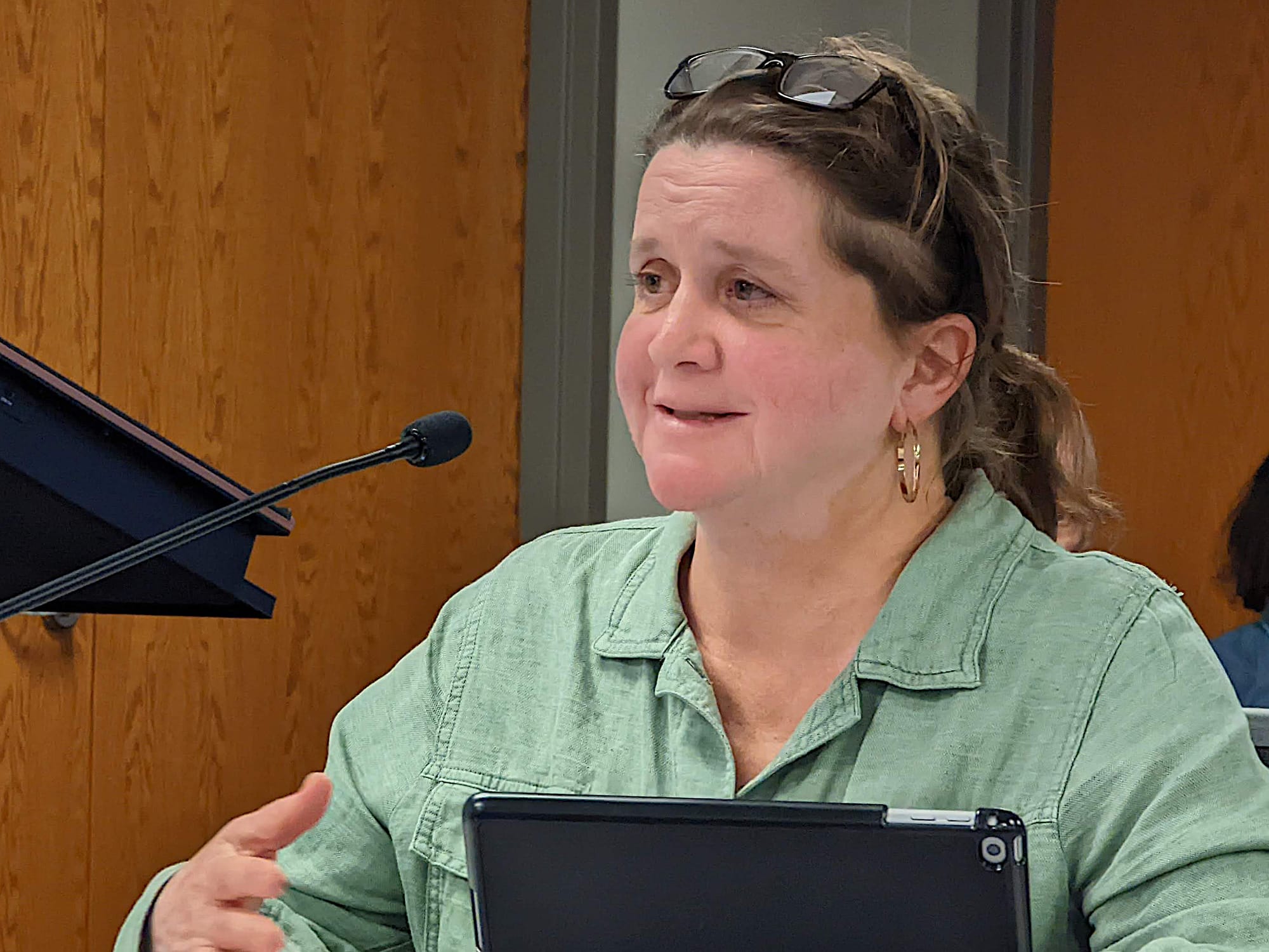 The motion to add the question to the agenda, as well as the motion to make the schedule change a board voting matter, was put forward by board vice president April Hennessey. She was participating in the meeting remotely on the Zoom video conferencing platform.