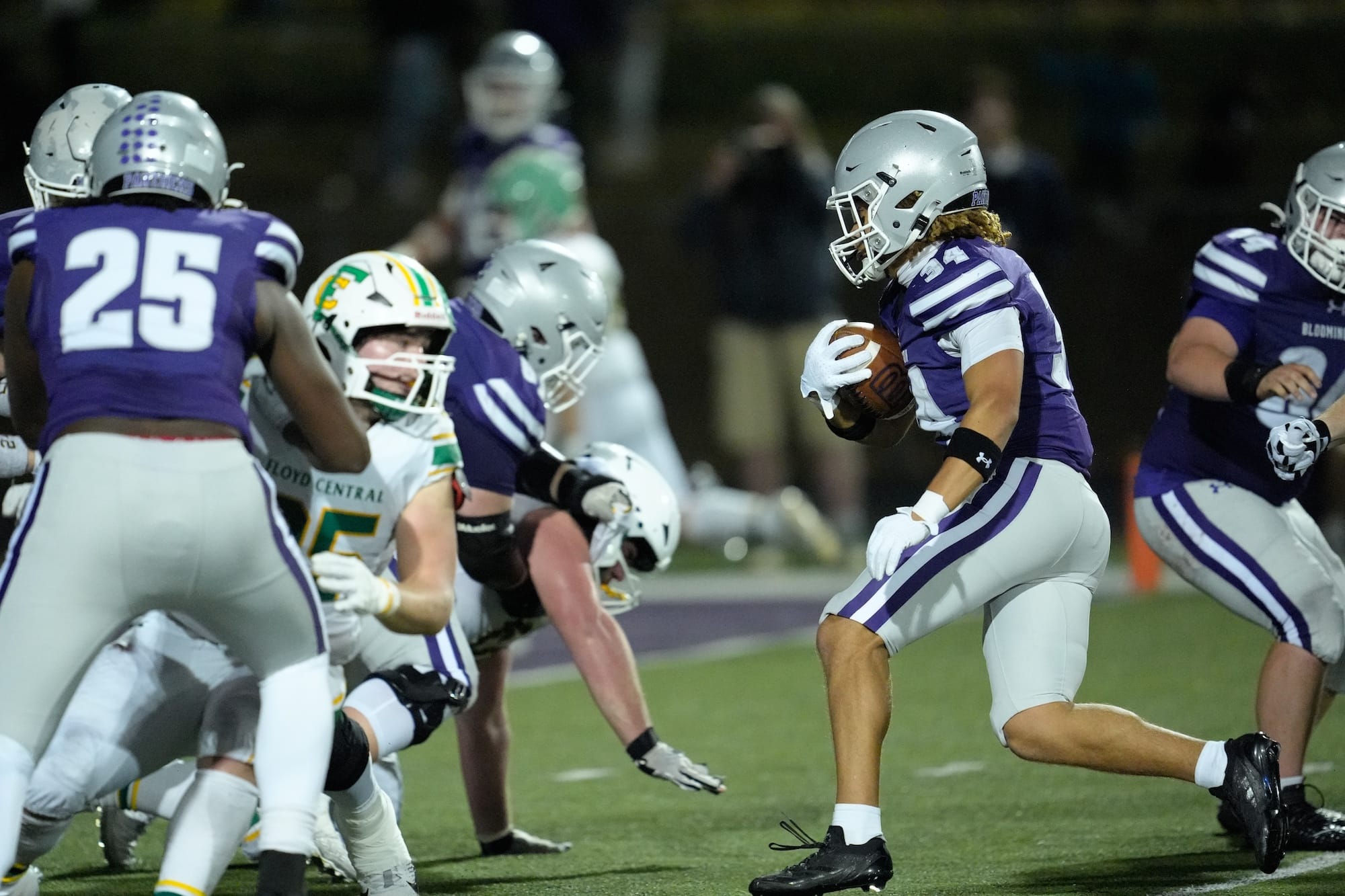 After back-to-back weeks of squeaking out wins in the playoffs, Bloomington High School South didn’t need the last two minutes of the game to defeat Floyd Central last Friday. The Panthers dominated the Highlanders 55-7 for their third consecutive regional championship. They continue their pursuit of a Class 5A state championship this Friday.