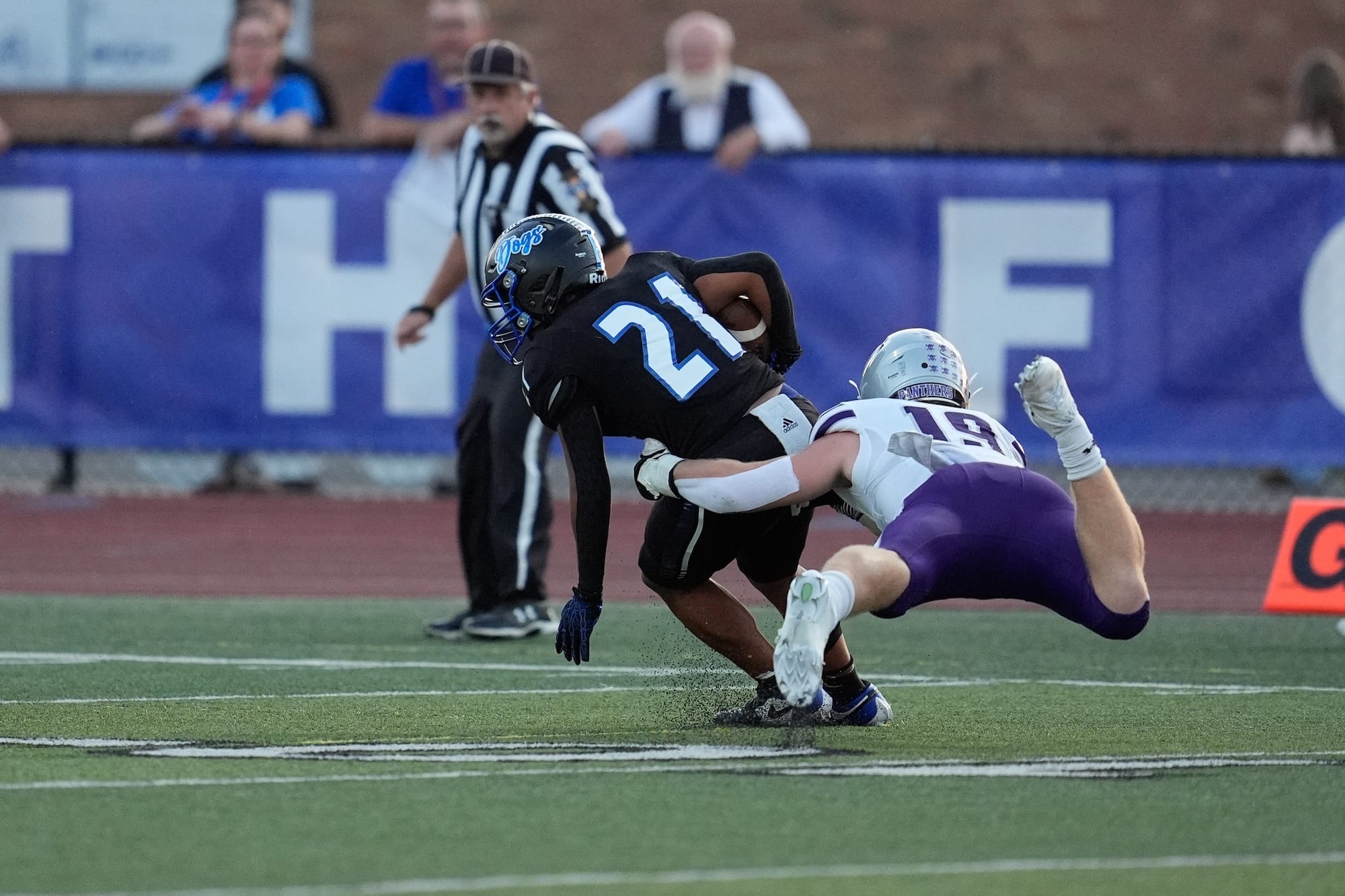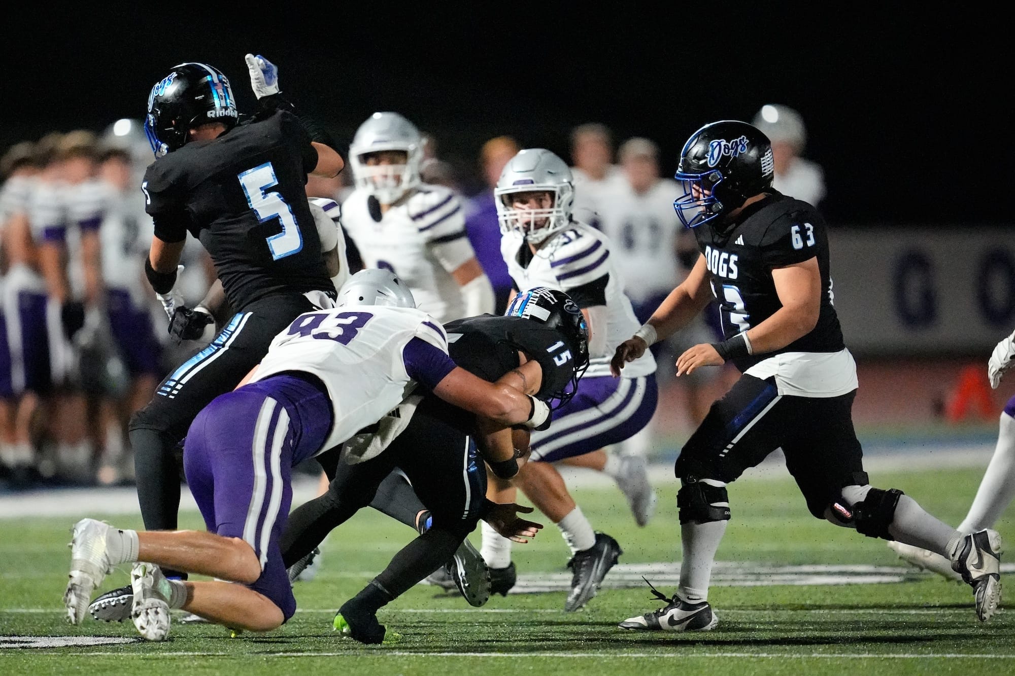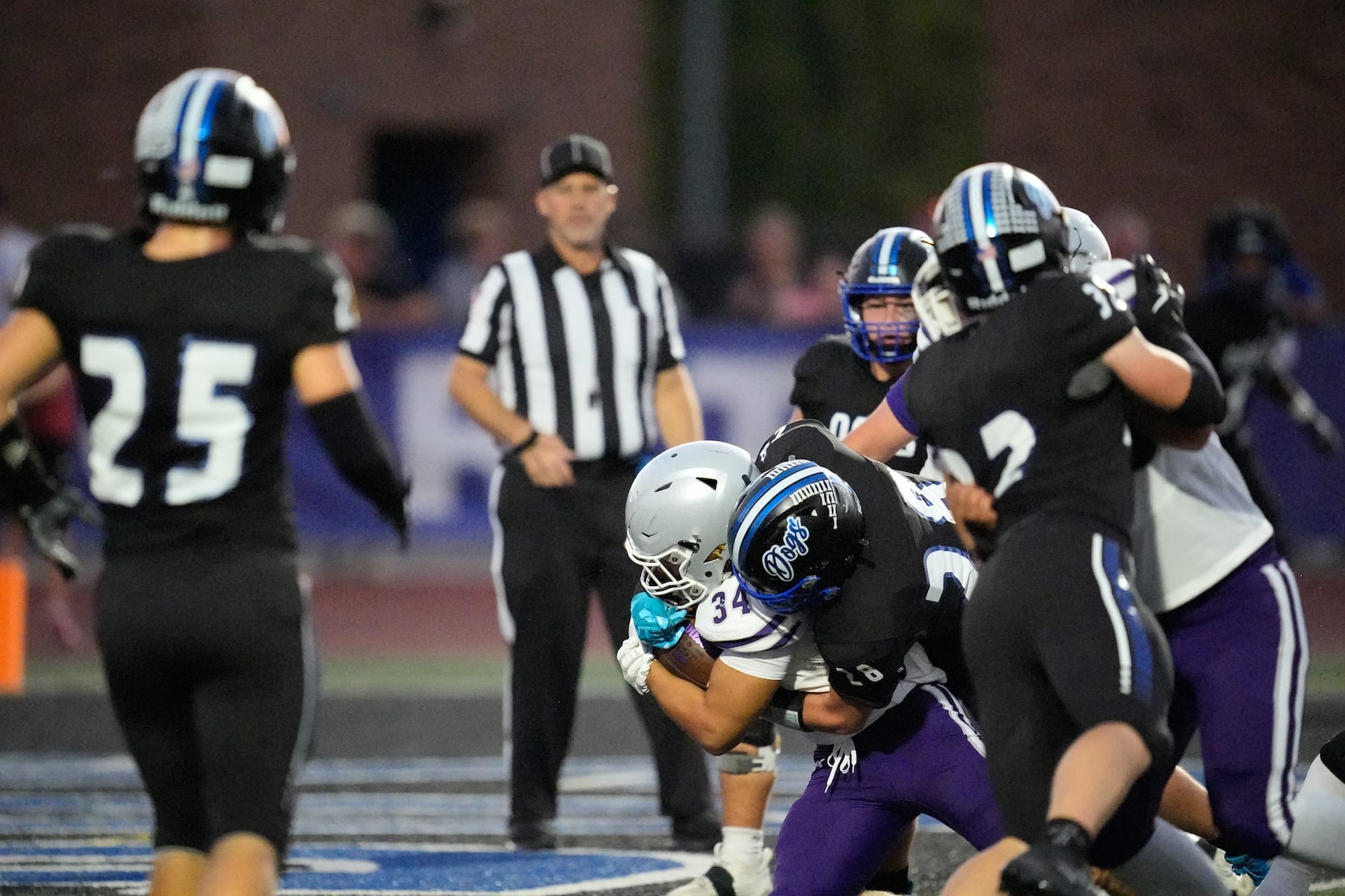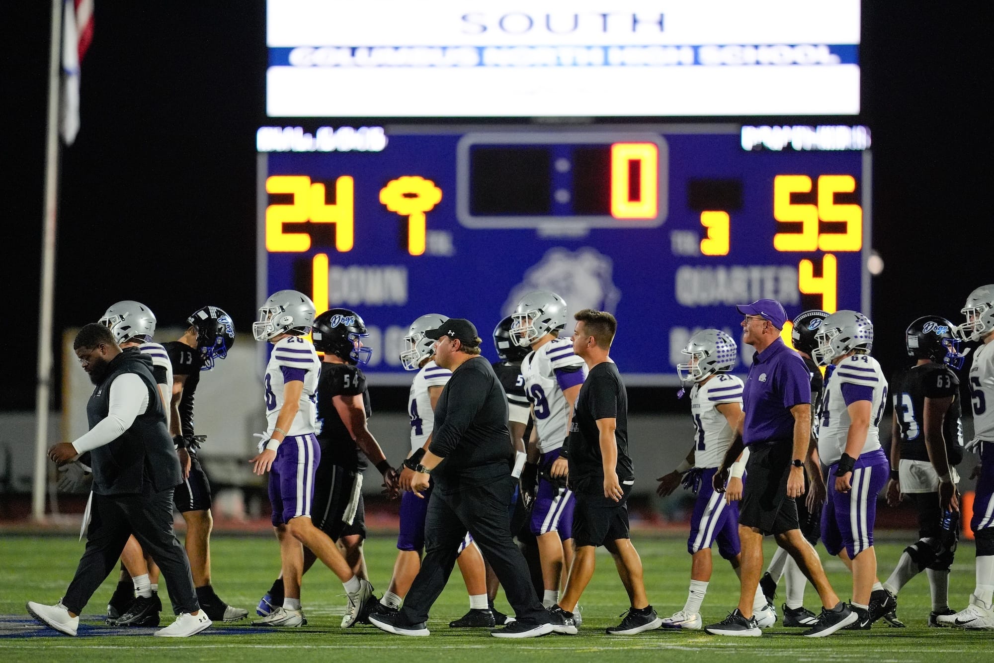 Bloomington High School North Panthers pounce onto the field led by Breyton Mellor (65) (Dave Quick, Oct. 3, 2025)The coin gets tossed before the Bulldogs and Panthers clash. (Dave Quick, Oct. 3, 2025)Ian Quick (19) stretches out to wrap up Bulldog Ezekiel Scruggs (21). (Dave Quick, Oct. 3, 2025)Braylen Townsend (6) spots a hole and heads for it. (Dave Quick, Oct. 3, 2025)Shaun Cooper (34) takes the handoff from Panthers quarterback Duncan Combs (2). (Dave Quick, Oct. 3, 2025)Shaun Cooper (34) heads for the endzone. (Dave Quick, Oct. 3, 2025)Macario Mendez (1) for the Bulldogs gets ready to try to stop Bloomington South receiver Jalen Williams (1) after the catch. (Dave Quick, Oct. 3, 2025)Panthers team up to stop Columbus North ball carrier Parker Elmore (5). (Dave Quick, Oct. 3, 2025)Bloomington South quarterback Duncan Combs (2) sends the ball sailing down the field. (Dave Quick, Oct. 3, 2025)Bloomington South quarterback Duncan Combs (2) gets off a pass. (Dave Quick, Oct. 3, 2025)Columbus North ball carrier Asher Ratliff (15) gets dragged down by Bloomington South’s Luke Arnett (93). (Dave Quick, Oct. 3, 2025)Bloomington South’s Luke Arnett (93) roars in celebration after the play. (Dave Quick, Oct. 3, 2025)A Bloomington South defender has the Columbus North Bulldog ball carrier by his hind leg. (Dave Quick, Oct. 3, 2025)