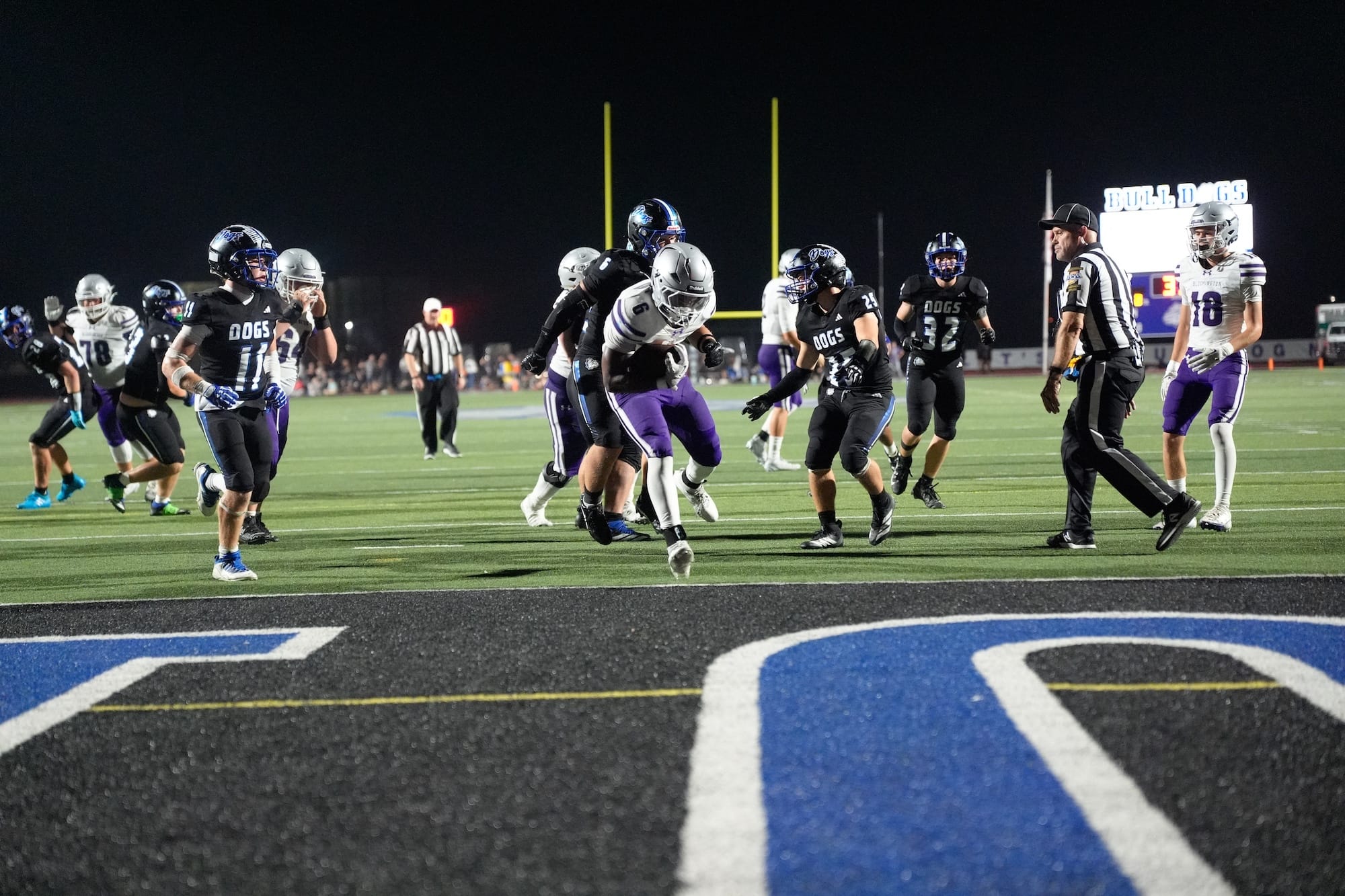 Braylen Townsend (6) sees the end zone and Bulldog defenders get there too late to keep him out. (Dave Quick, Oct. 3, 2025)
