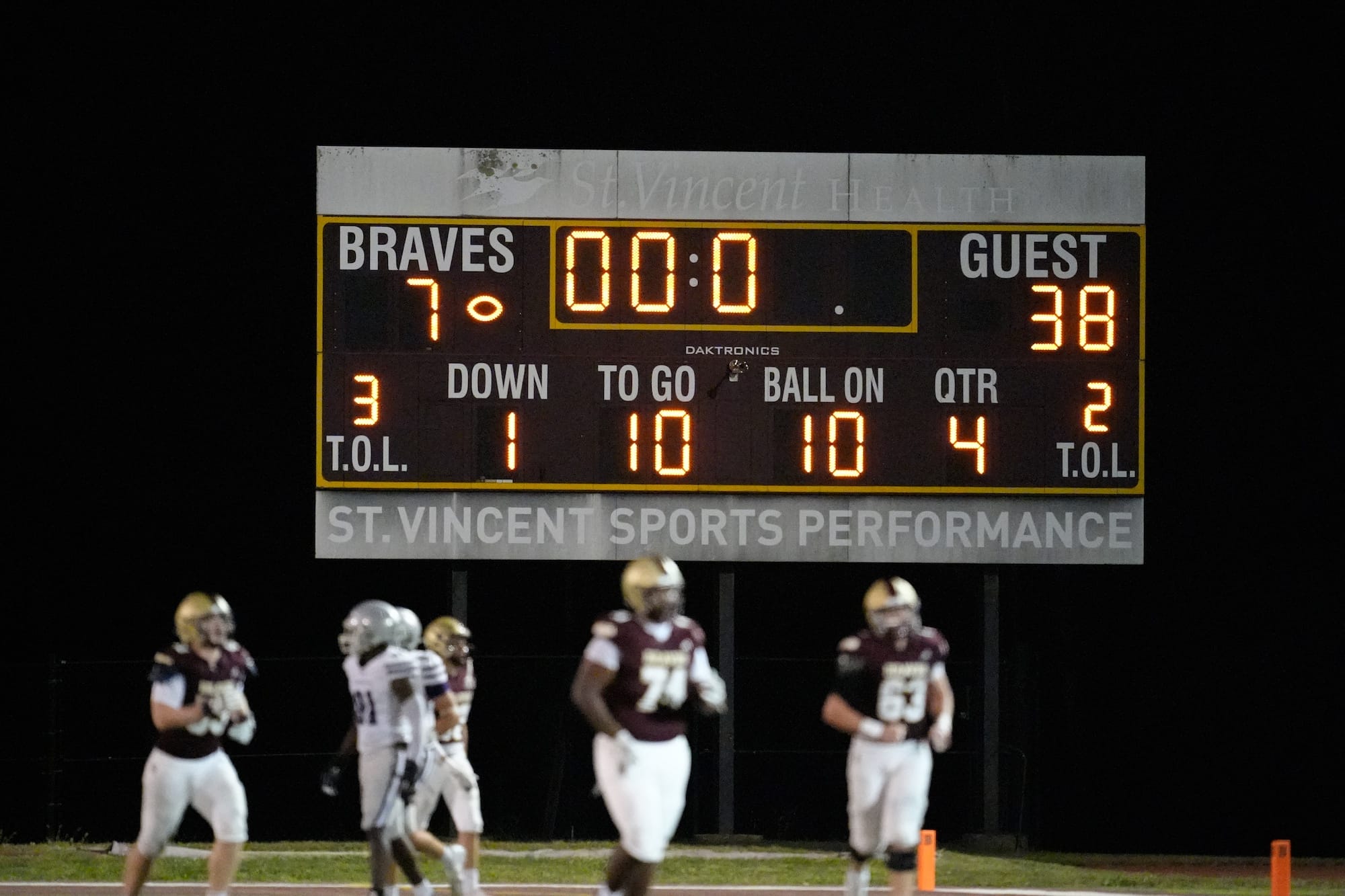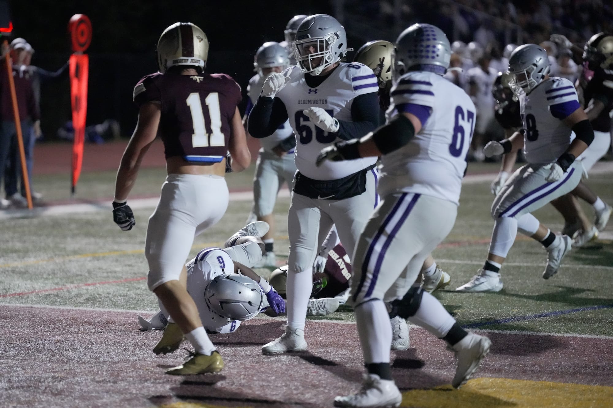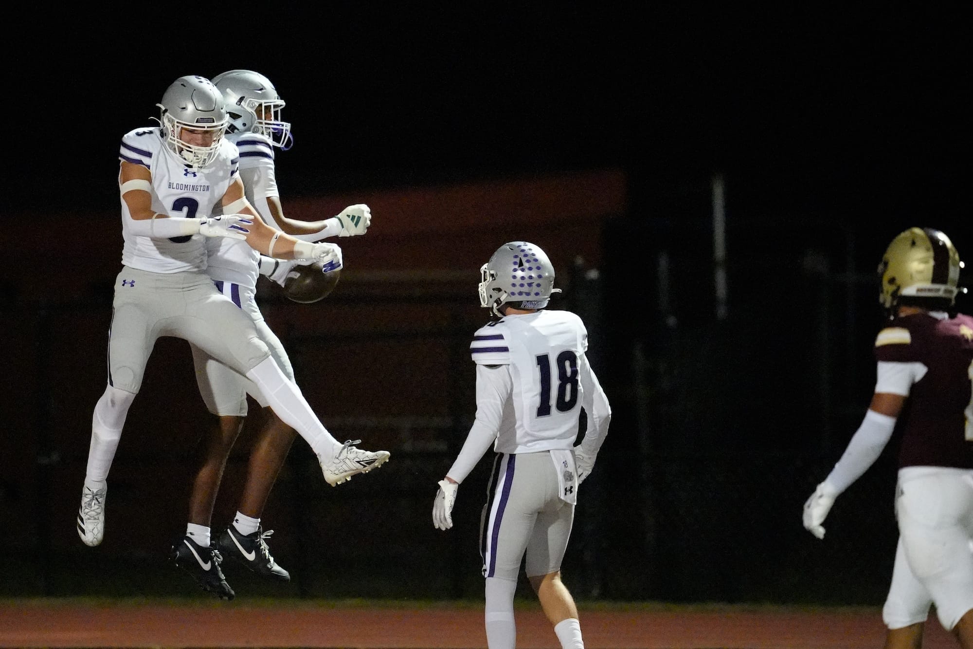 The Panthers line up before their game against the Braves. (Dave Quick, Oct. 10, 2025)The Panthers line up before their game against the Braves. (Dave Quick, Oct. 10, 2025)Braylen Townsend (6) is again in the endzone for the Bloomington South Panthers. (Dave Quick, Oct. 10, 2025)Jalen Williams (1) sizes up the blocking before heading downfield with the ball. (Dave Quick, Oct. 10, 2025)Jalen Williams (1) cruises over the goal line. (Dave Quick, Oct. 10, 2025) (Dave Quick, Oct. 10, 2025)Duncan Combs (2) has a choice of receivers on this play. (Dave Quick, Oct. 10, 2025)Jalen Williams (1) makes sure he gets the ball over the goal line. (Dave Quick, Oct. 10, 2025)A Brebeuf defender tries to keep Jalen Williams (1) out of the end zone. (Dave Quick, Oct. 10, 2025)Connor Parker (3) celebrates mid-air with Jalen Williams (1). (Dave Quick, Oct. 10, 2025)Blake Azcui (21) celebrates bringing down the Brebeuf ball carrier. (Dave Quick, Oct. 10, 2025)Liam Moore (4) wraps up the Brebeuf ball carrier. (Dave Quick, Oct. 10, 2025)Shaun Cooper (34) rumbles down the field. (Dave Quick, Oct. 10, 2025)Bloomington South quarterback Duncan Combs (2) lets the ball fly. (Dave Quick, Oct. 10, 2025)Charlie Morris (13) drags down Brebeuf’s Carter Cosgrove (15). (Dave Quick, Oct. 10, 2025)Jalen Williams (1) gets ready to cut one way or the other. (Dave Quick, Oct. 10, 2025)Bloomington South defenders Liam Moore (4) and Noah Knepper (38) defend the pass. (Dave Quick, Oct. 10, 2025)Daniel Iruoje (91) for Bloomington South has his man wrapped up. (Dave Quick, Oct. 10, 2025)Bloomington South defenders look to collect a loose ball. (Dave Quick, Oct. 10, 2025)Bloomington South’s Jonathan Winstead (18) outruns a Brebeuf defender. (Dave Quick, Oct. 10, 2025)Bloomington South quarterback Duncan Combs (2) sails the ball down the field. (Dave Quick, Oct. 10, 2025)The final score on the scoreboard reads: Bloomington South 38, Brebeuf 7. (Dave Quick, Oct. 10, 2025)