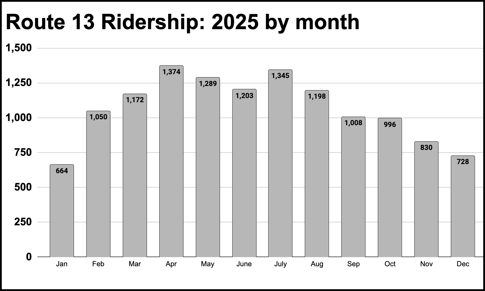 The frequency of Route 13 is just once an hour. Connell emphasized that higher-frequency routes tend to be the most successful: “Throughout my career, the most popular routes all had one thing in common … they had the highest frequency of service."
