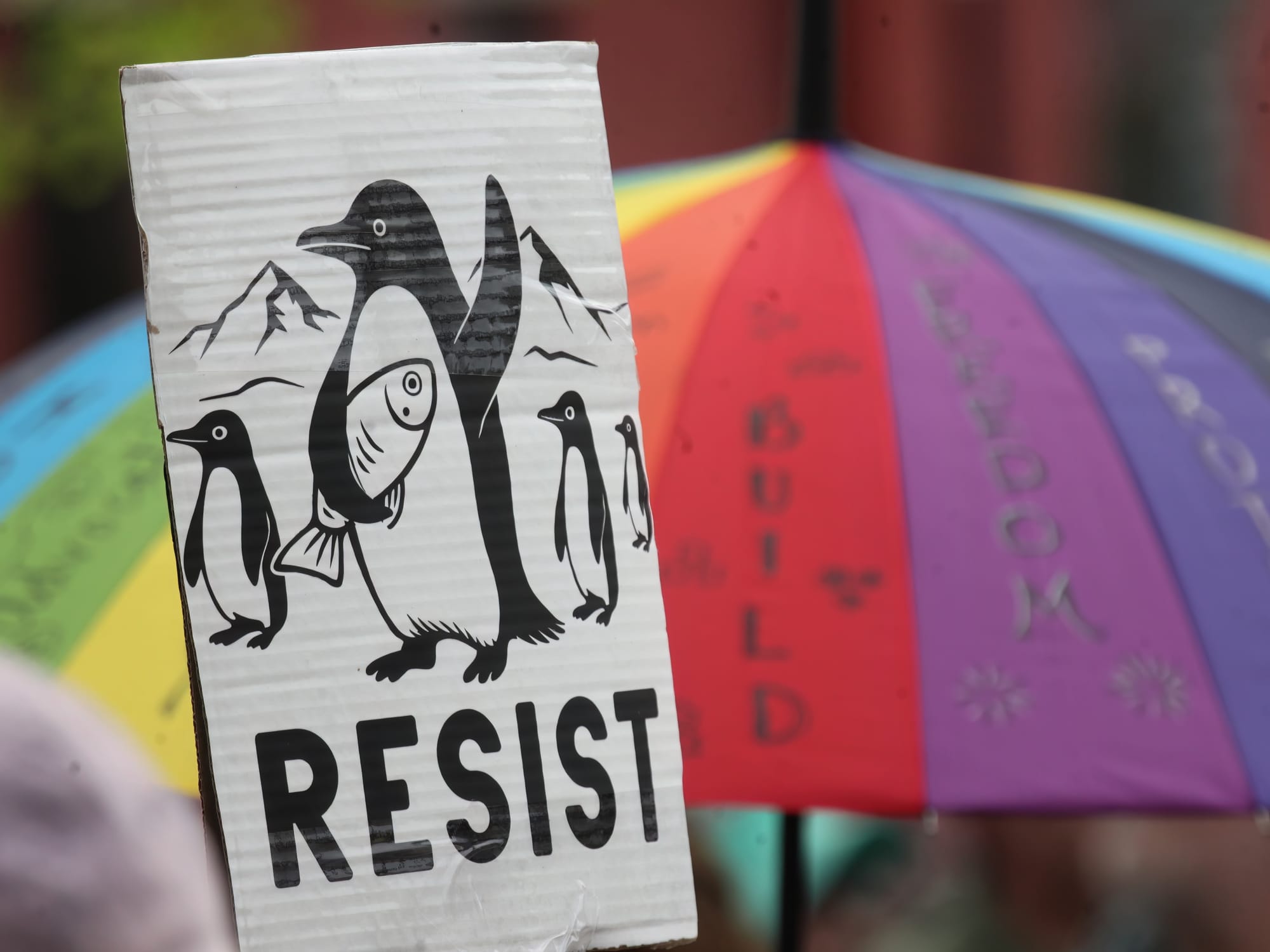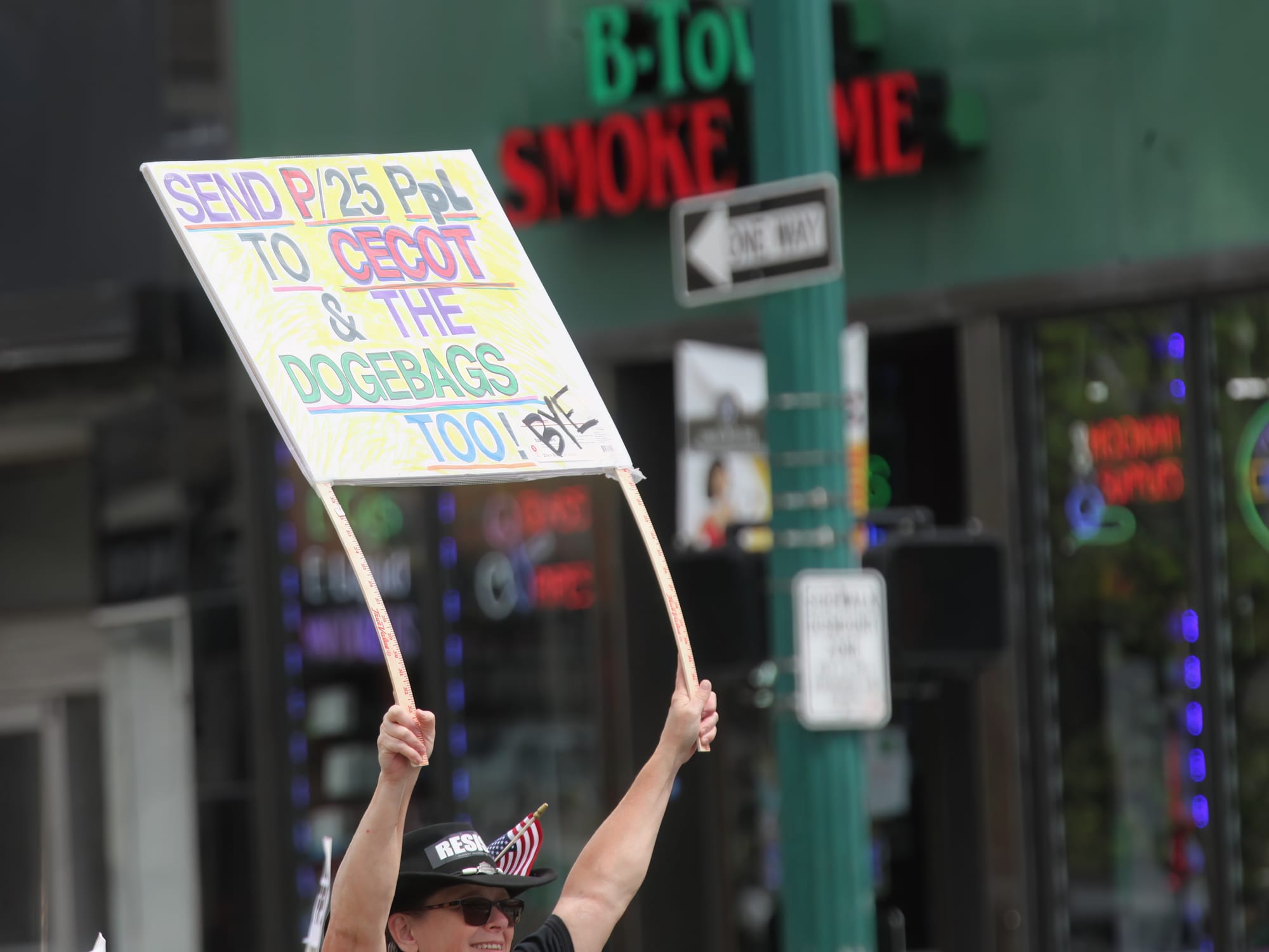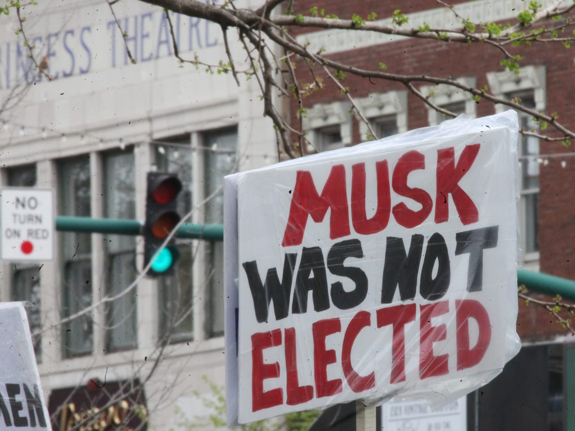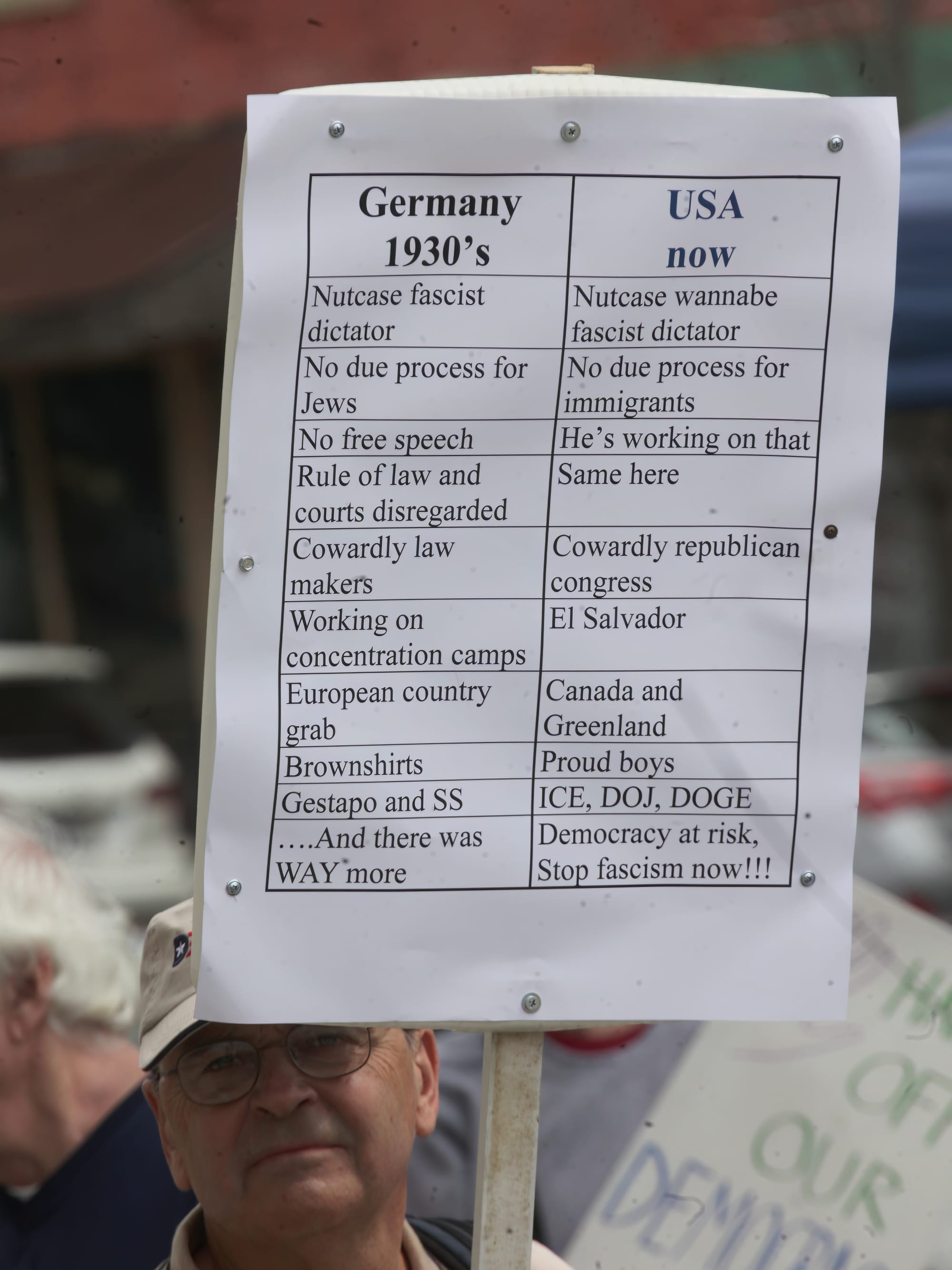 The numerals in the name of the event organizers stand for the slogan "50 protests. 50 states. 1 movement." Saturday was designated as a national day of protest against many of the actions that have been taken by U.S. President Donald Trump's administration after he was sworn into office to start his second term in January. The 50501 organization says that Trump, Elon Musk, and their supporters are consolidating power among billionaires, and creating an economy that is "rigged against the People."
