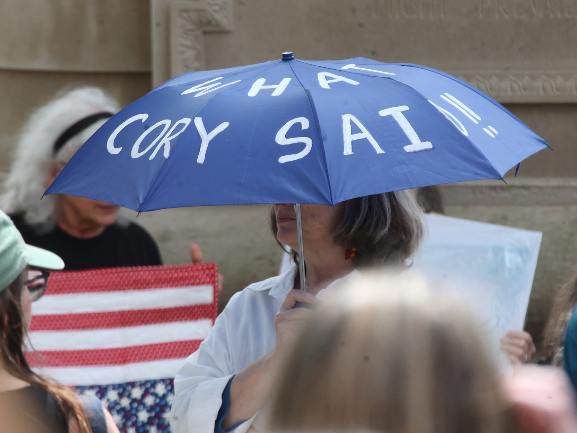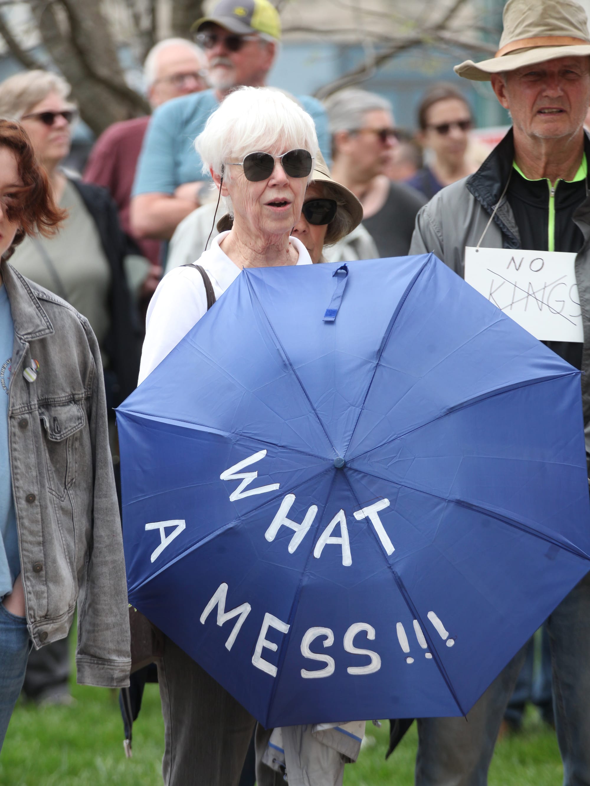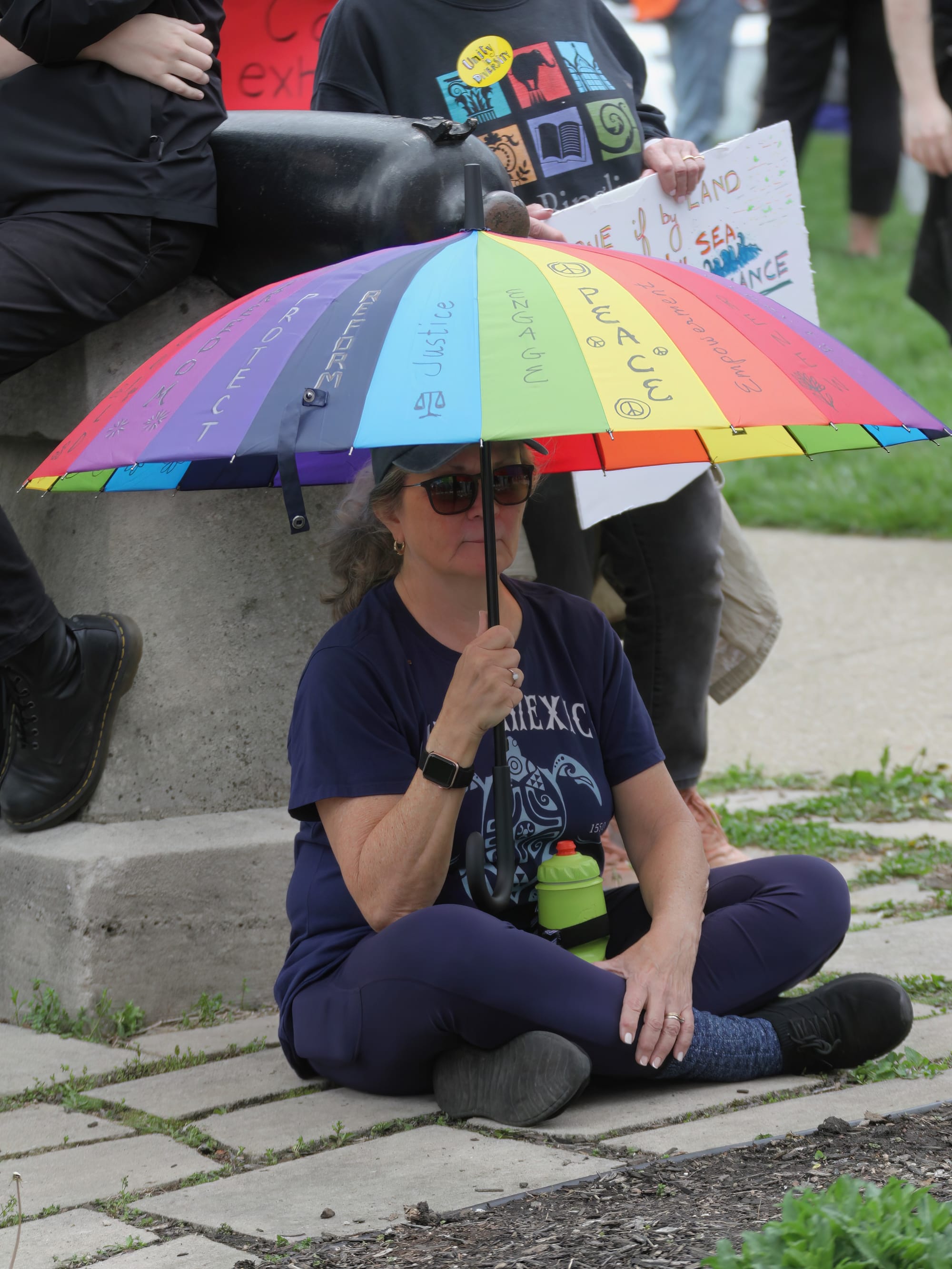 The rains from the morning did not persist into the afternoon, and did not pick up again until after the event concluded around 2 p.m. At times during Saturday's demonstration, the sun broke through.