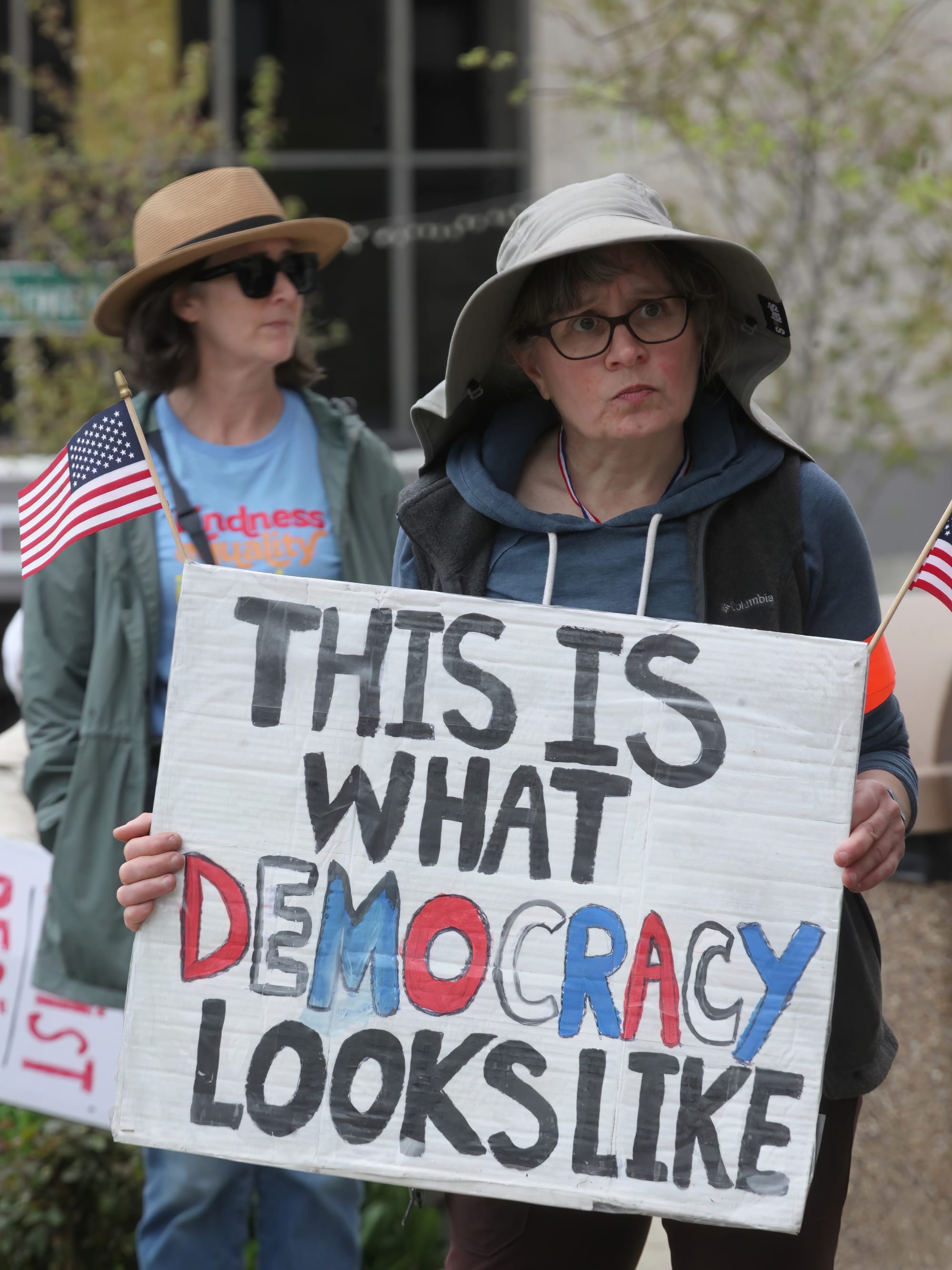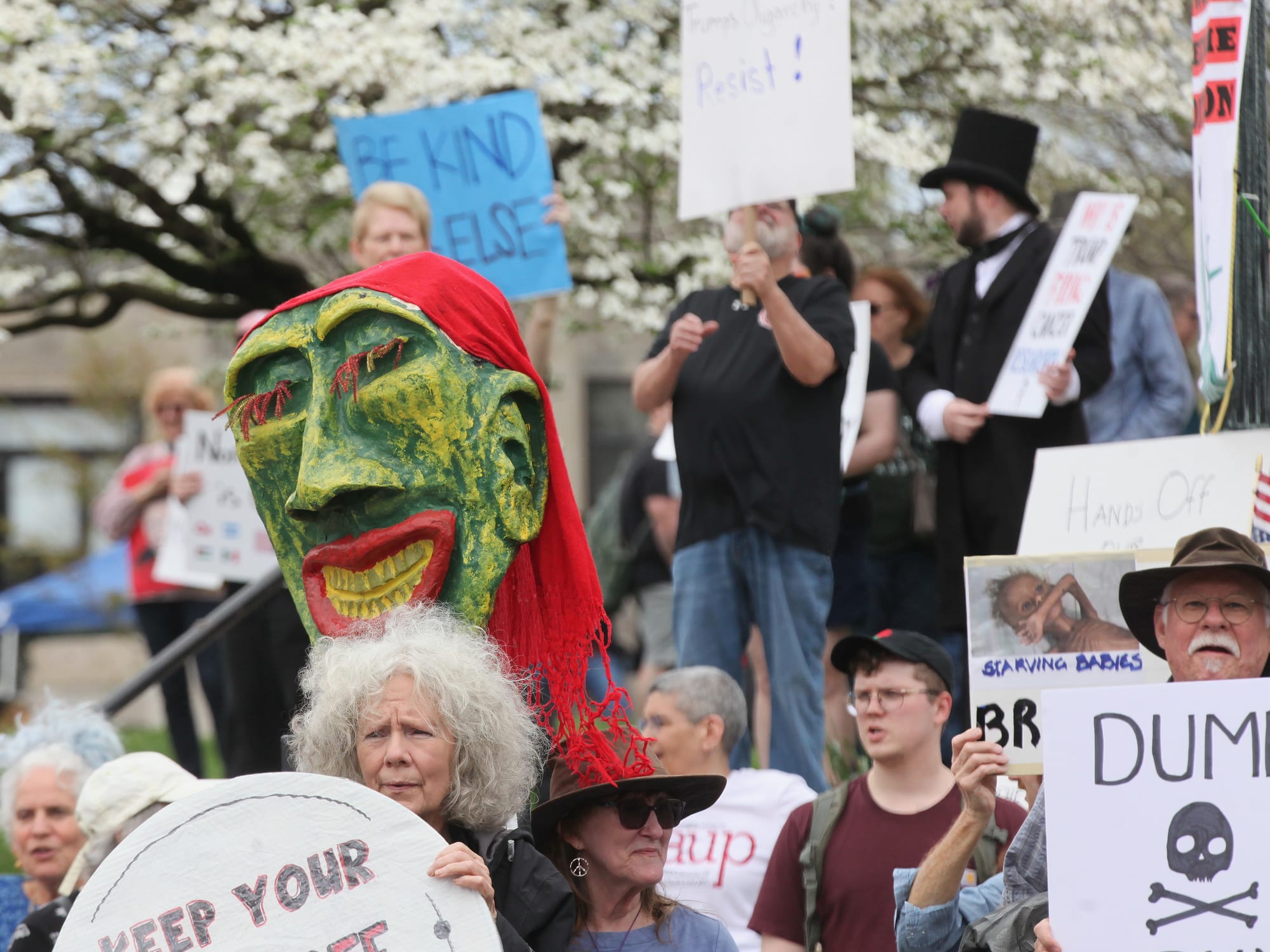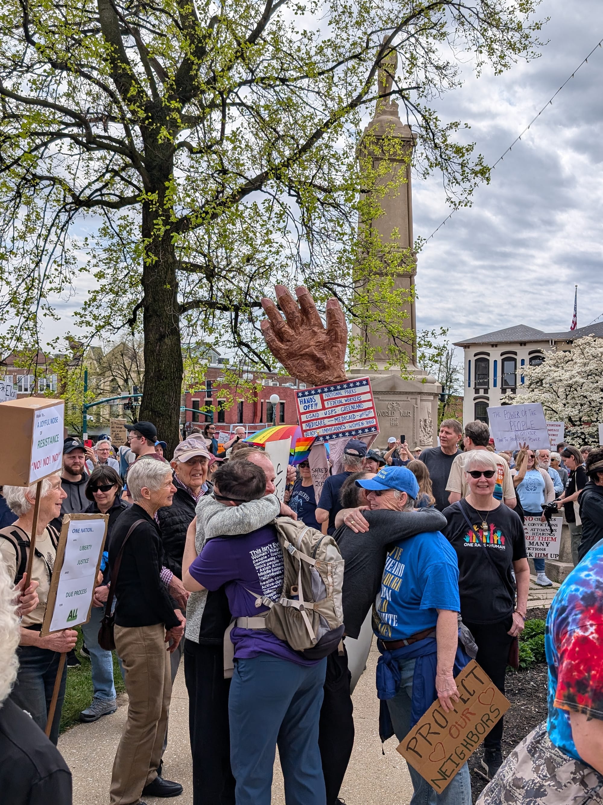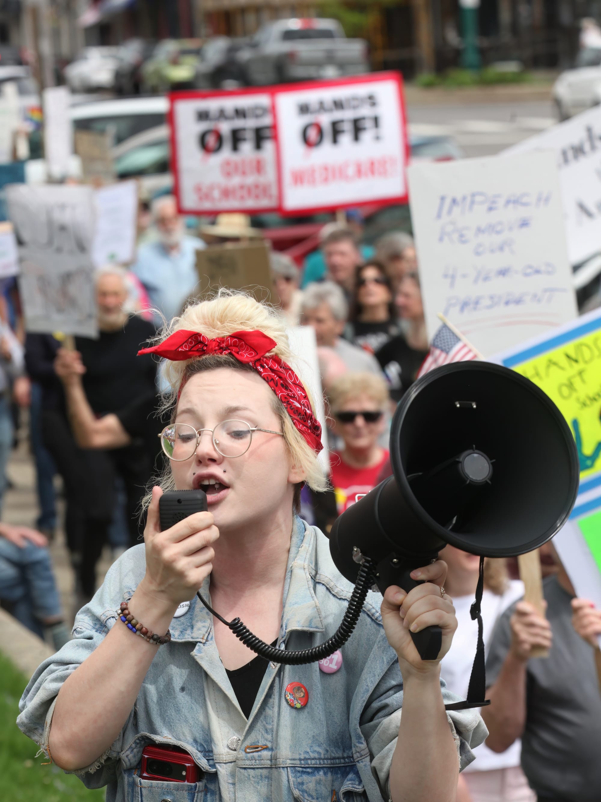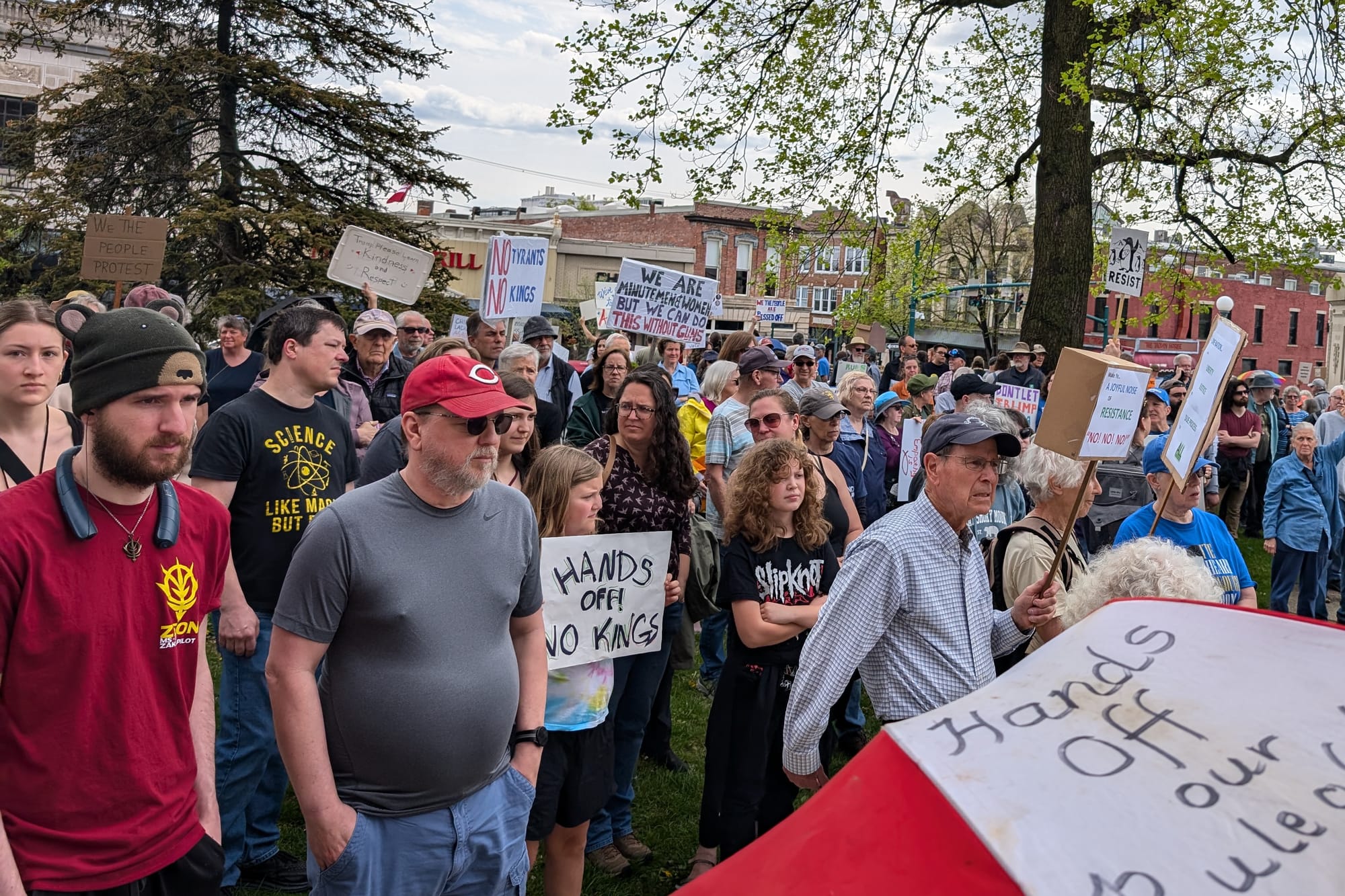 Bloomington's edition of the 50501 Movement's national day of protests kicked off at noon on Saturday (April 19) at the city's traditional venue for such demonstrations, the southeast corner of the historic Monroe County courthouse.