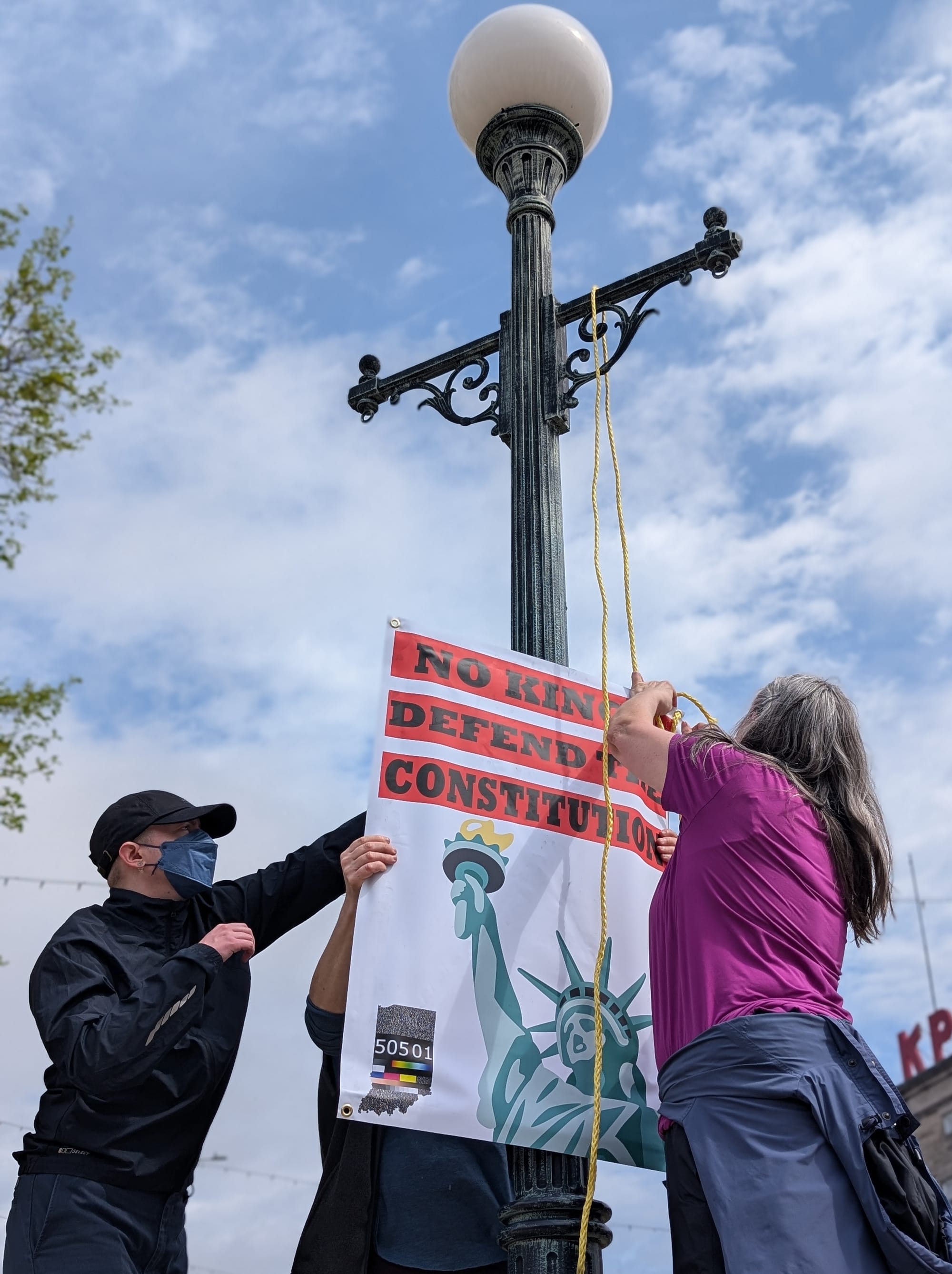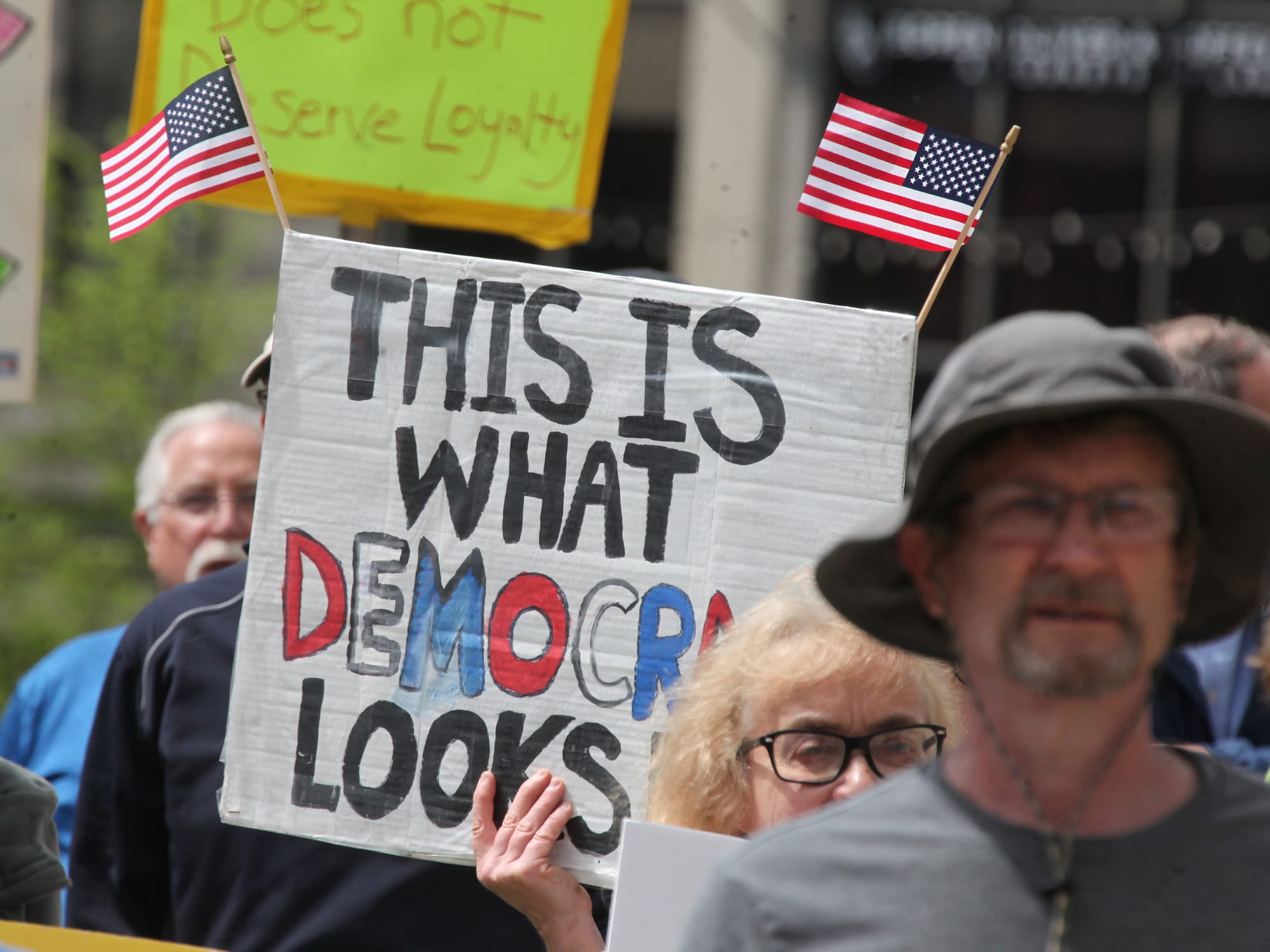 The 50501 Movement is critical of Trump's apparent rejection of unfavorable court rulings, and describes Trump as dismantling the "foundations of our country" including attacks on: due process in connection with deporting immigrants; reproductive health care; free elections; and worker rights.
