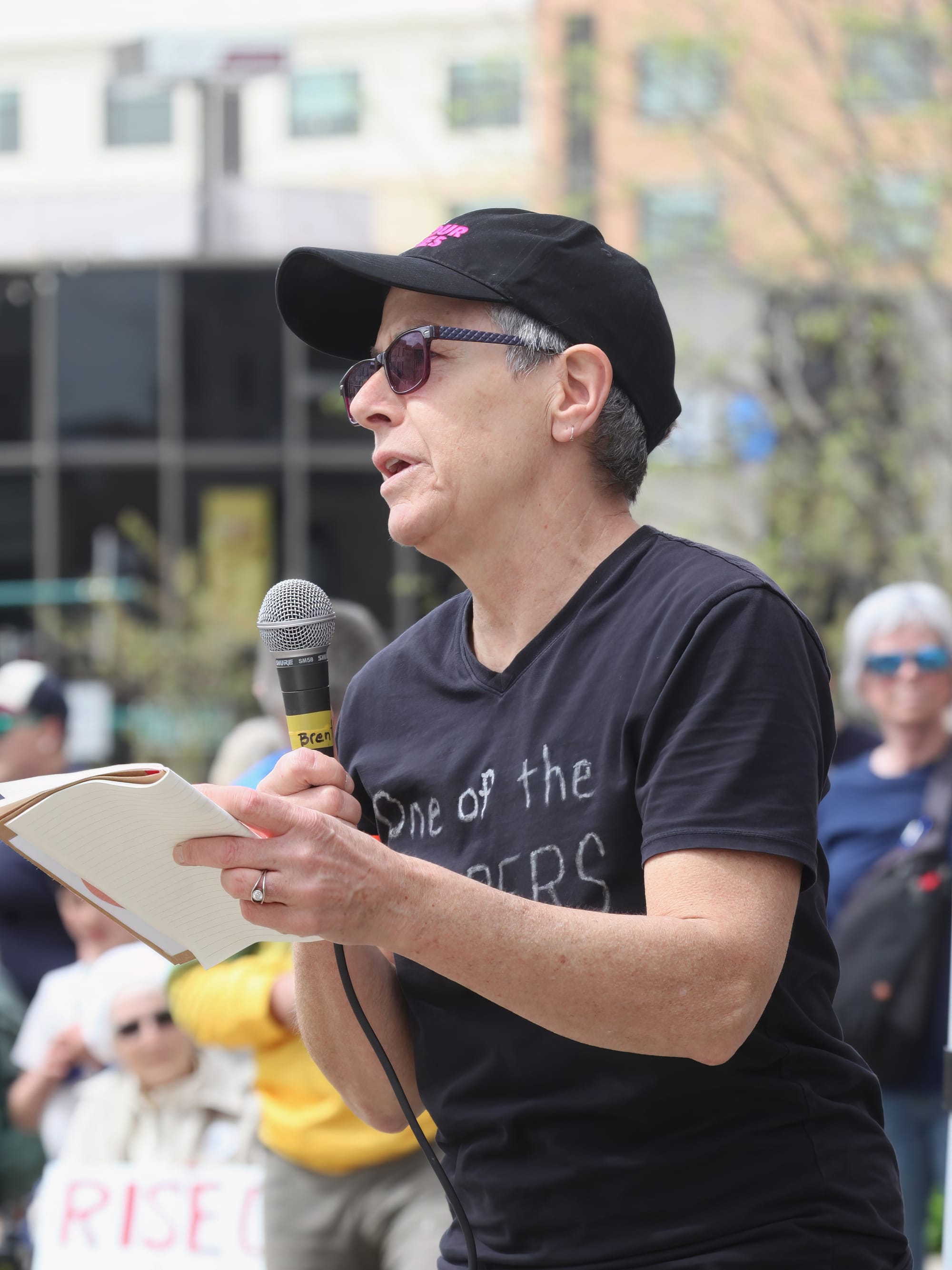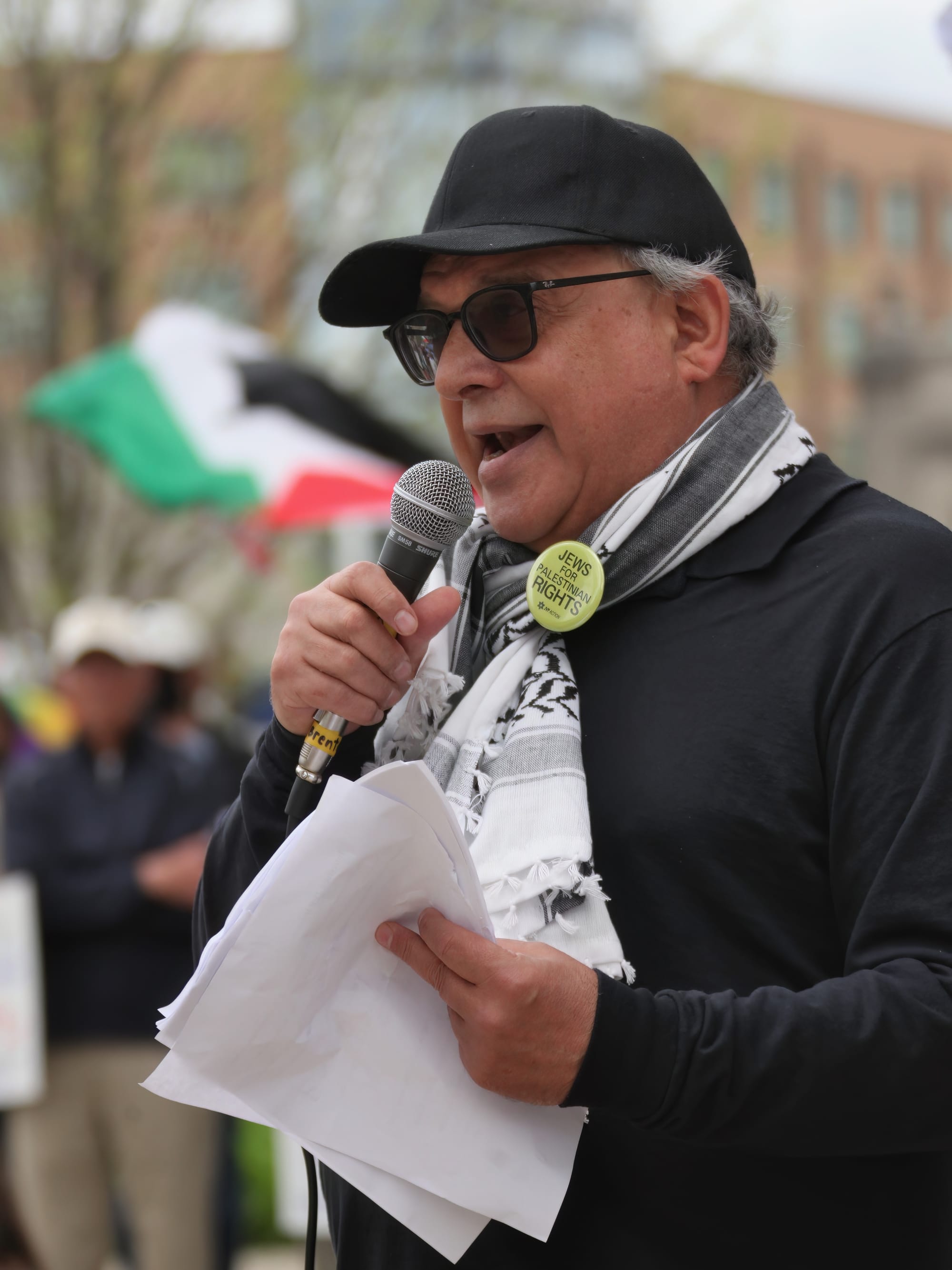 Speaking towards the end of the rally was Daniel Segal, a coordinating member of Jewish Voice for Peace, who stated that anti-Zionism is not antisemitism. He asked for a moment of silence by saying, "I want to pause briefly and ask all of us for a moment of silent reflection for the victims of genocide In Gaza, whose numbers we cannot count, there are over 50,000 dead bodies."