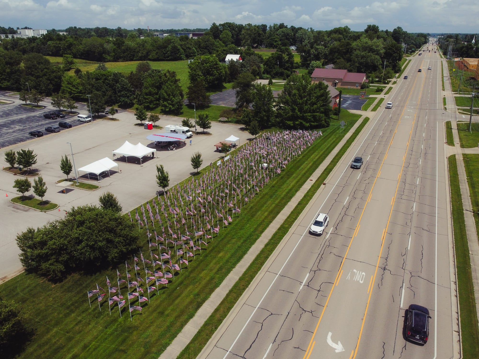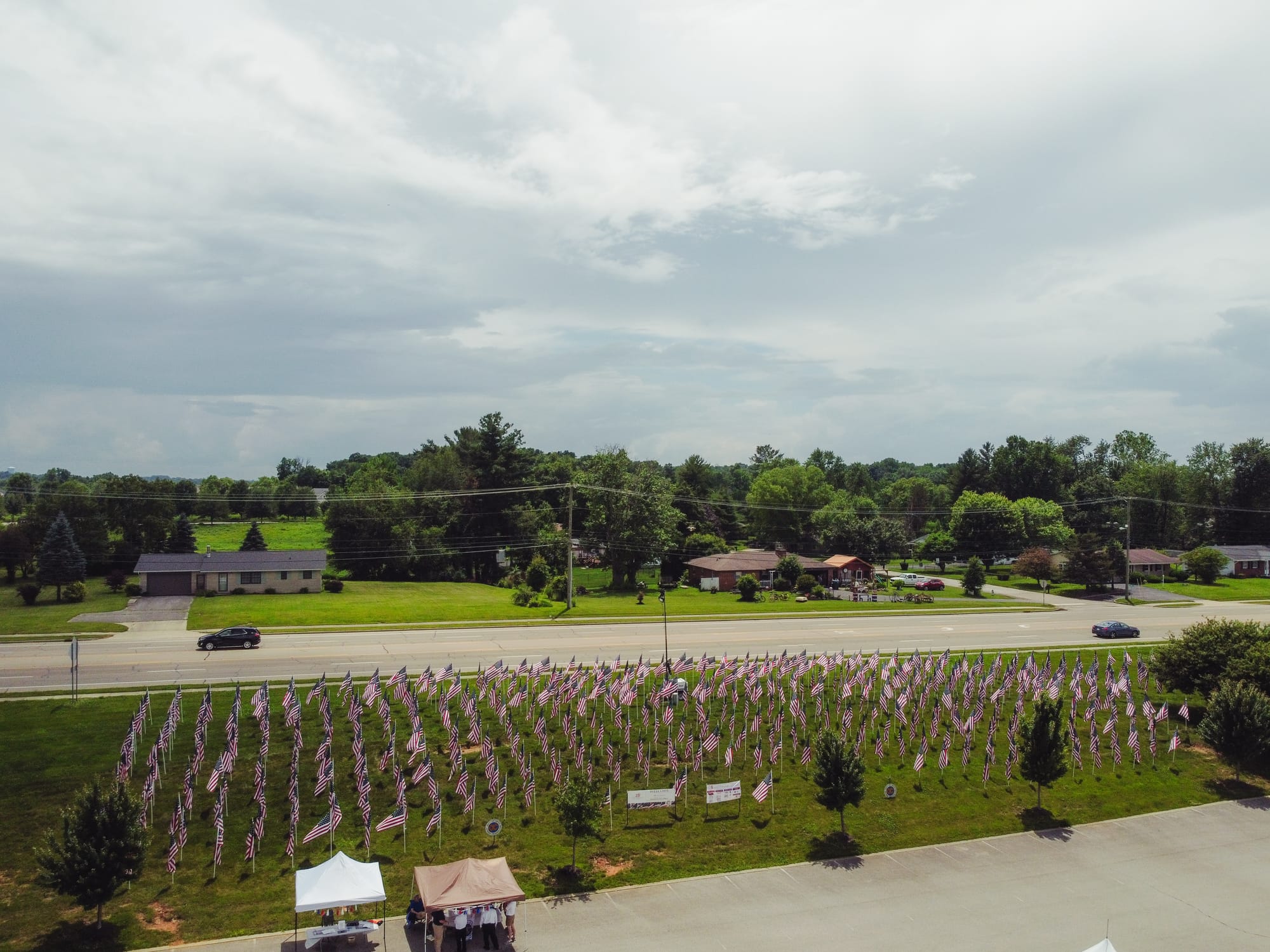 The display intends to "bring the community together in a patriotic tribute to honor our heroes," the website reads. Each flag is purchased to honor an individual. The event served as a fundraiser, benefiting the Southern Indiana Exchange Club Foundation, which is working to house homeless veterans and their families. The display was showcased on Flag Day (June 14), with an opening ceremony.