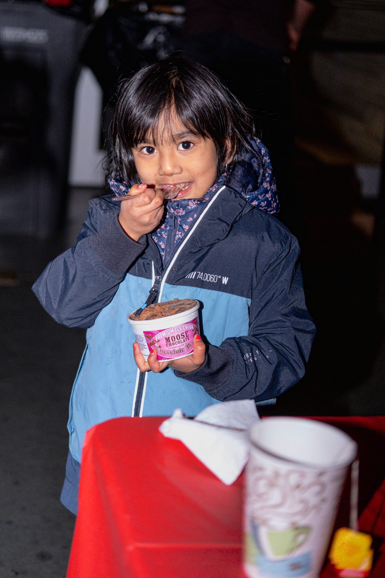 Inside the Switchyard Park pavilion, the chili cook-off offered welcome warmth. The spicy entries reflected Bloomington’s international flair, including Korean chili, while beer, wine, and hot beverages were available throughout the festival. Kids enjoyed Chocolate Moose ice cream despite the cold.
