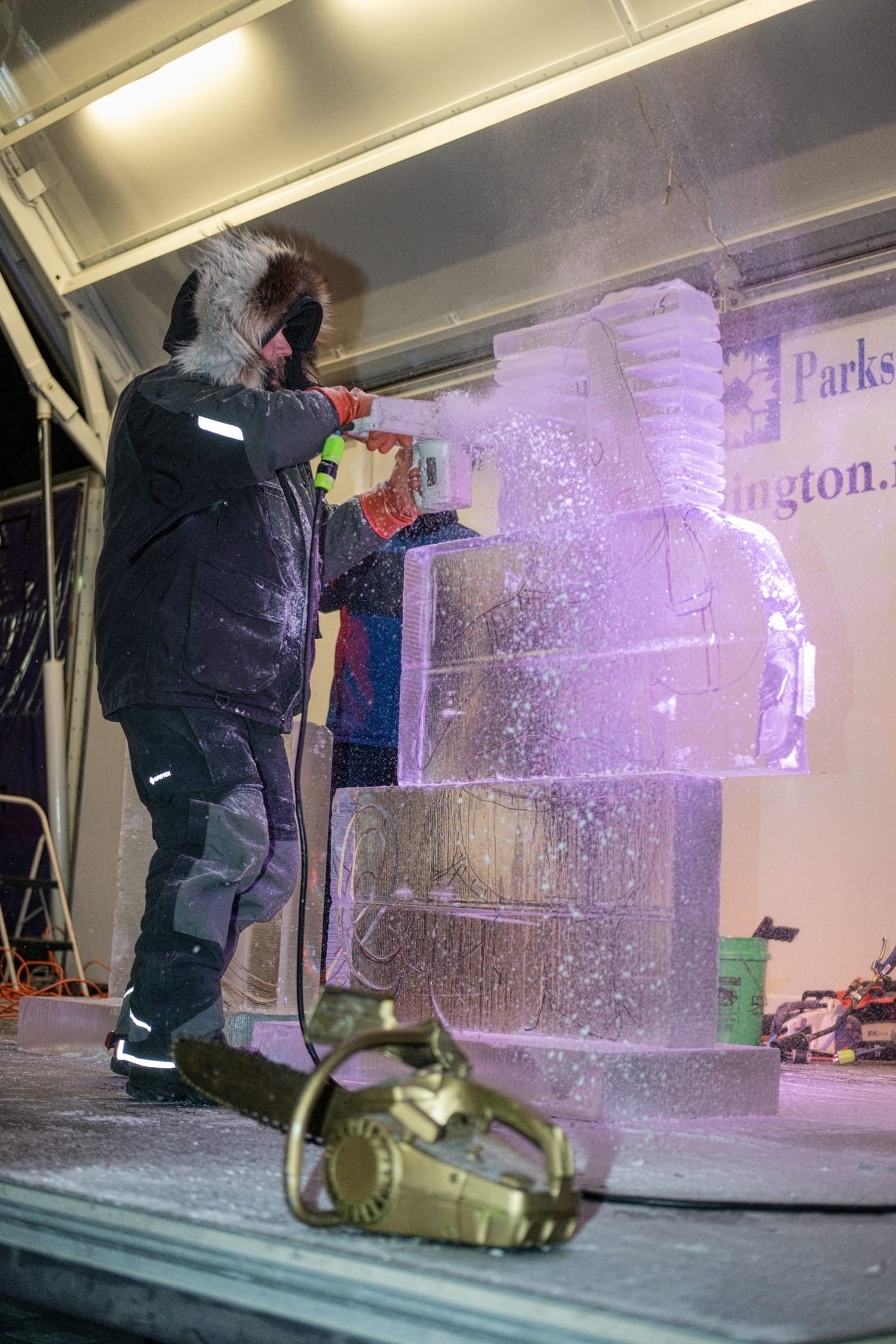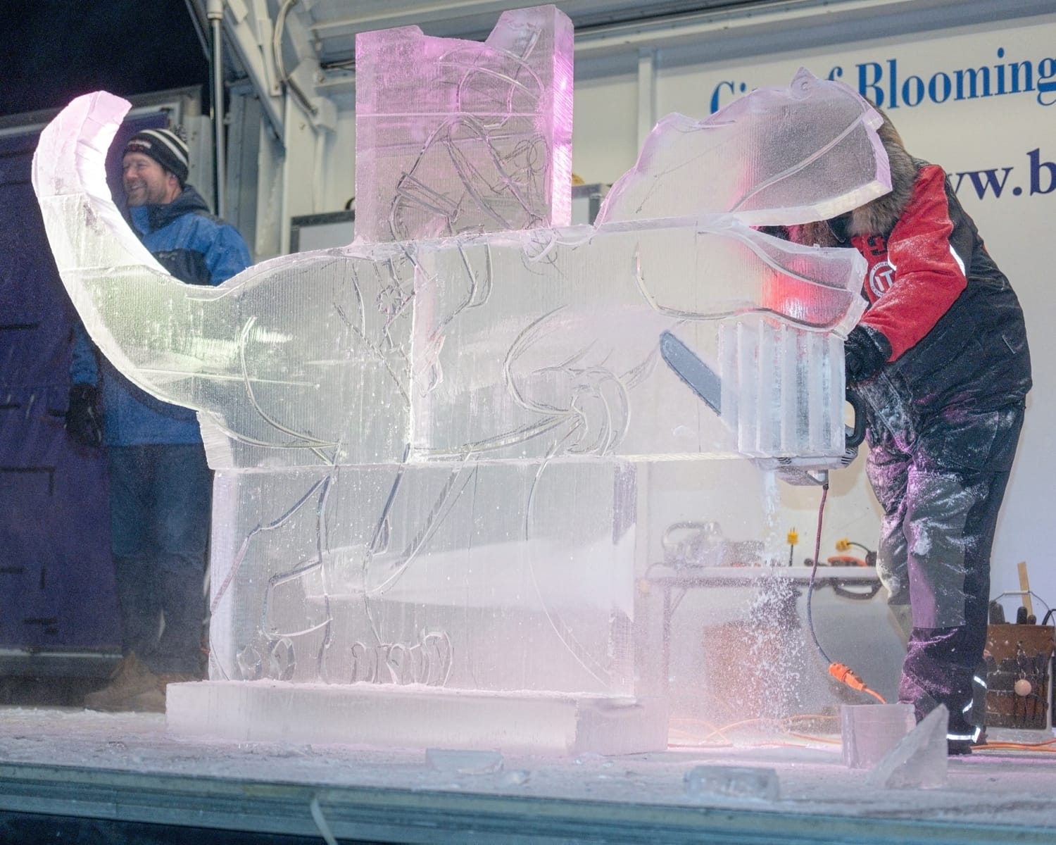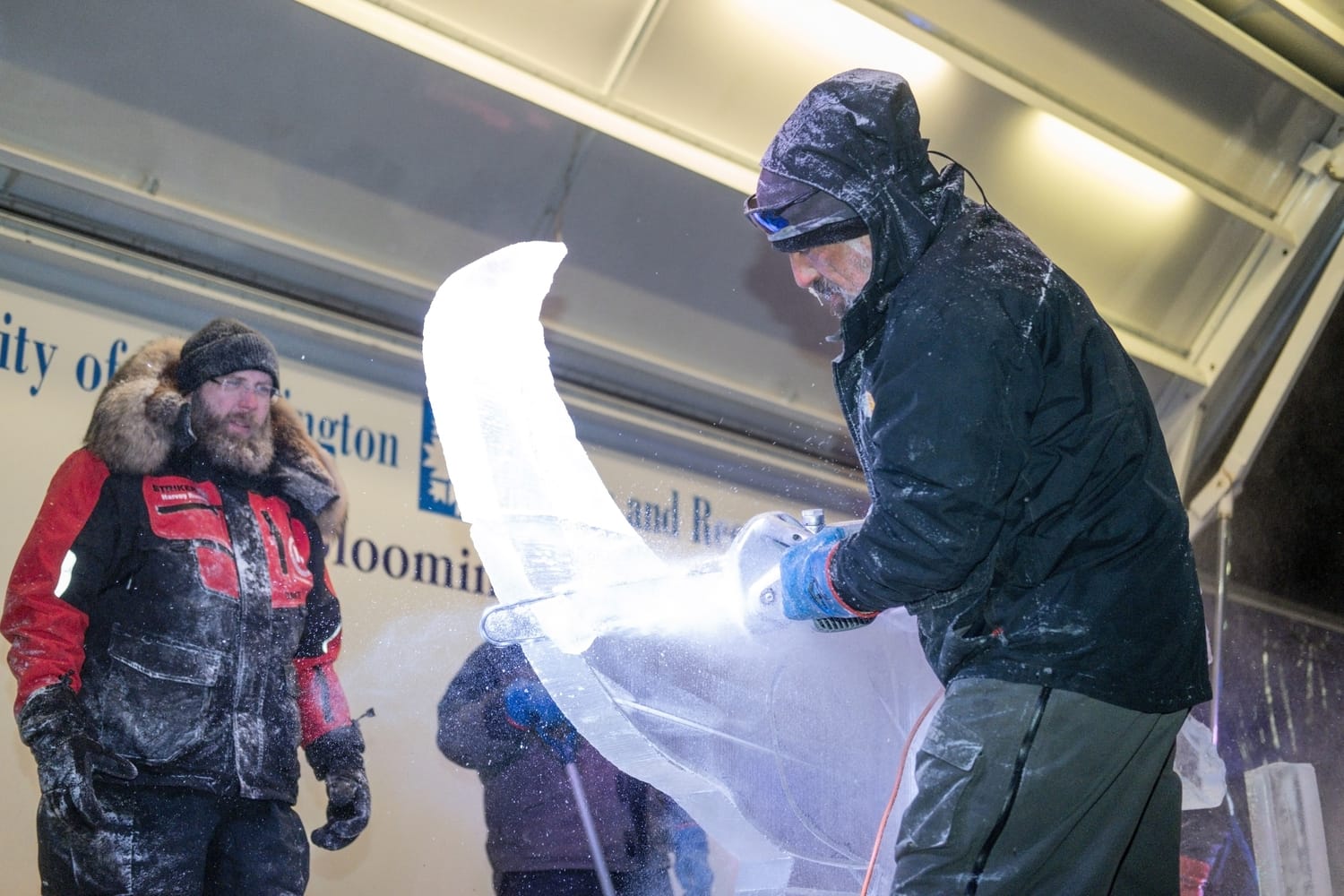With temperatures hovering around 8F° and wind chills dipping to –2F°, this year’s Freezefest lived up to its name. Despite the extreme cold, crowds bundled up and gathered in Switchyard Park to watch ice carvers work outdoors, some ending up with icicles in their mustaches as they shaped massive blocks of ice.