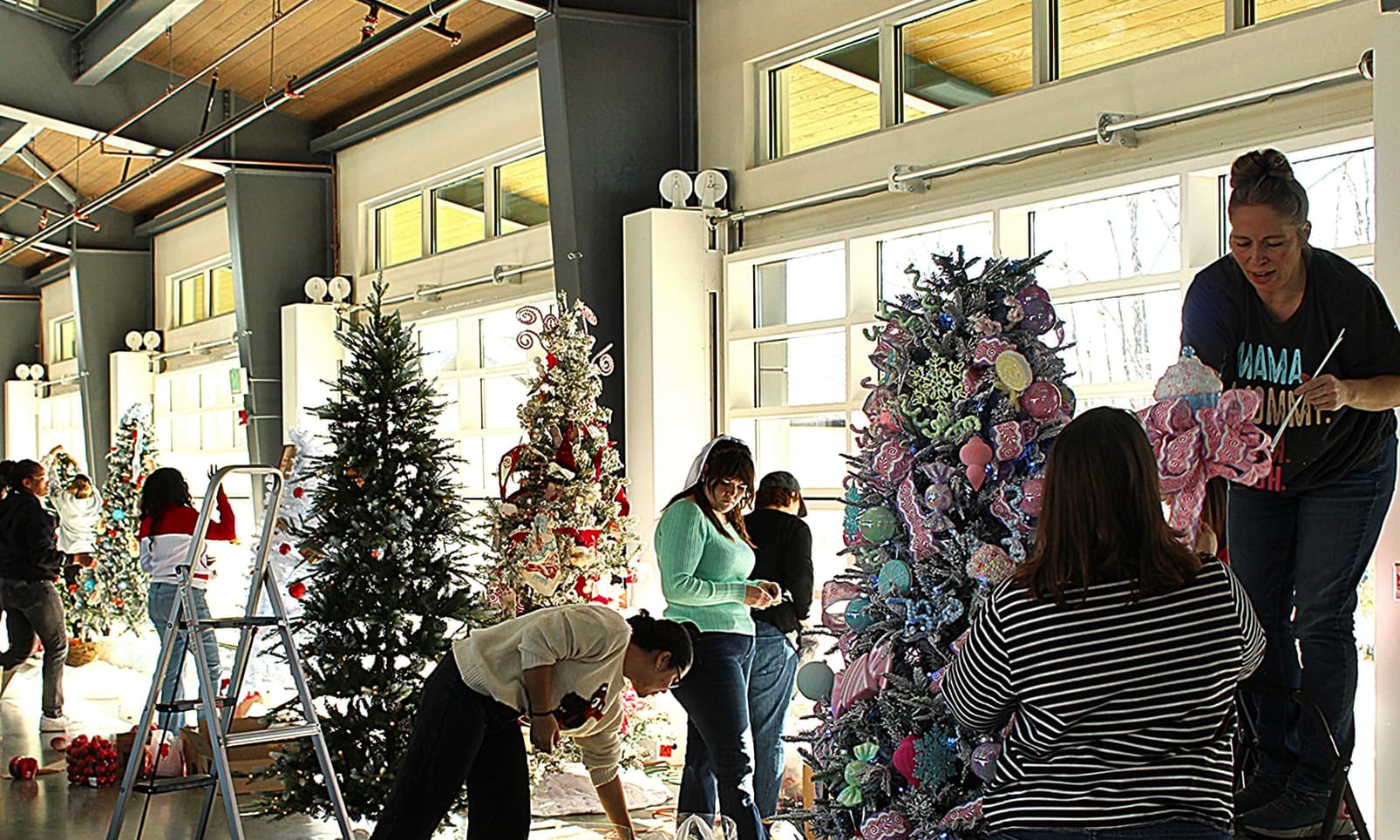 Holiday tree viewing for the “Hope for the Holidays” fundraiser opens Monday at Switchyard Park pavilion. The three-day event features music, children’s performances, Santa visits, and a food truck, leading up to Wednesday’s live auction benefiting New Hope for Families.