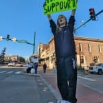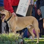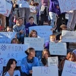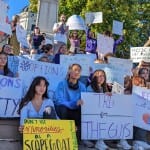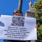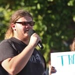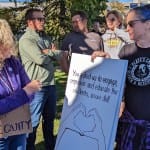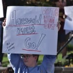 Some of the signs at Monday’s rally called for Hauswald’s ouster.